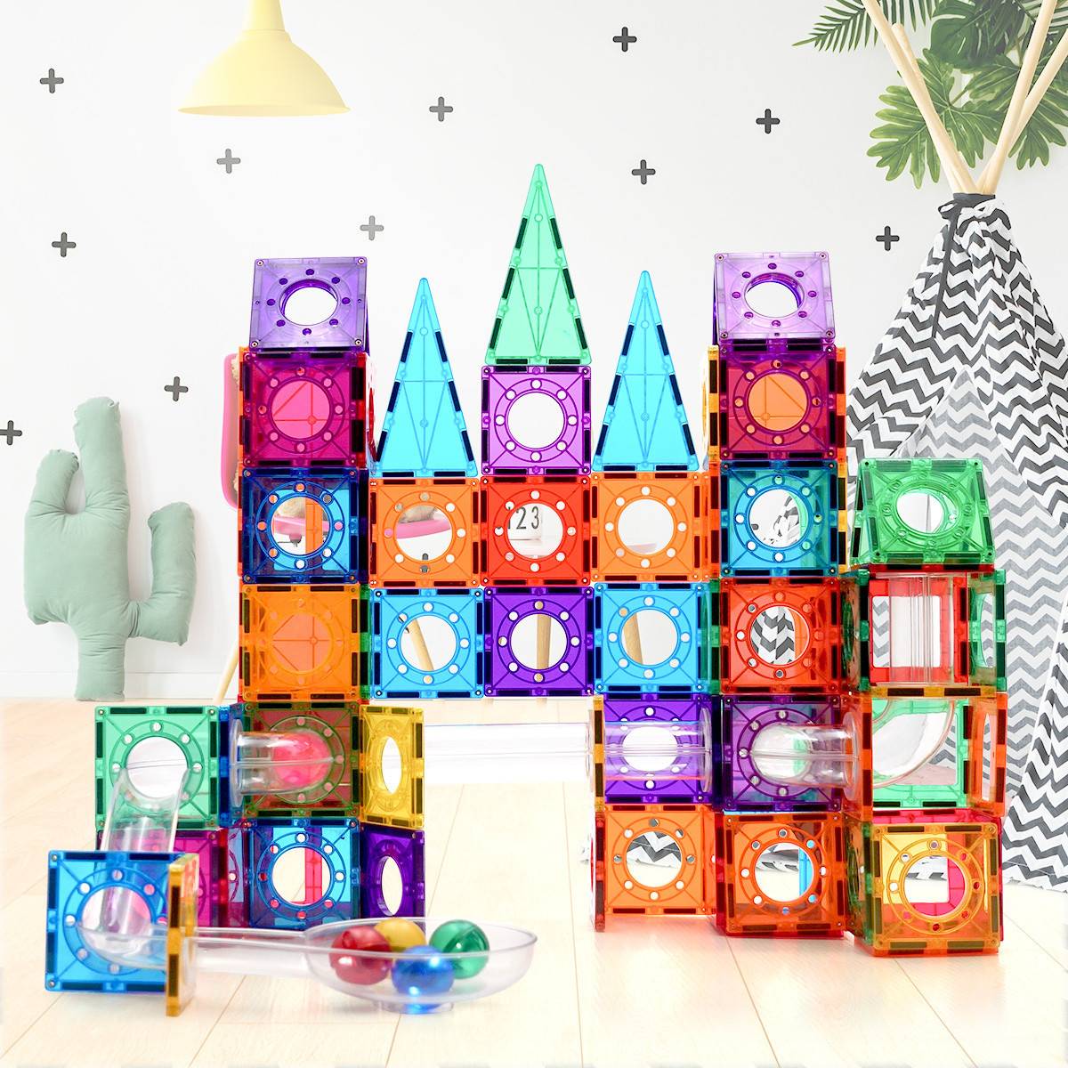 相比市售其他品牌,Science Baby 的磁力更強,能支撐更高、更大的造型。孩子搭到三層樓的城堡也不垮,超有成就感!