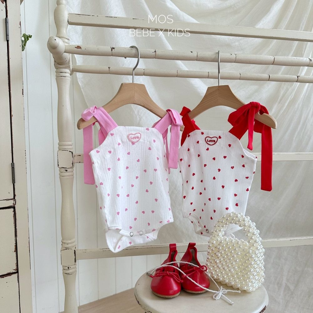 現貨 Bebe-綁帶蝴蝶結愛心包屁衣 姊妹裝,蘿菈衣櫥|韓國童裝