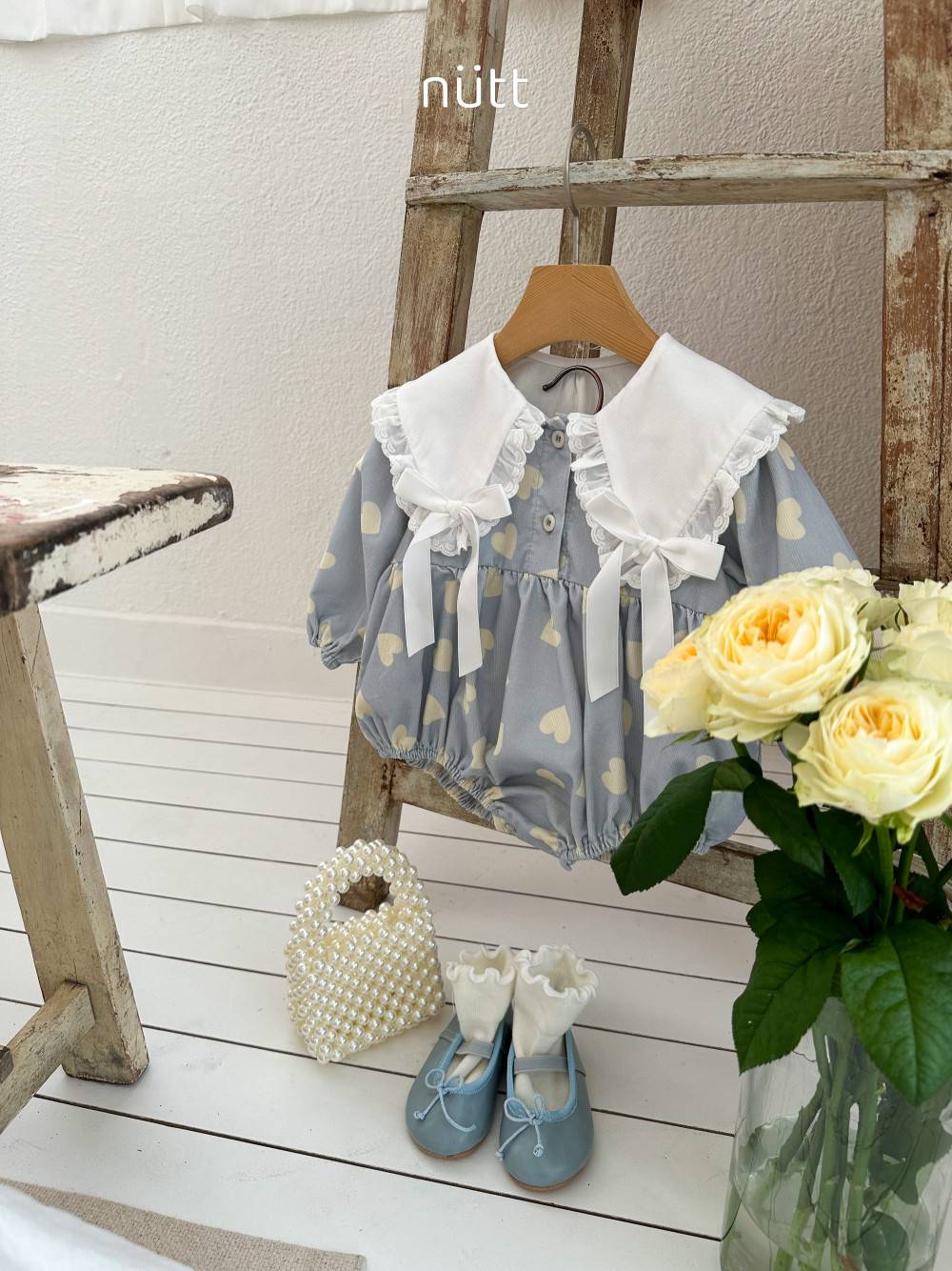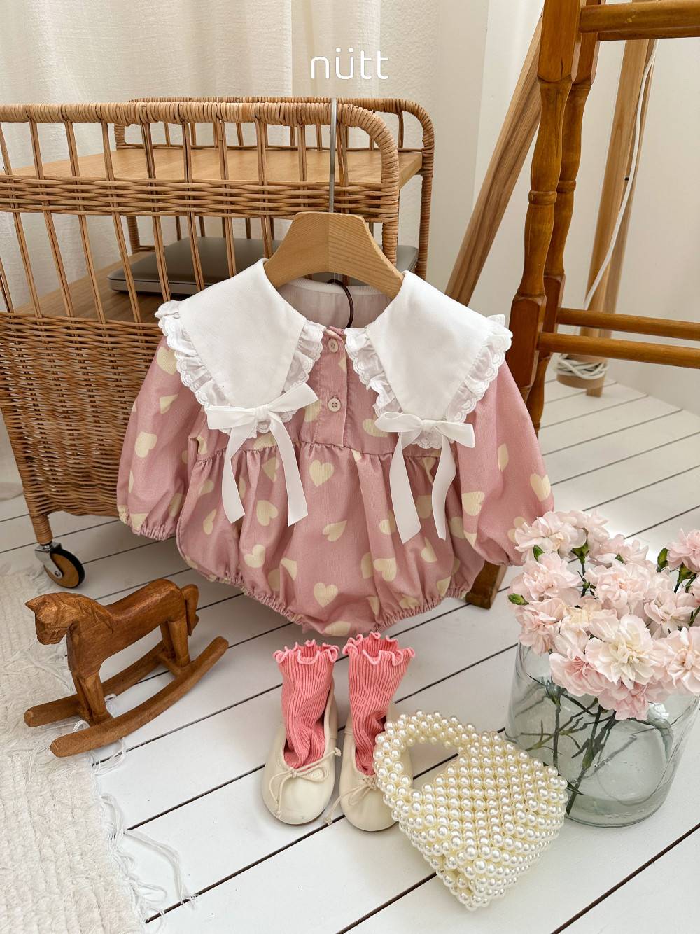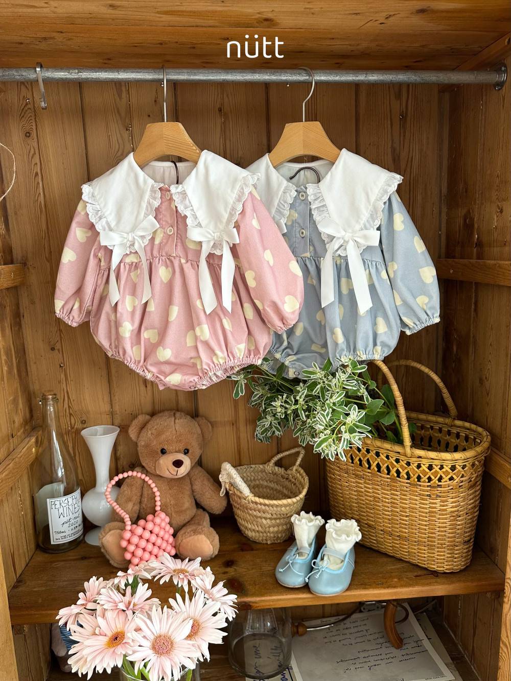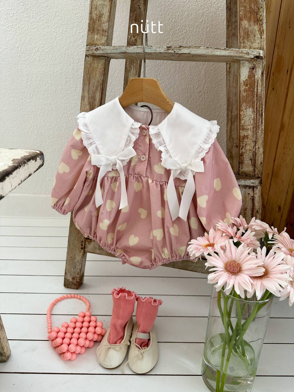 蝴蝶結大翻領愛心連身衣 姊妹裝,蘿菈衣櫥|韓國童裝