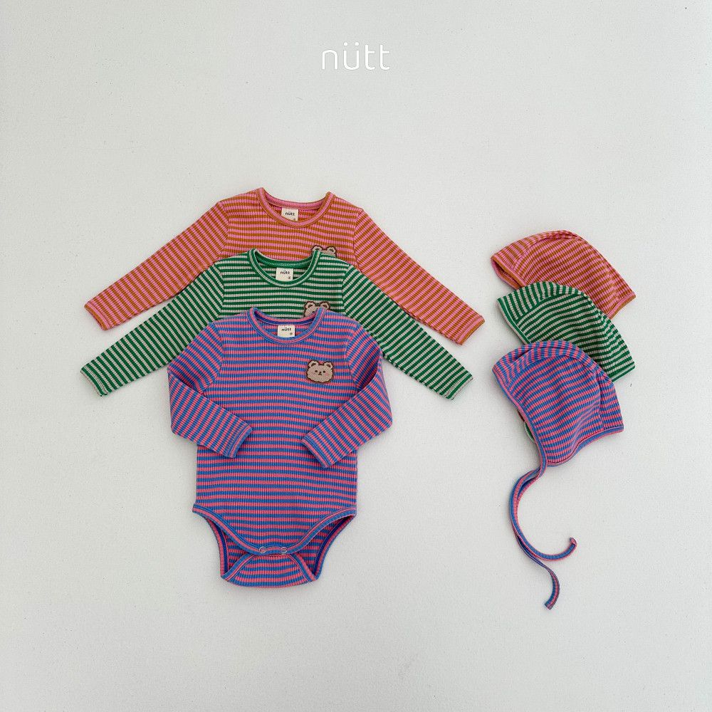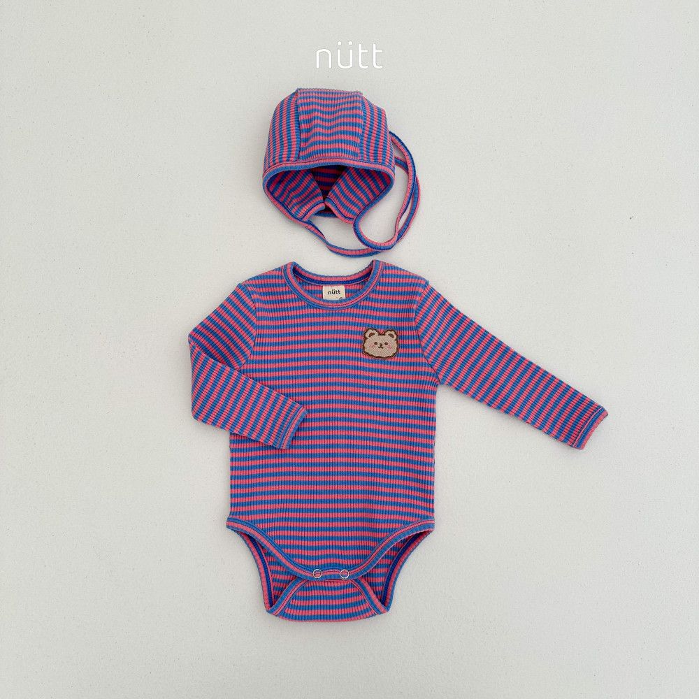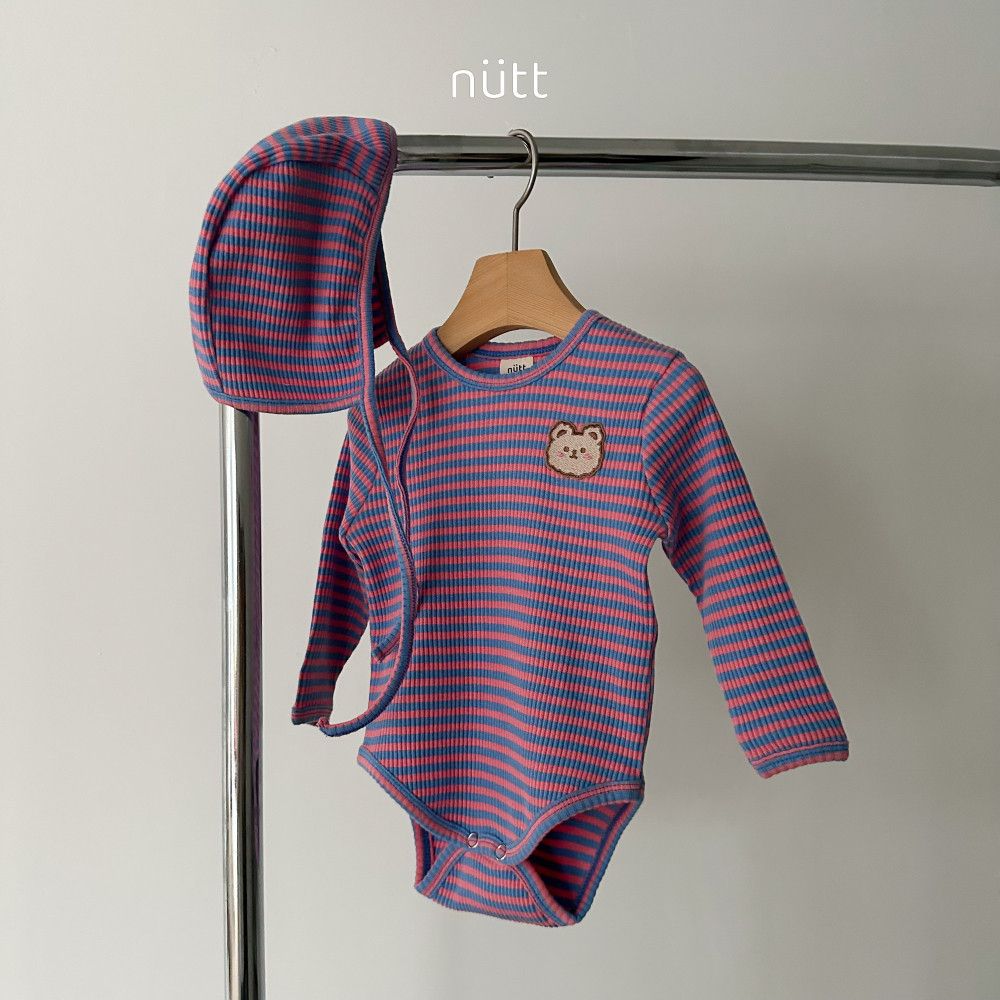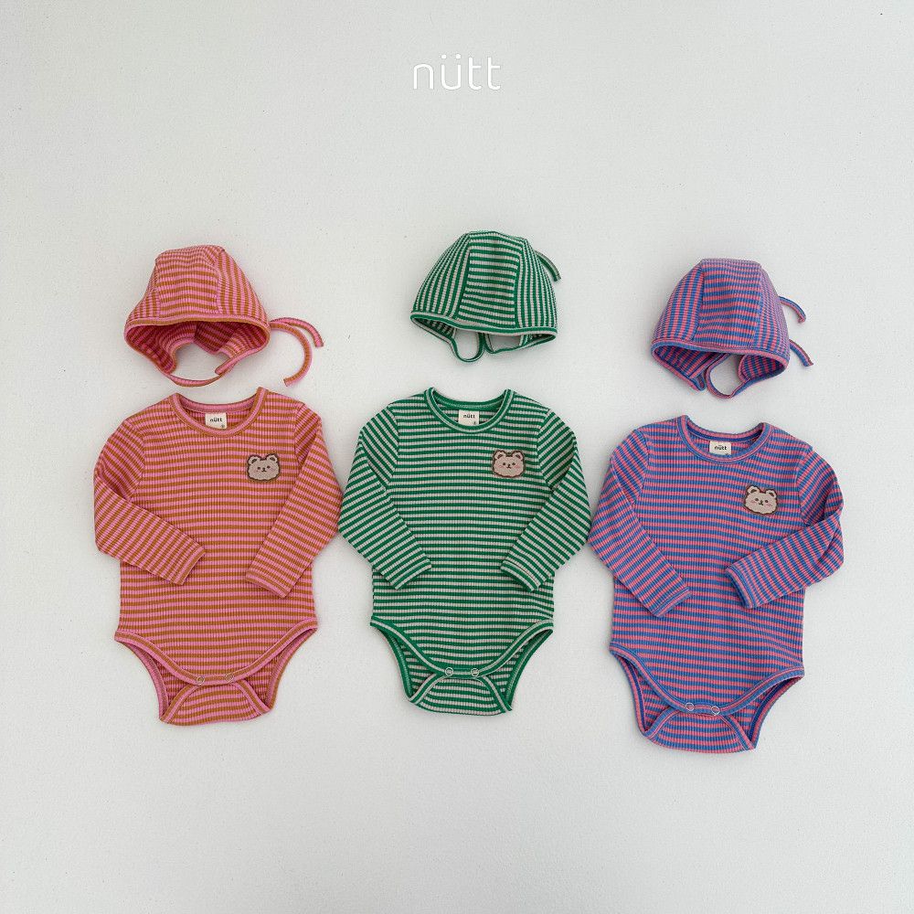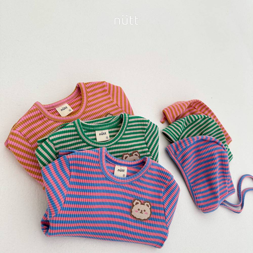 撞色條紋小熊包屁衣套裝 衣+帽,蘿菈衣櫥|韓國童裝