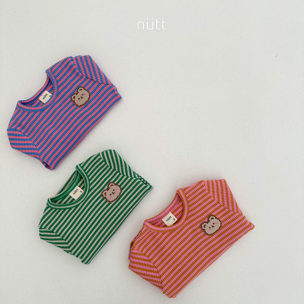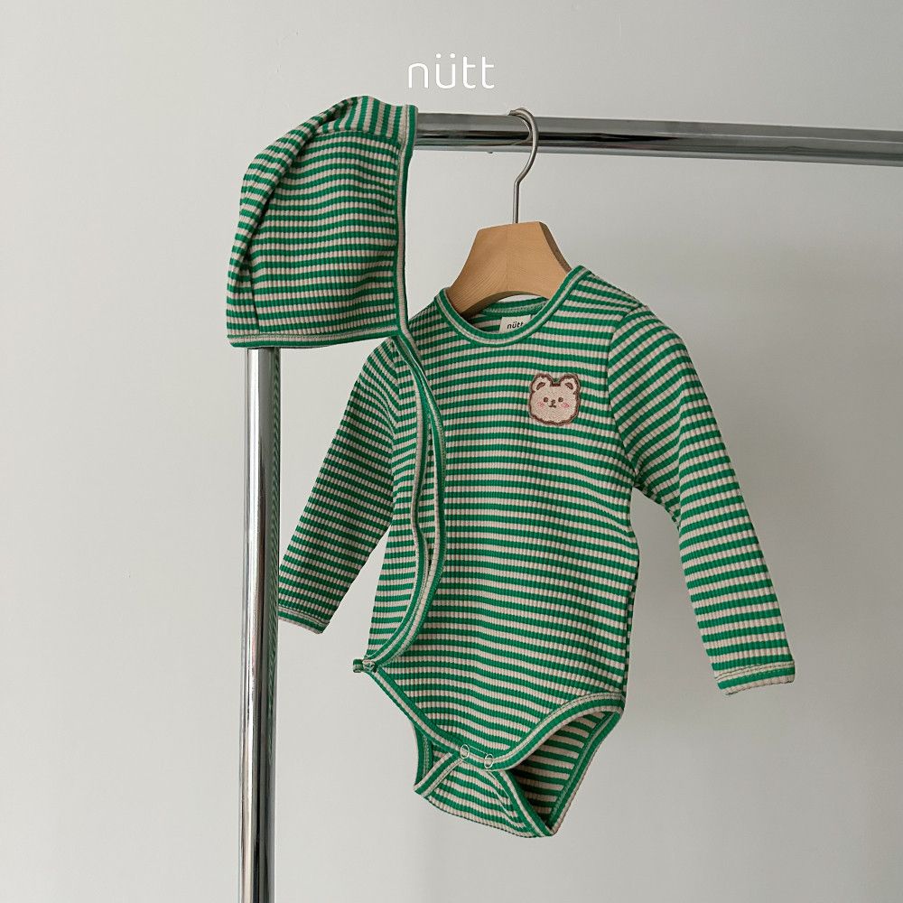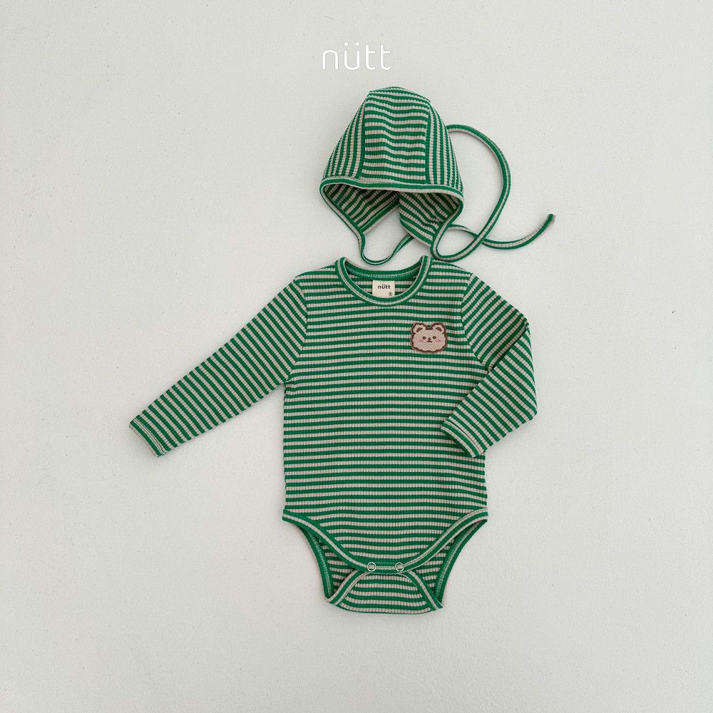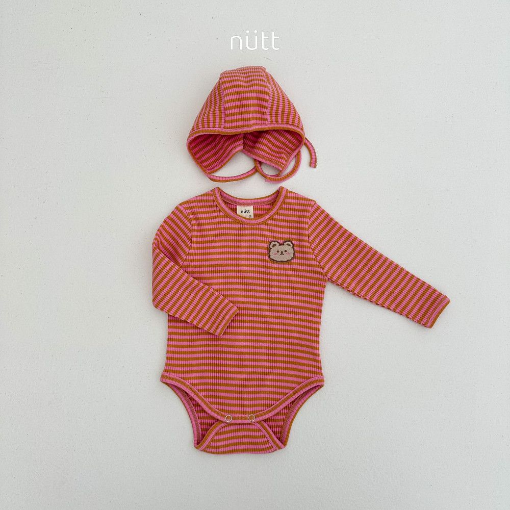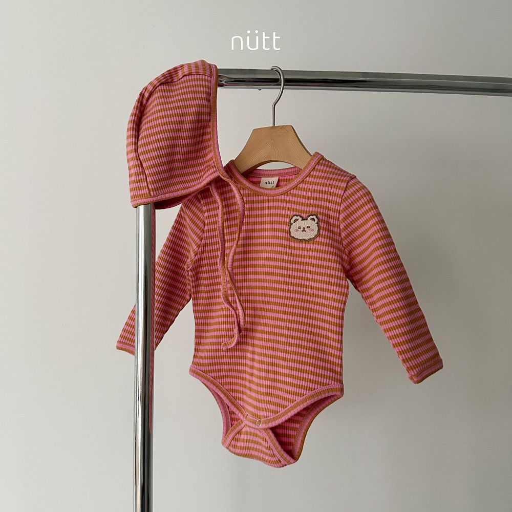 撞色條紋小熊包屁衣套裝 衣+帽,蘿菈衣櫥|韓國童裝