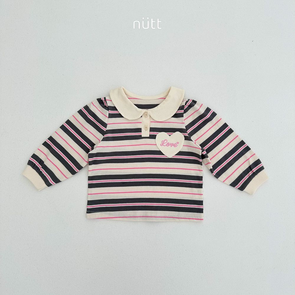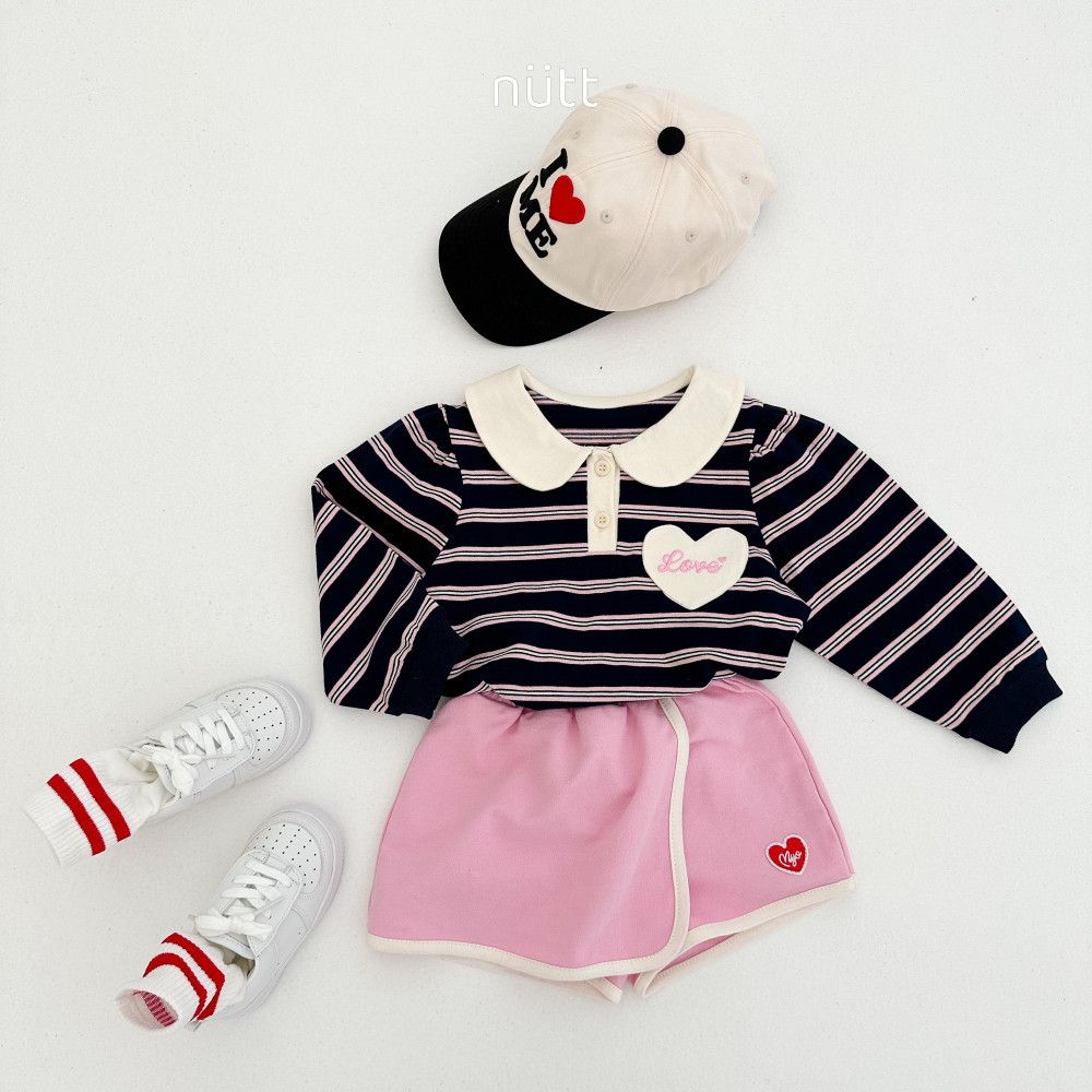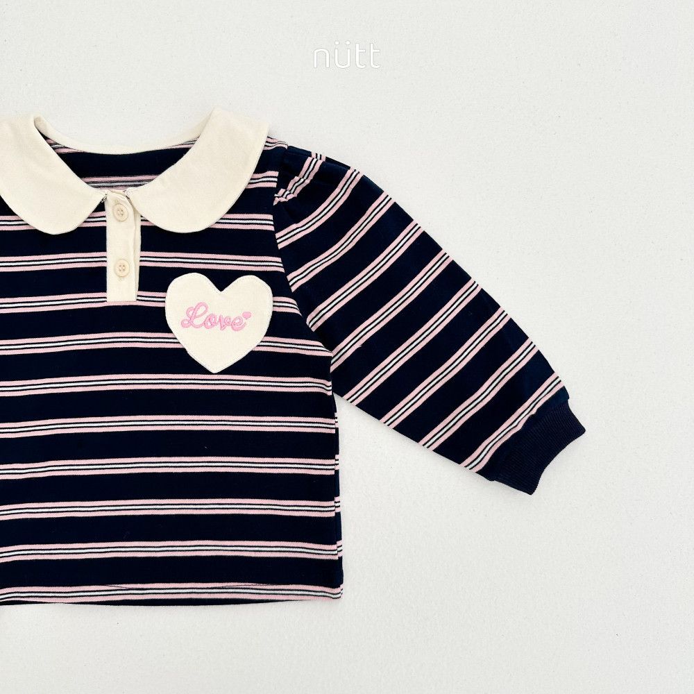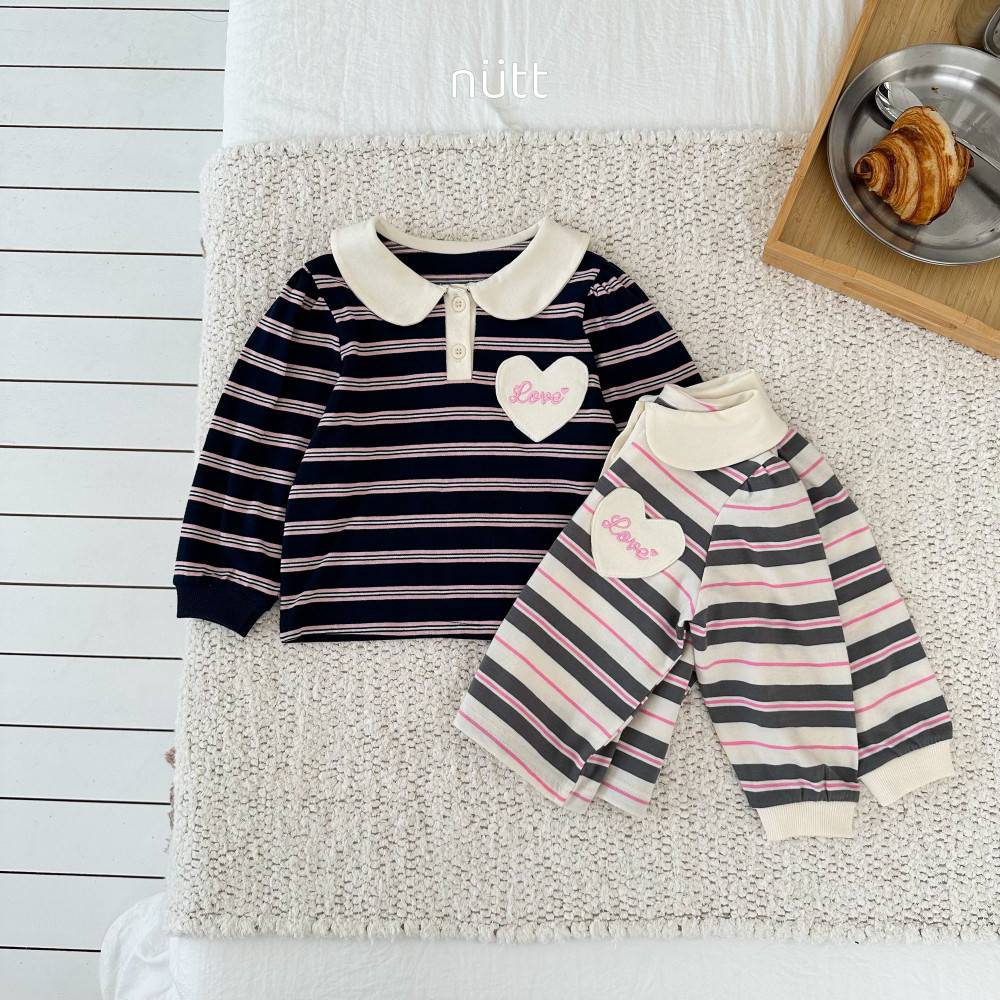 愛心貼布圓領條紋長袖上衣,蘿菈衣櫥|韓國童裝