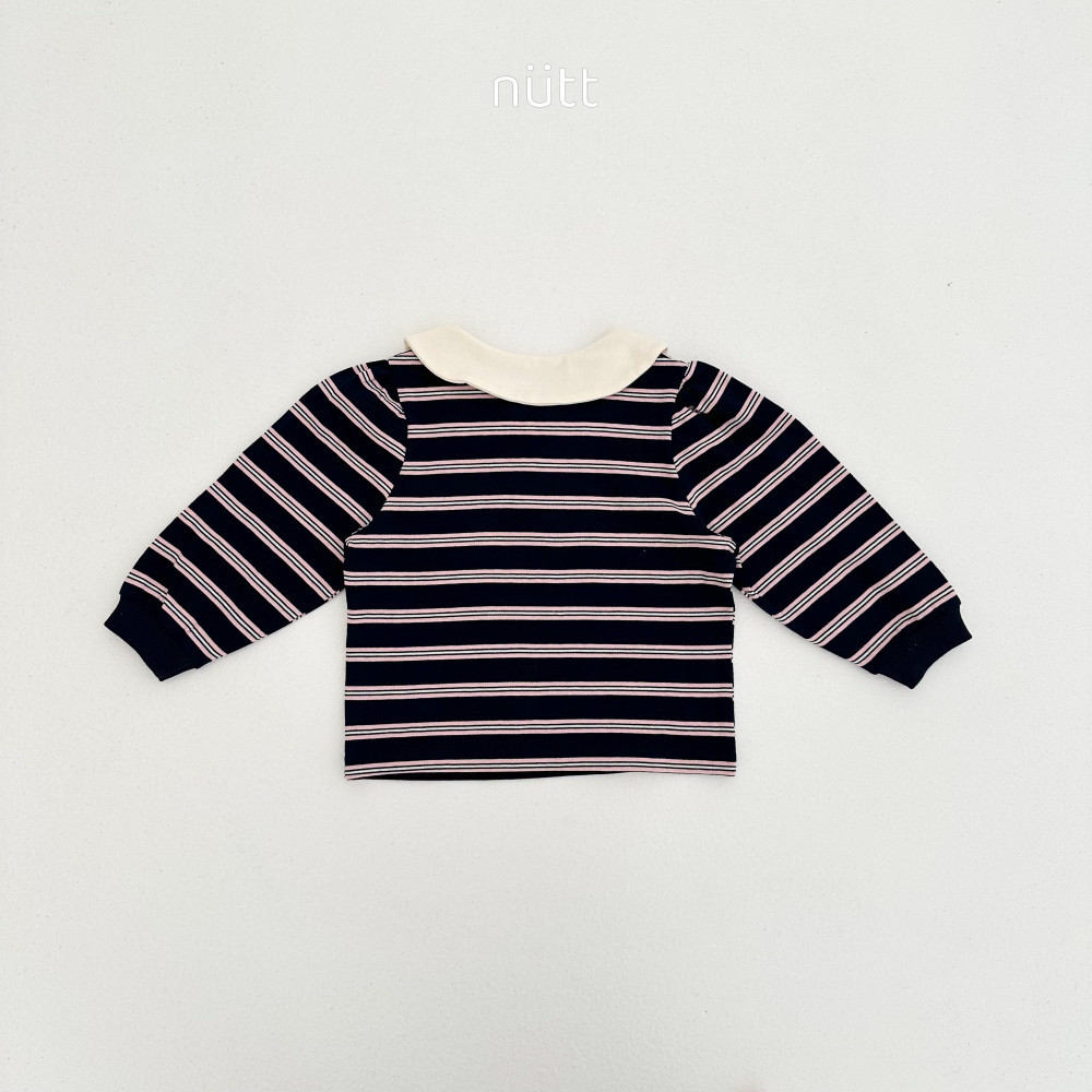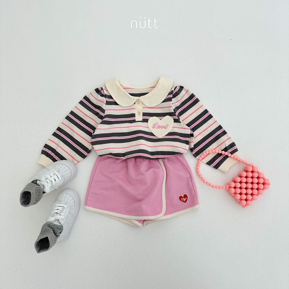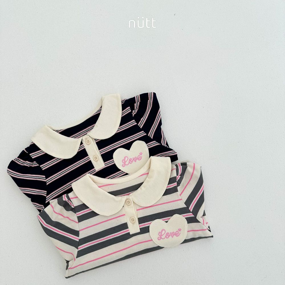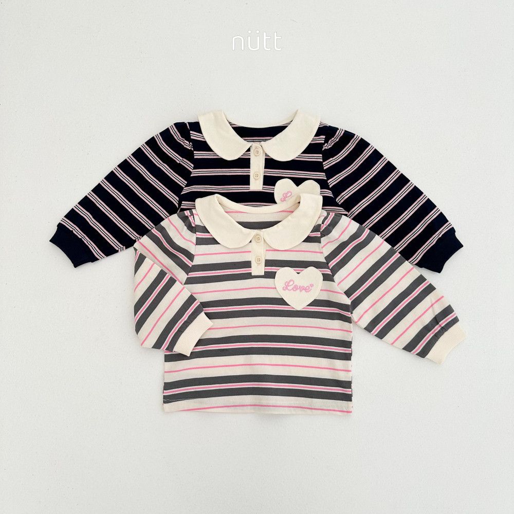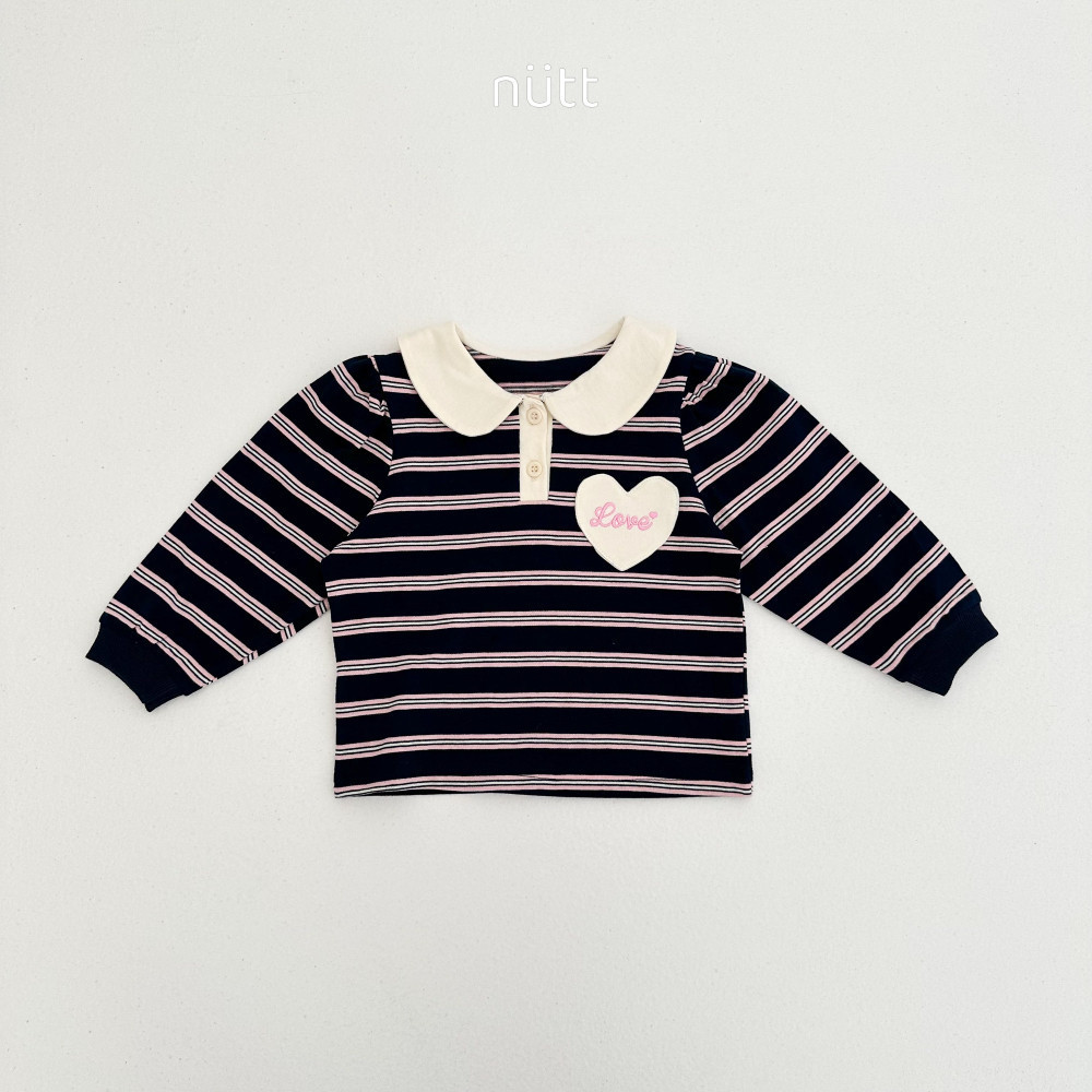 愛心貼布圓領條紋長袖上衣,蘿菈衣櫥|韓國童裝