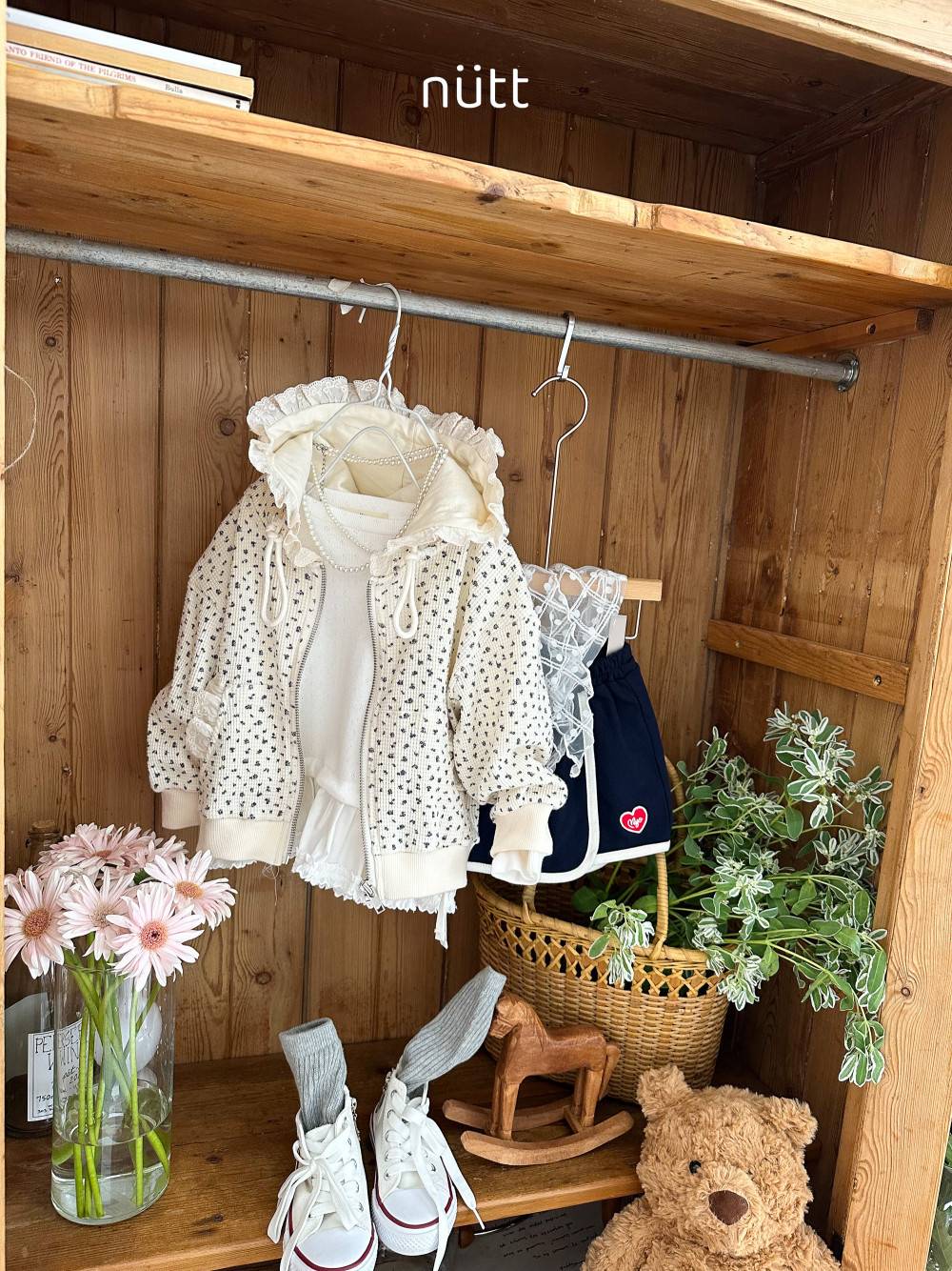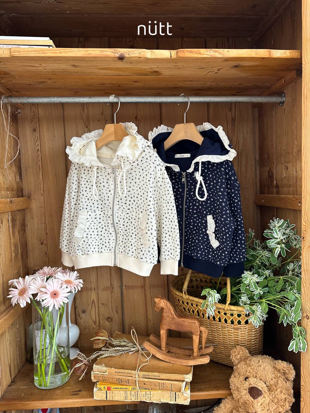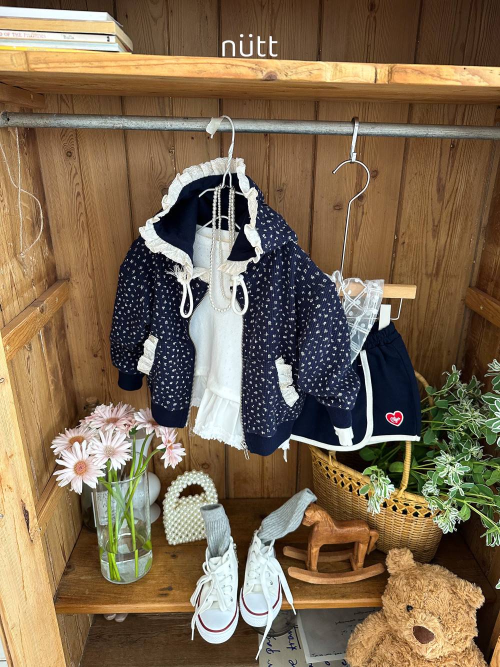 荷葉邊碎花連帽外套,蘿菈衣櫥|韓國童裝