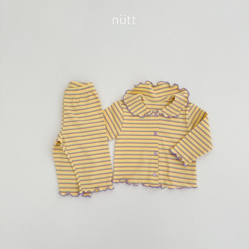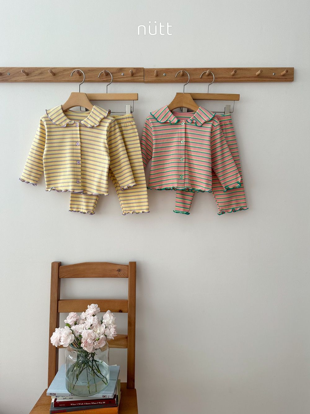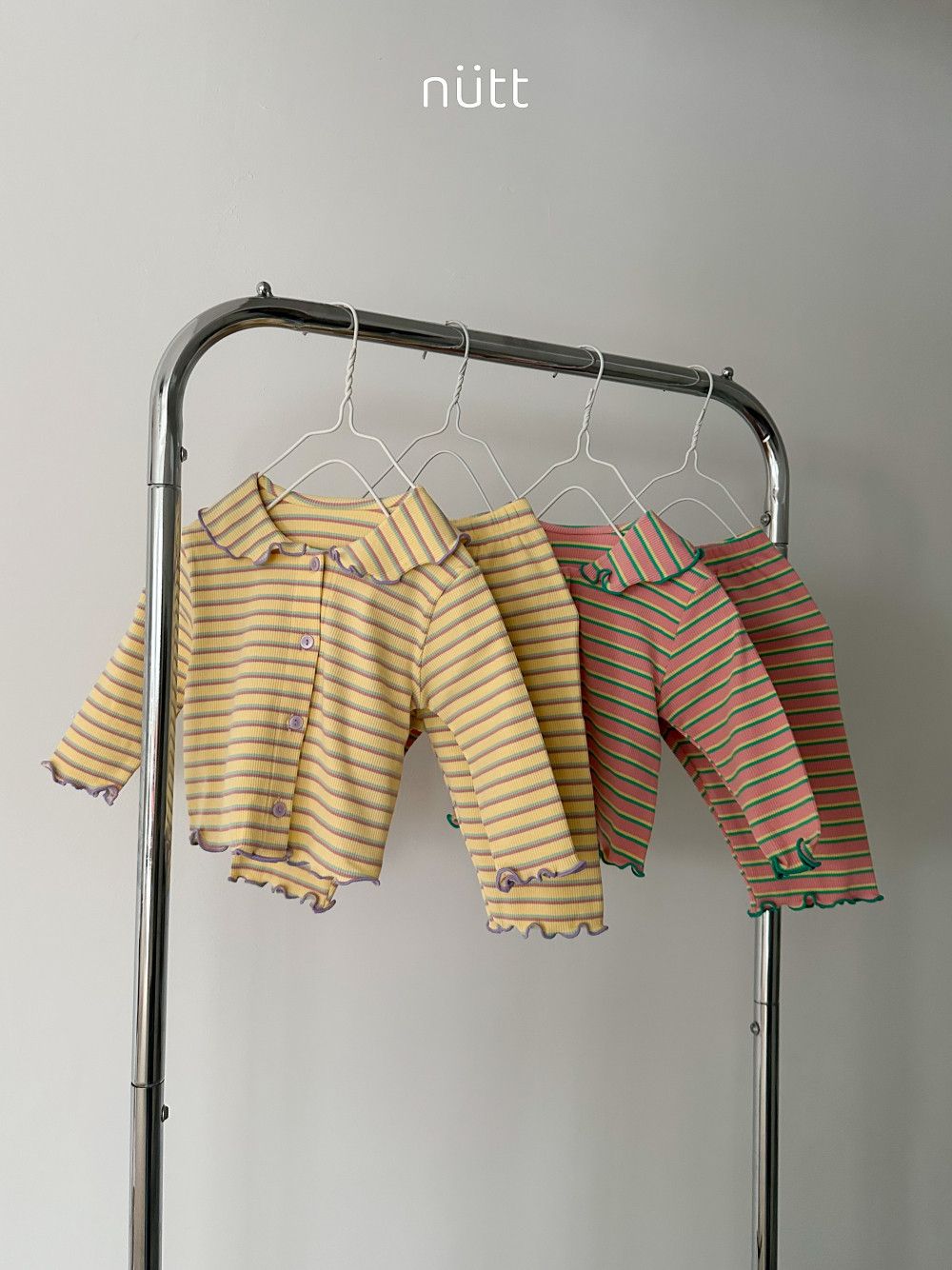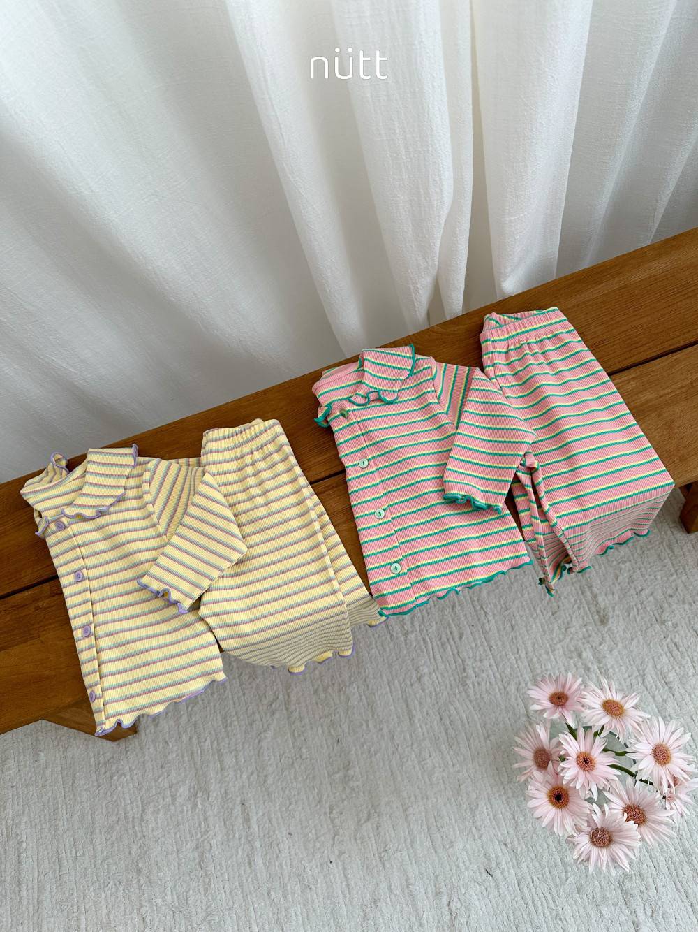 木耳邊條紋家居服 長袖上衣+長褲,蘿菈衣櫥|韓國童裝