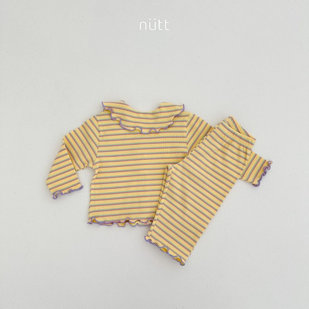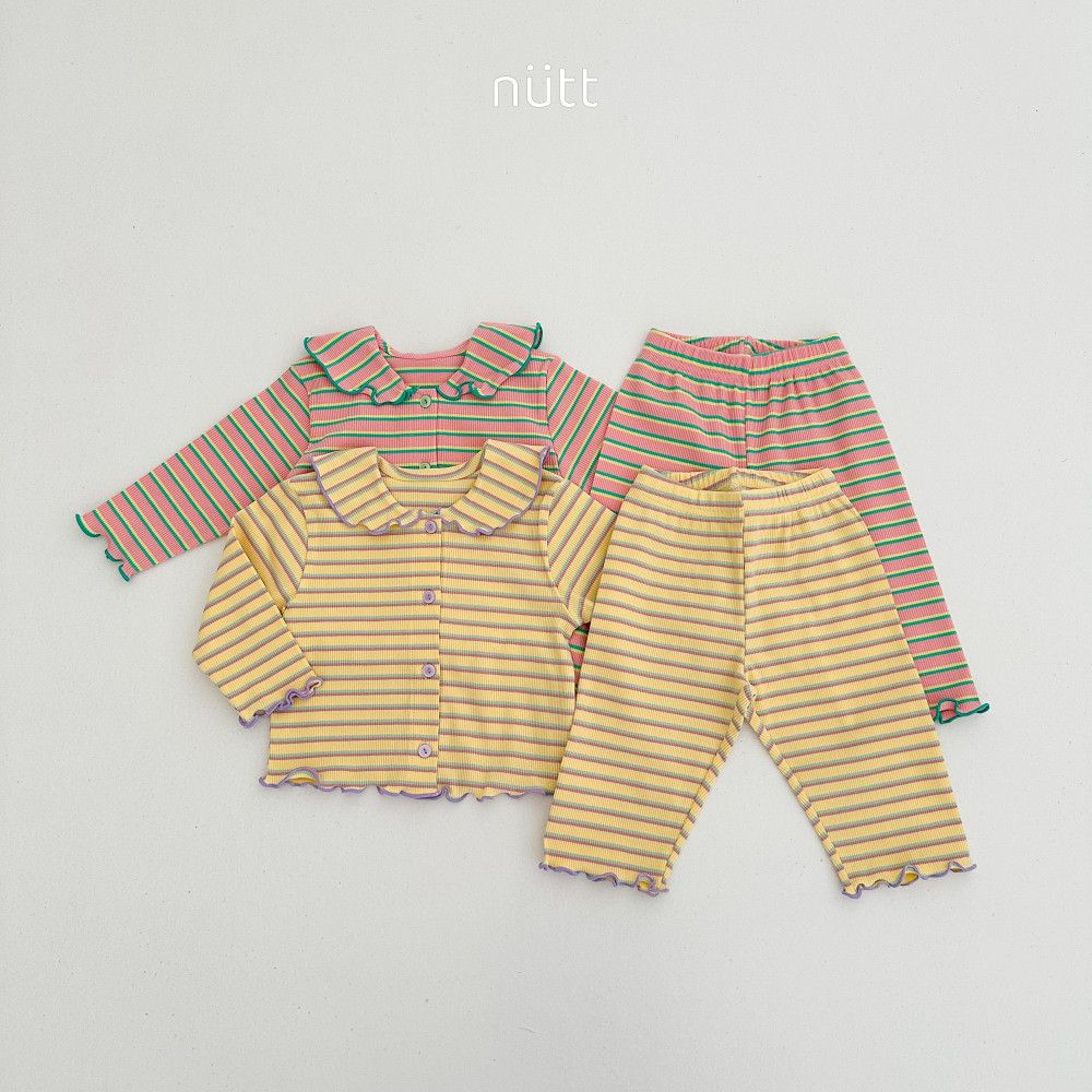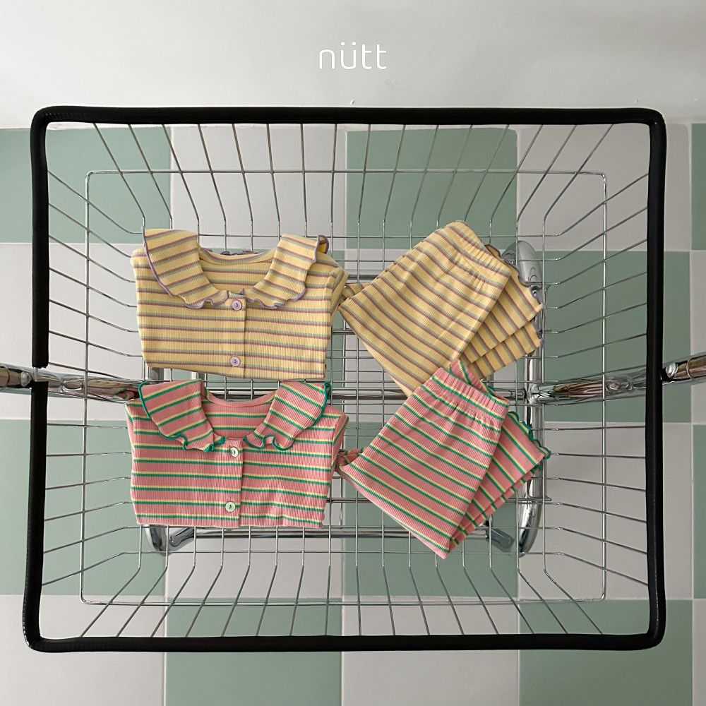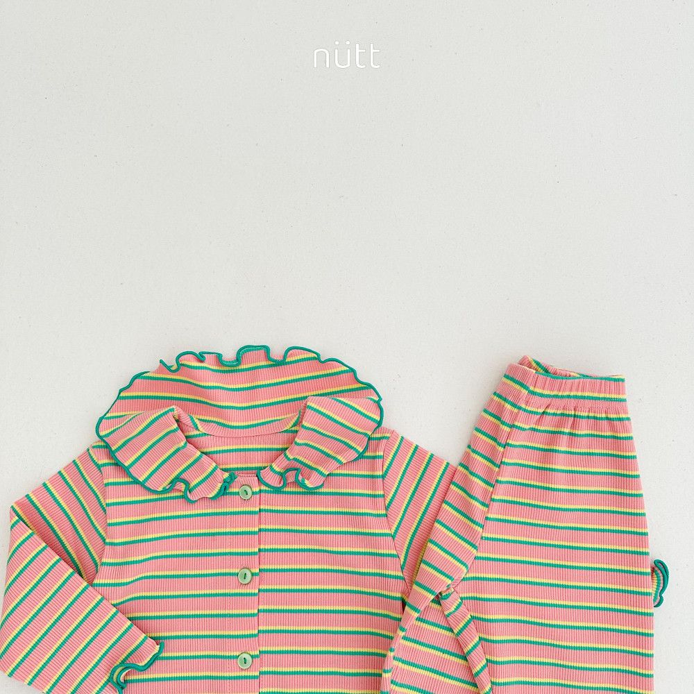 木耳邊條紋家居服 長袖上衣+長褲,蘿菈衣櫥|韓國童裝