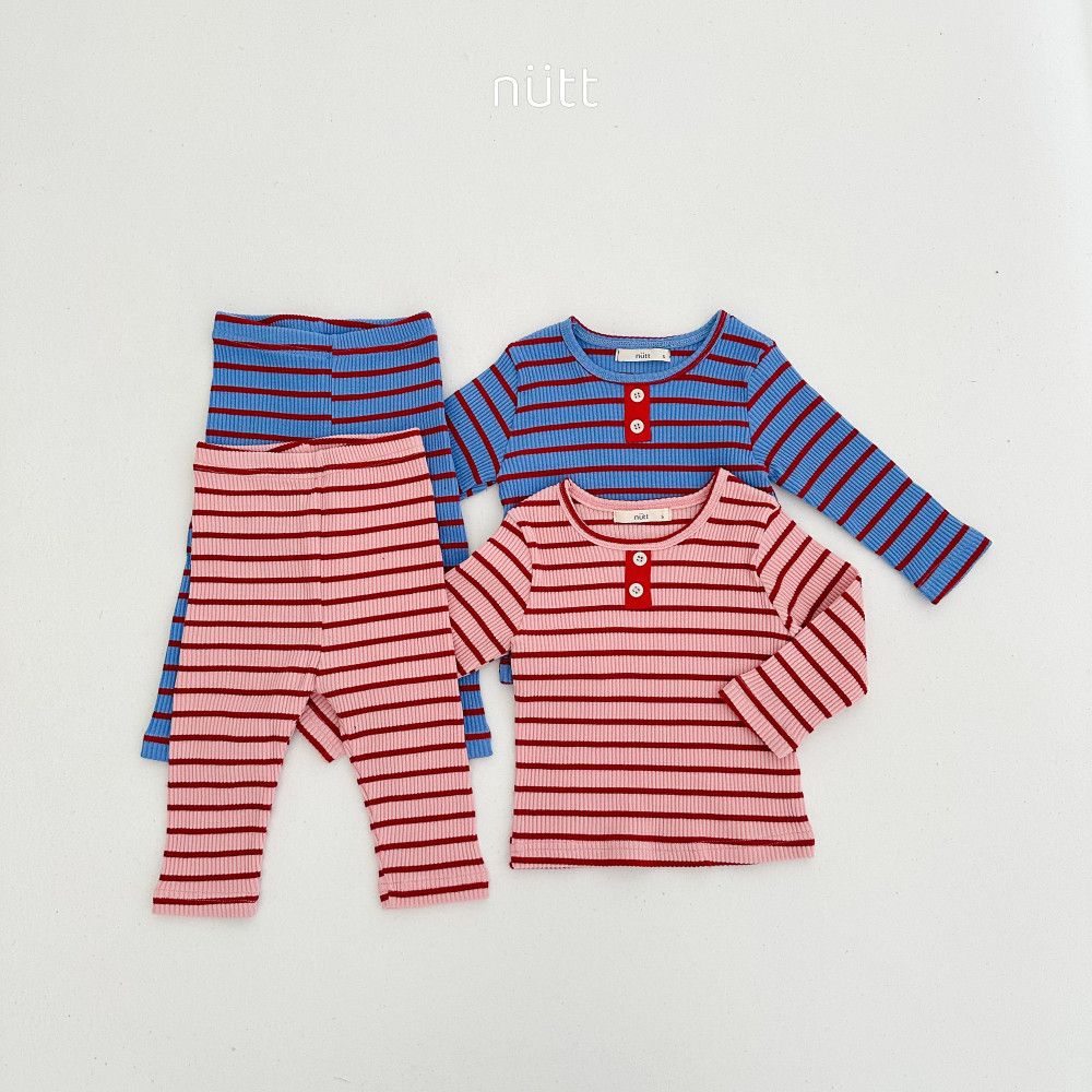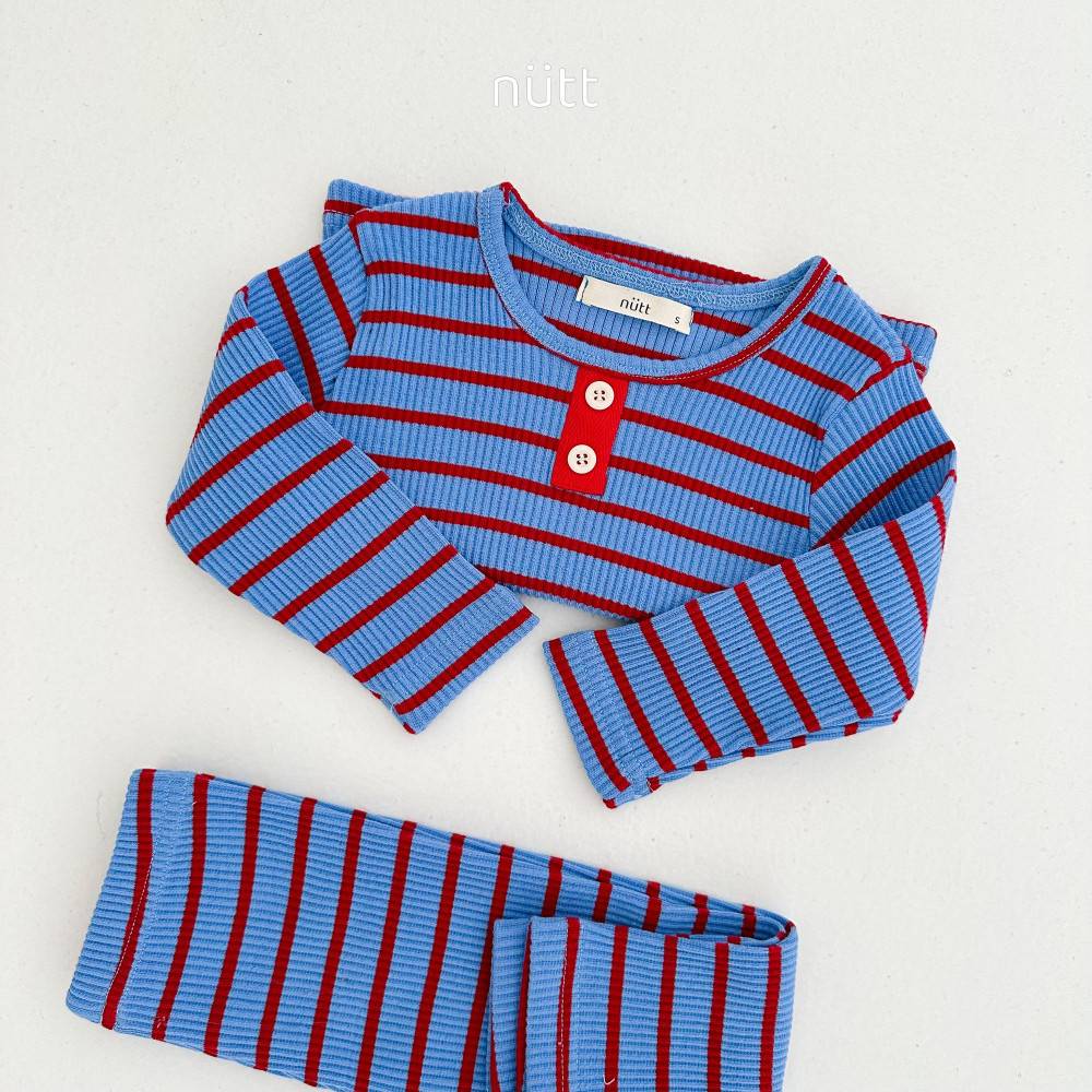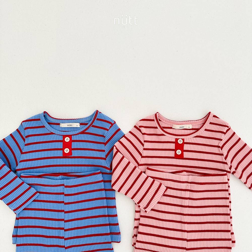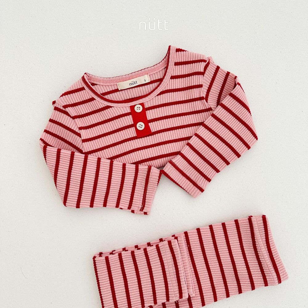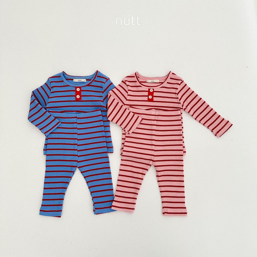 活潑跳色合身條紋居家服 長袖上衣+長褲,蘿菈衣櫥|韓國童裝