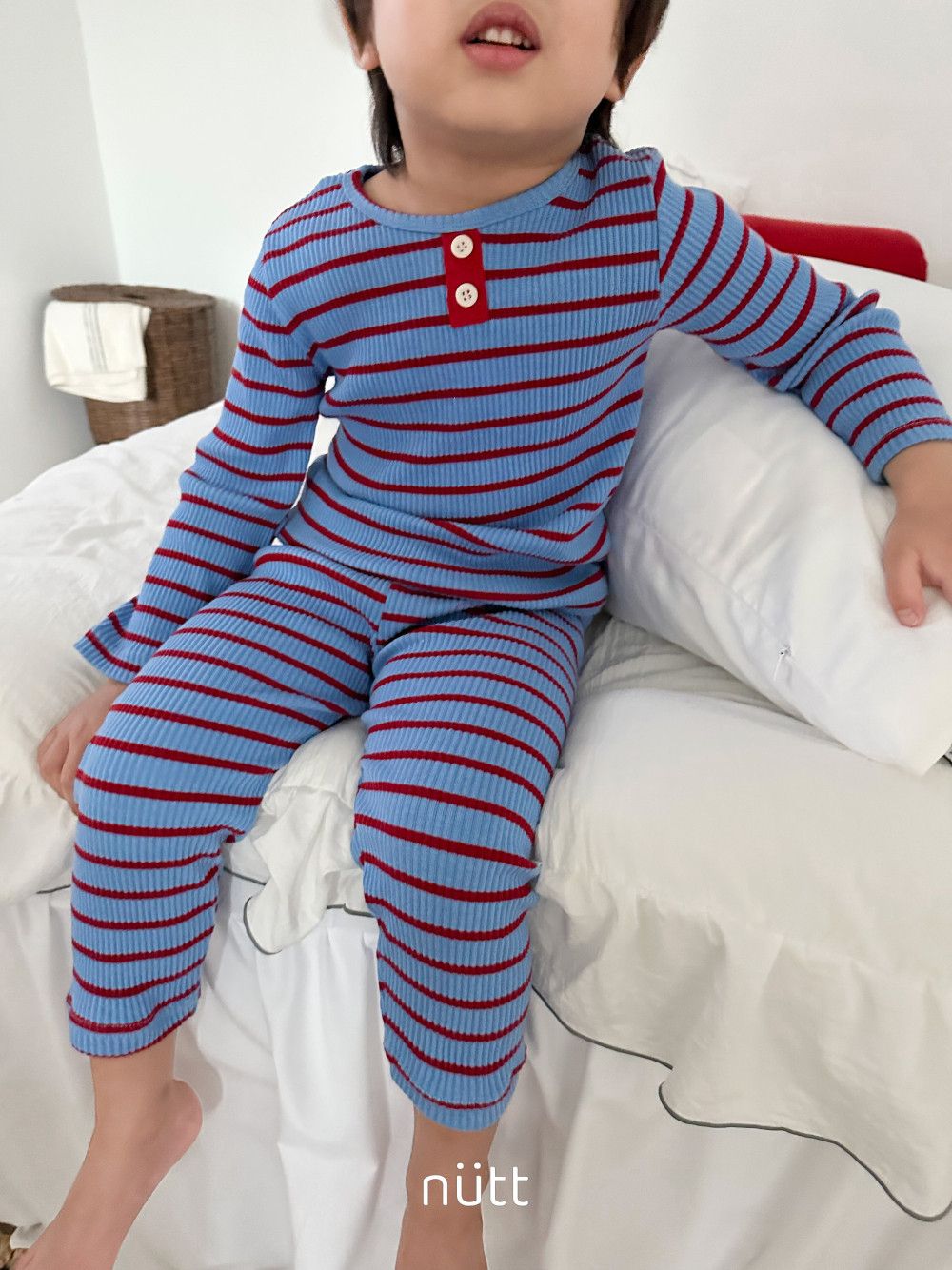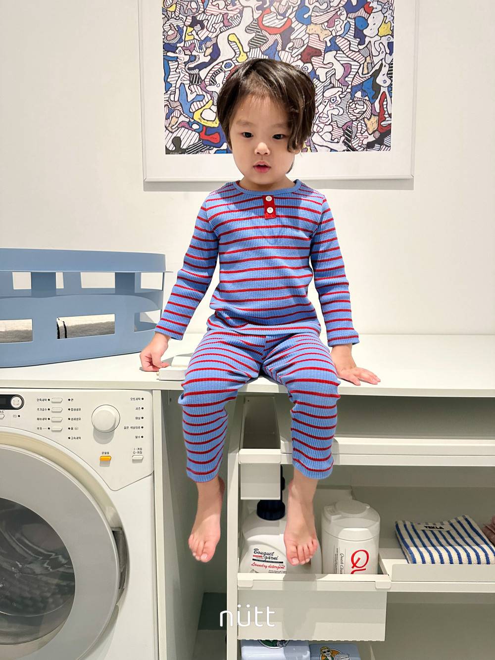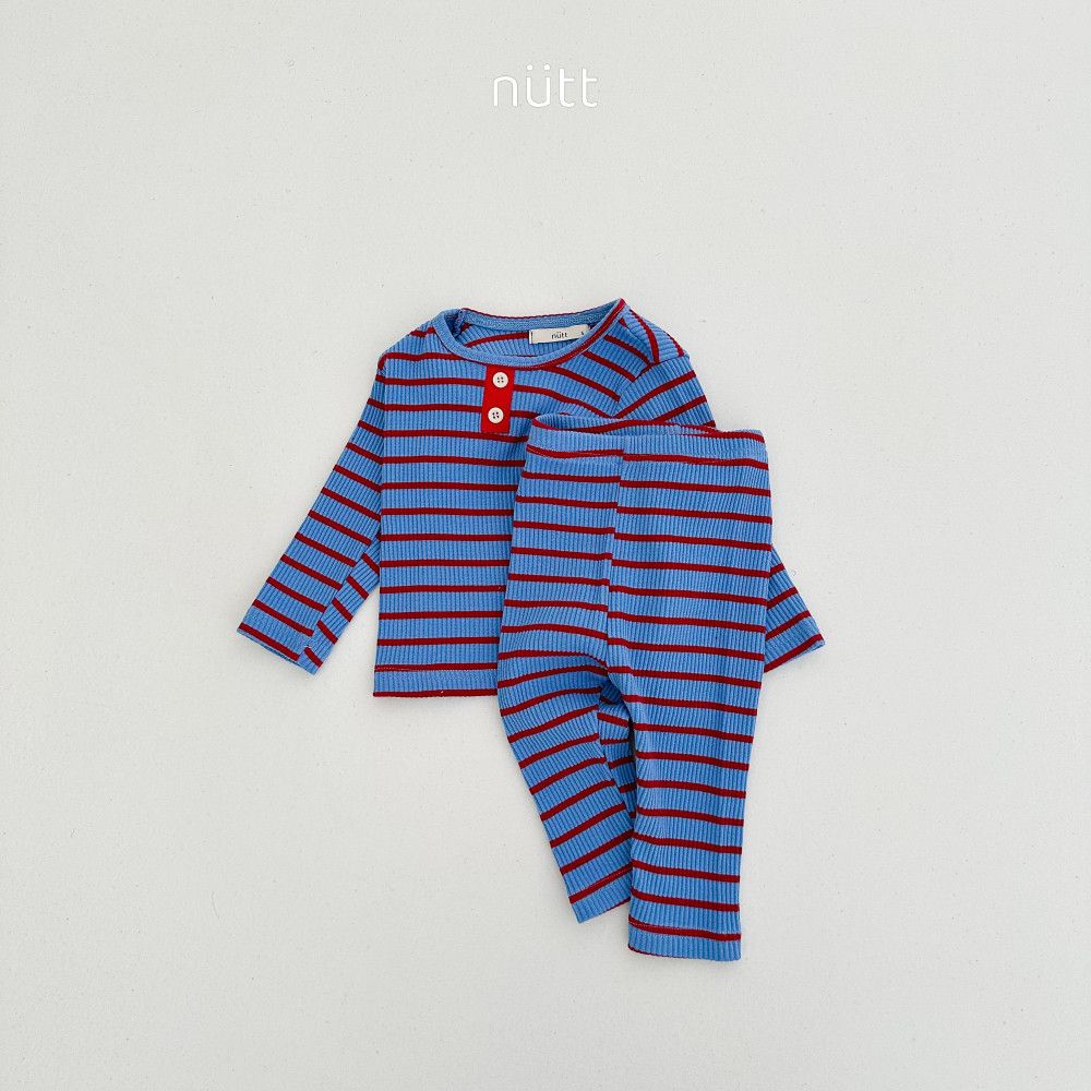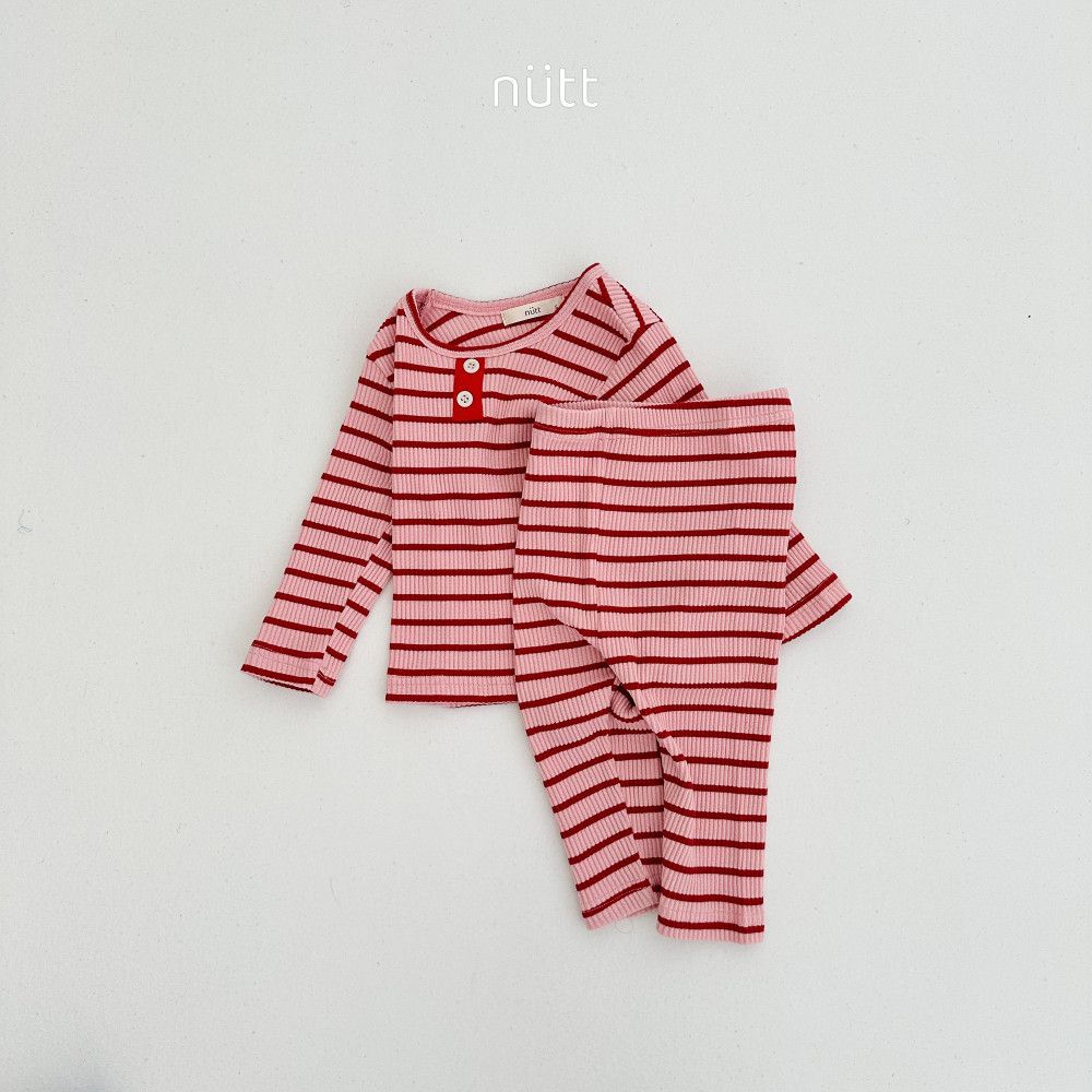 活潑跳色合身條紋居家服 長袖上衣+長褲,蘿菈衣櫥|韓國童裝