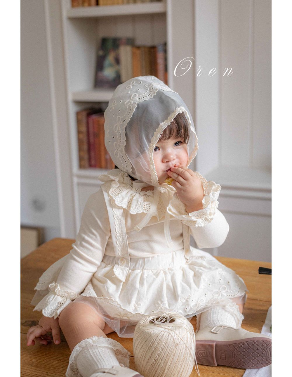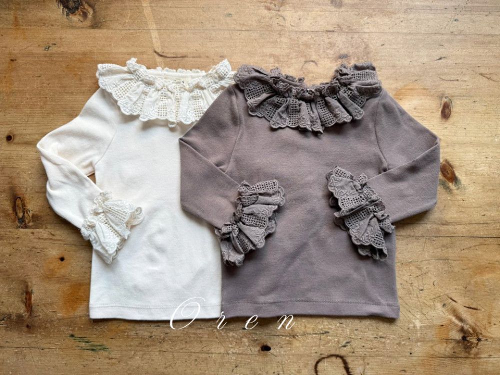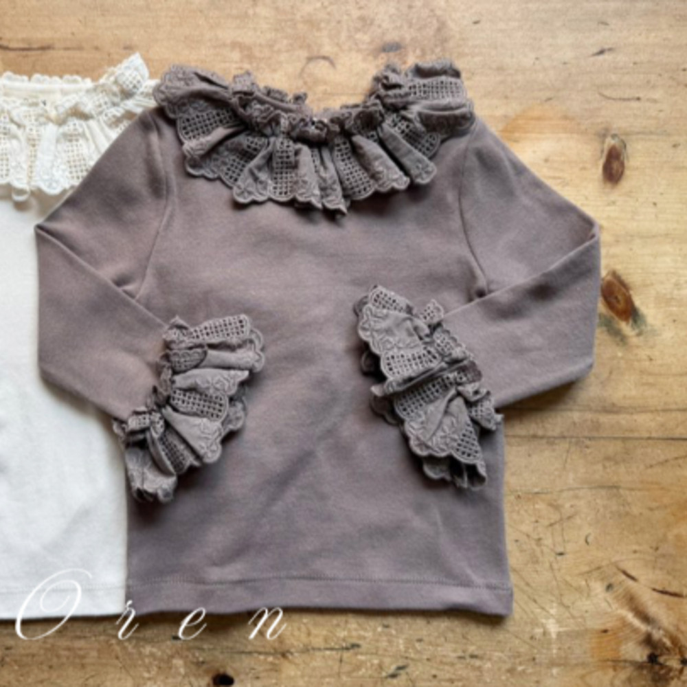 Bebe-純色花邊木耳領長袖上衣,蘿菈衣櫥|韓國童裝