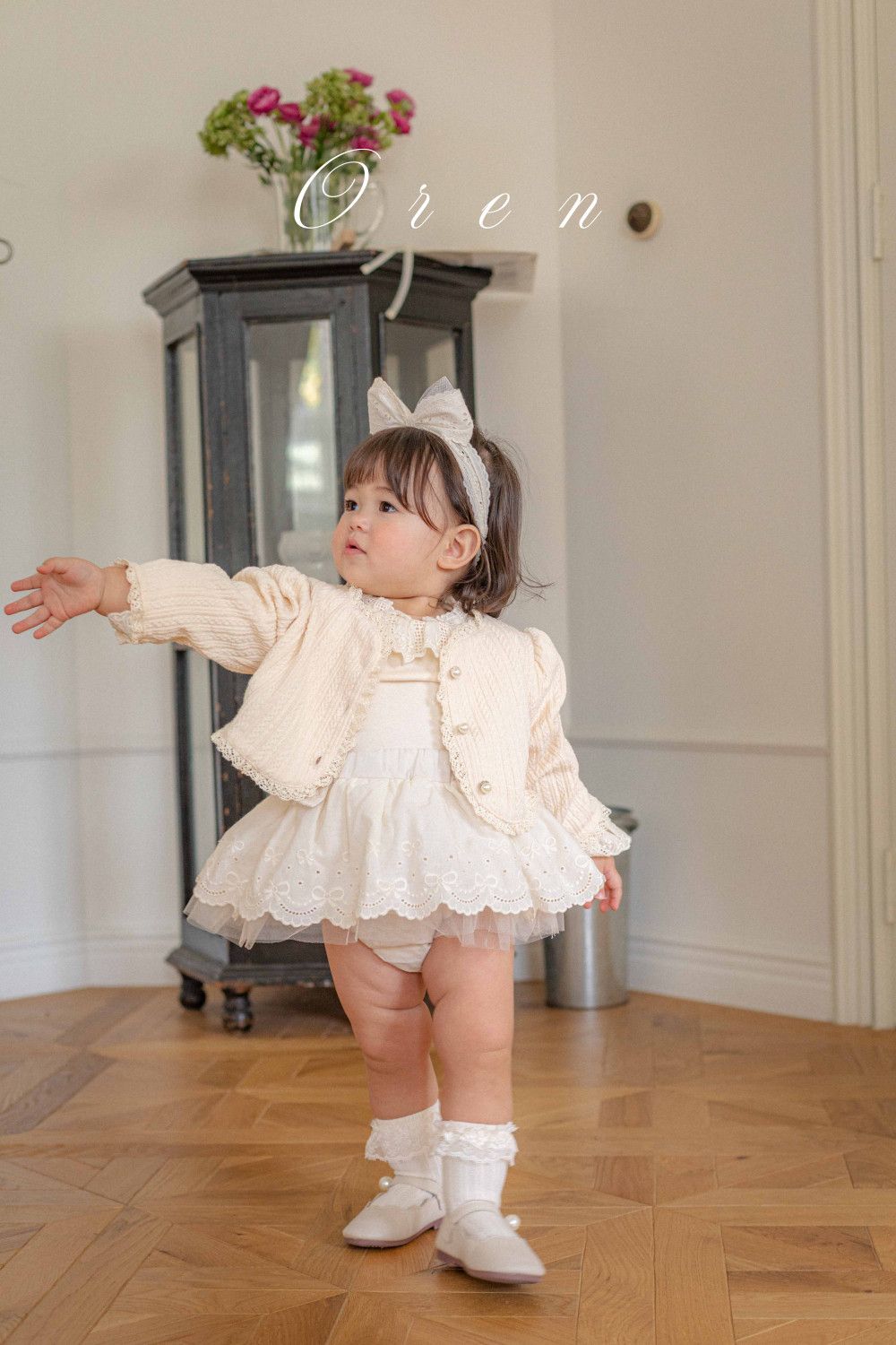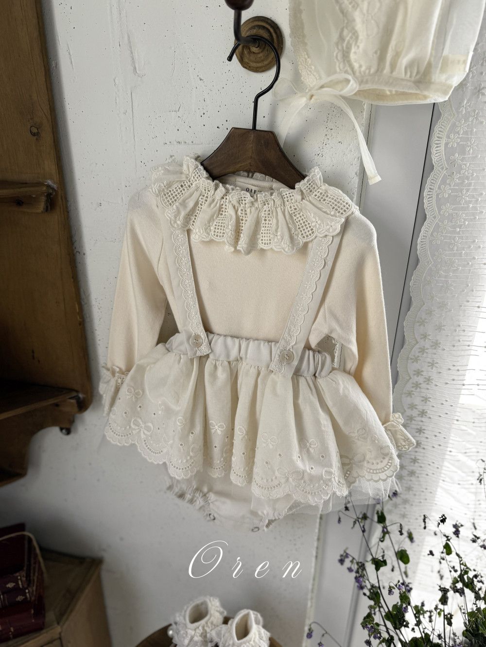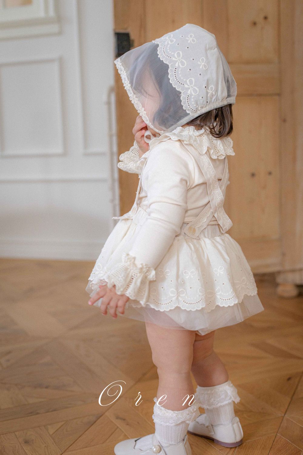 Bebe-純色花邊木耳領長袖上衣,蘿菈衣櫥|韓國童裝