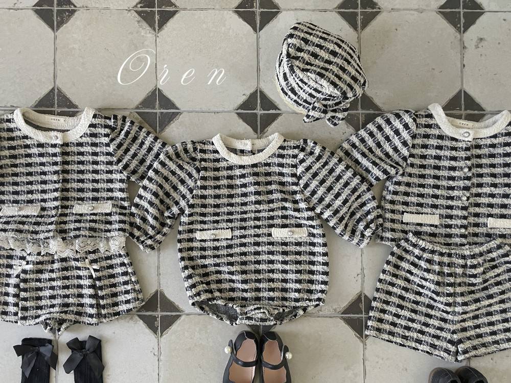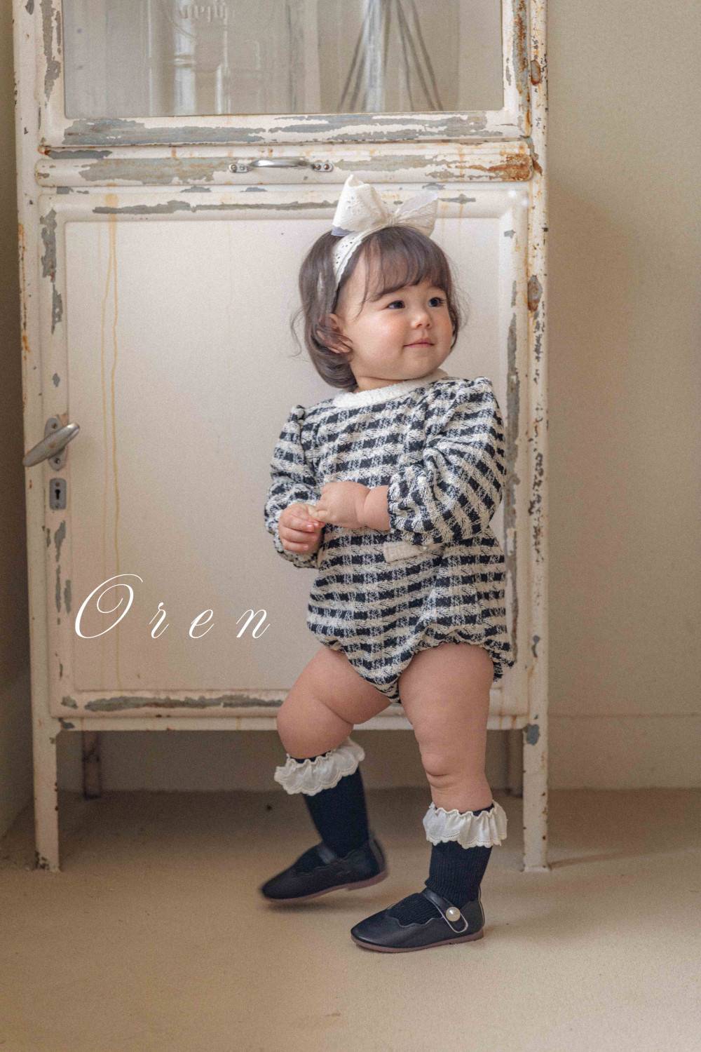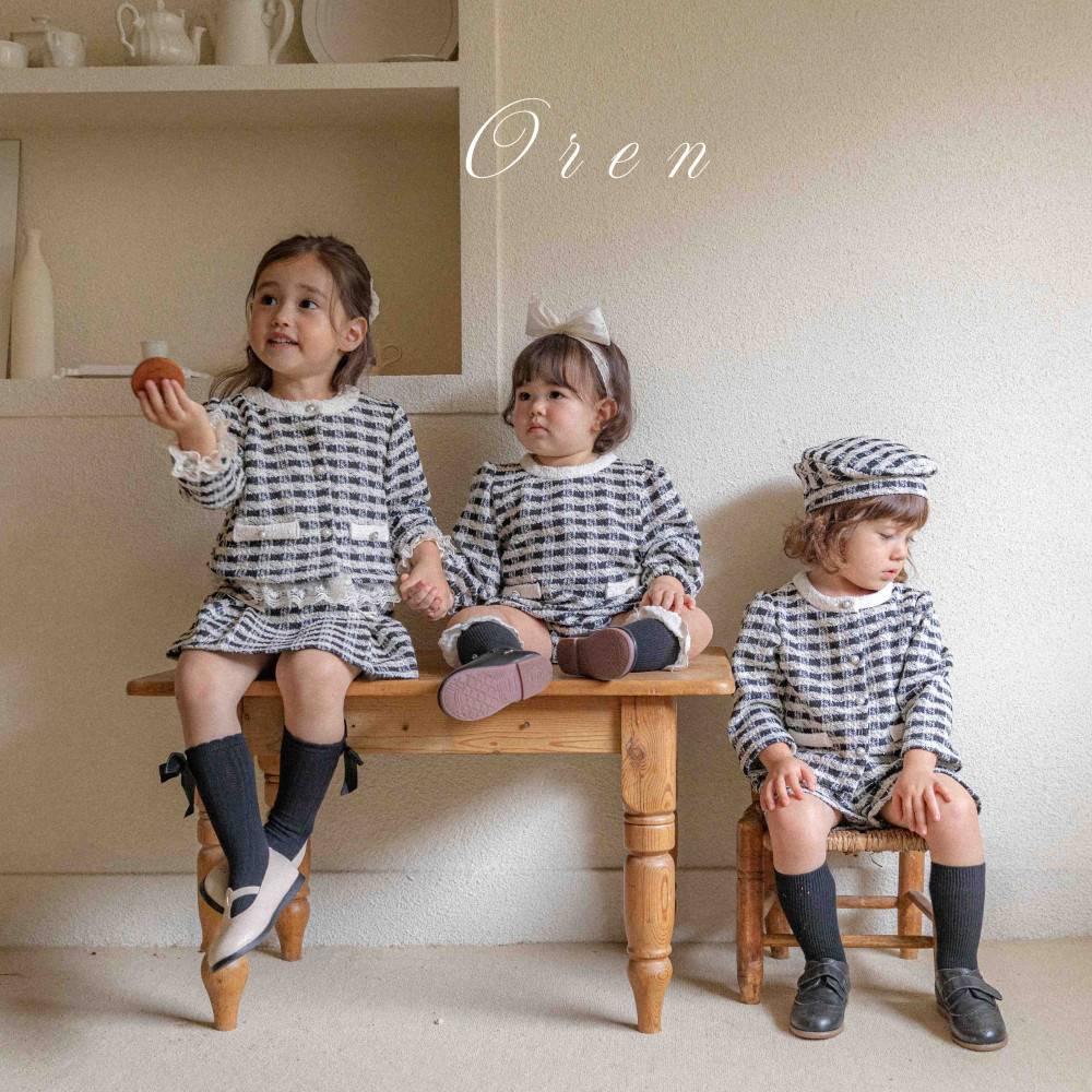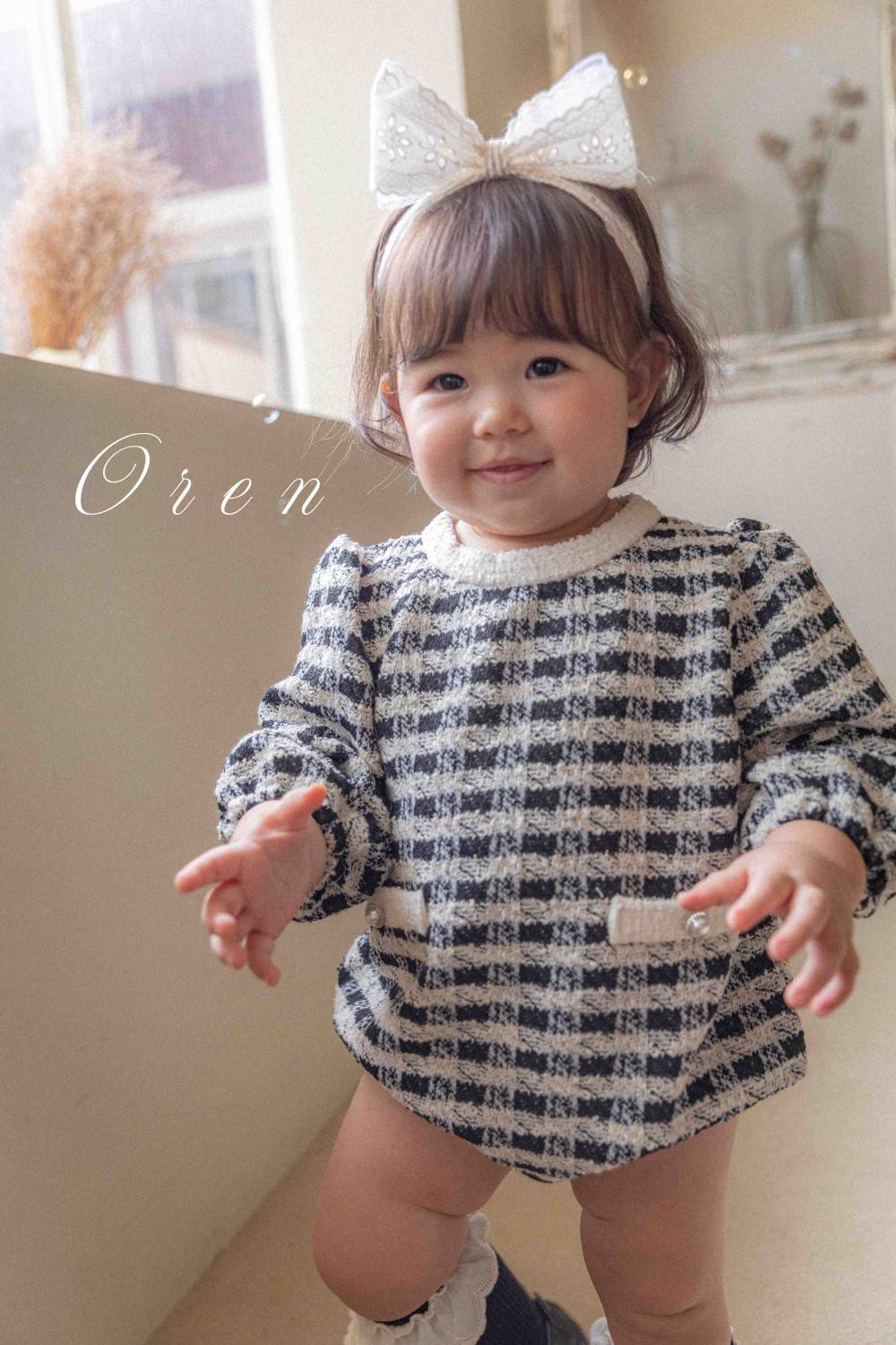 Bebe-毛呢格紋寶寶連身衣 髮飾另售,蘿菈衣櫥|韓國童裝
