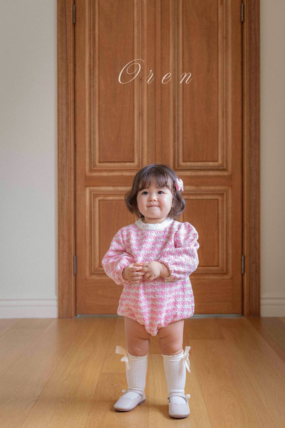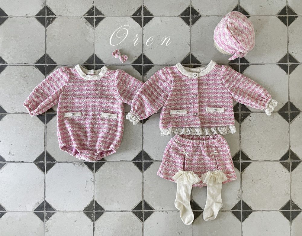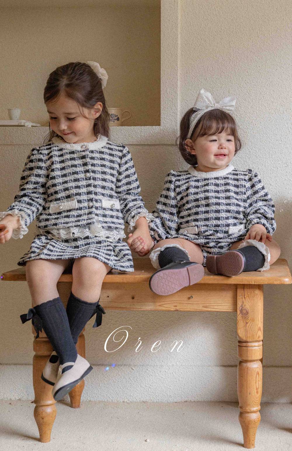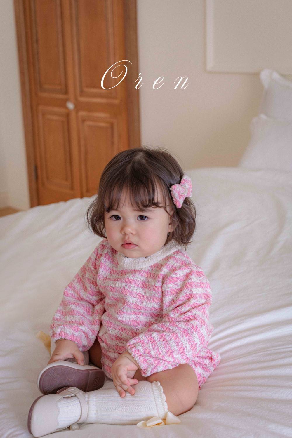 Bebe-毛呢格紋寶寶連身衣 髮飾另售,蘿菈衣櫥|韓國童裝