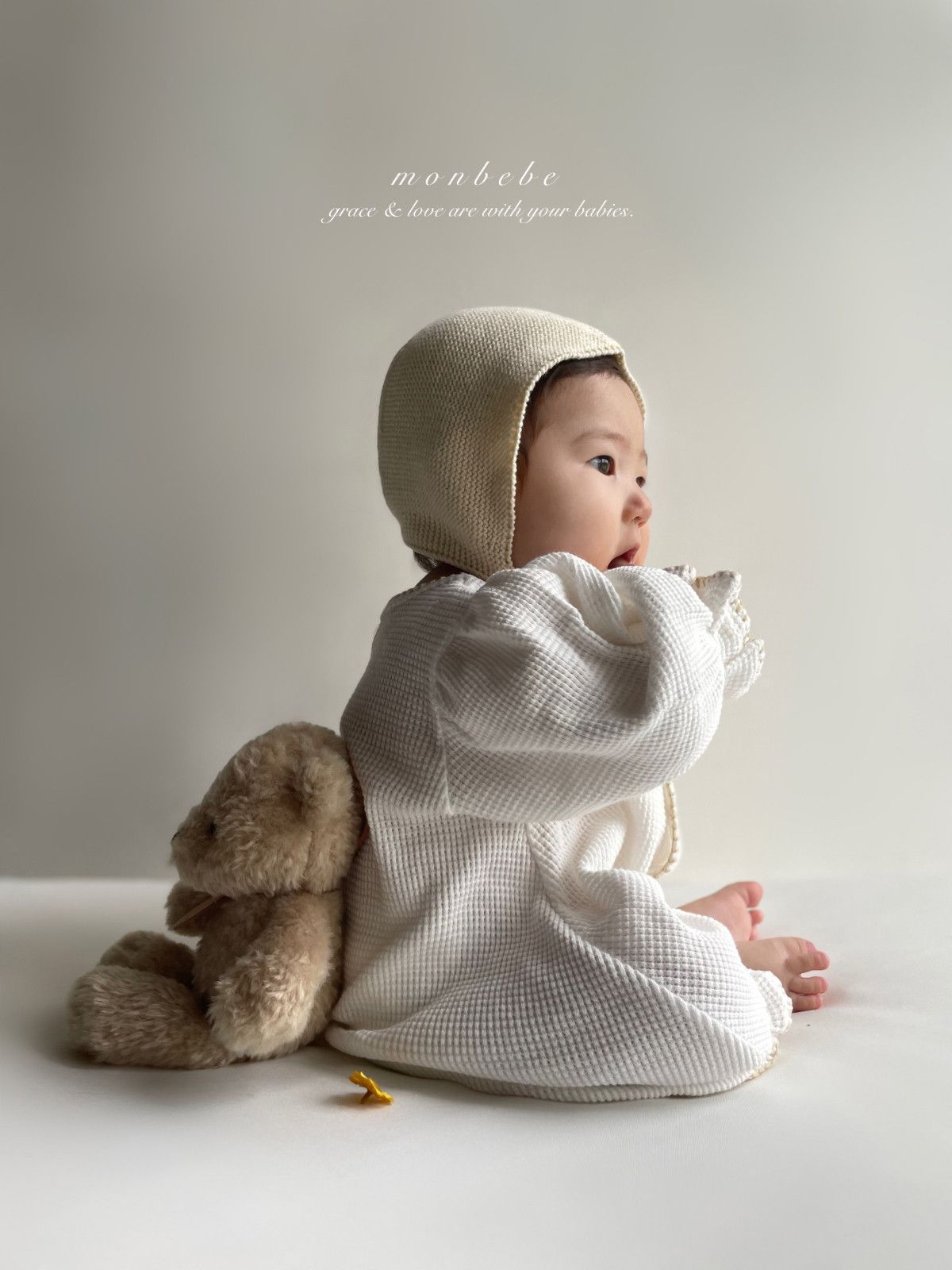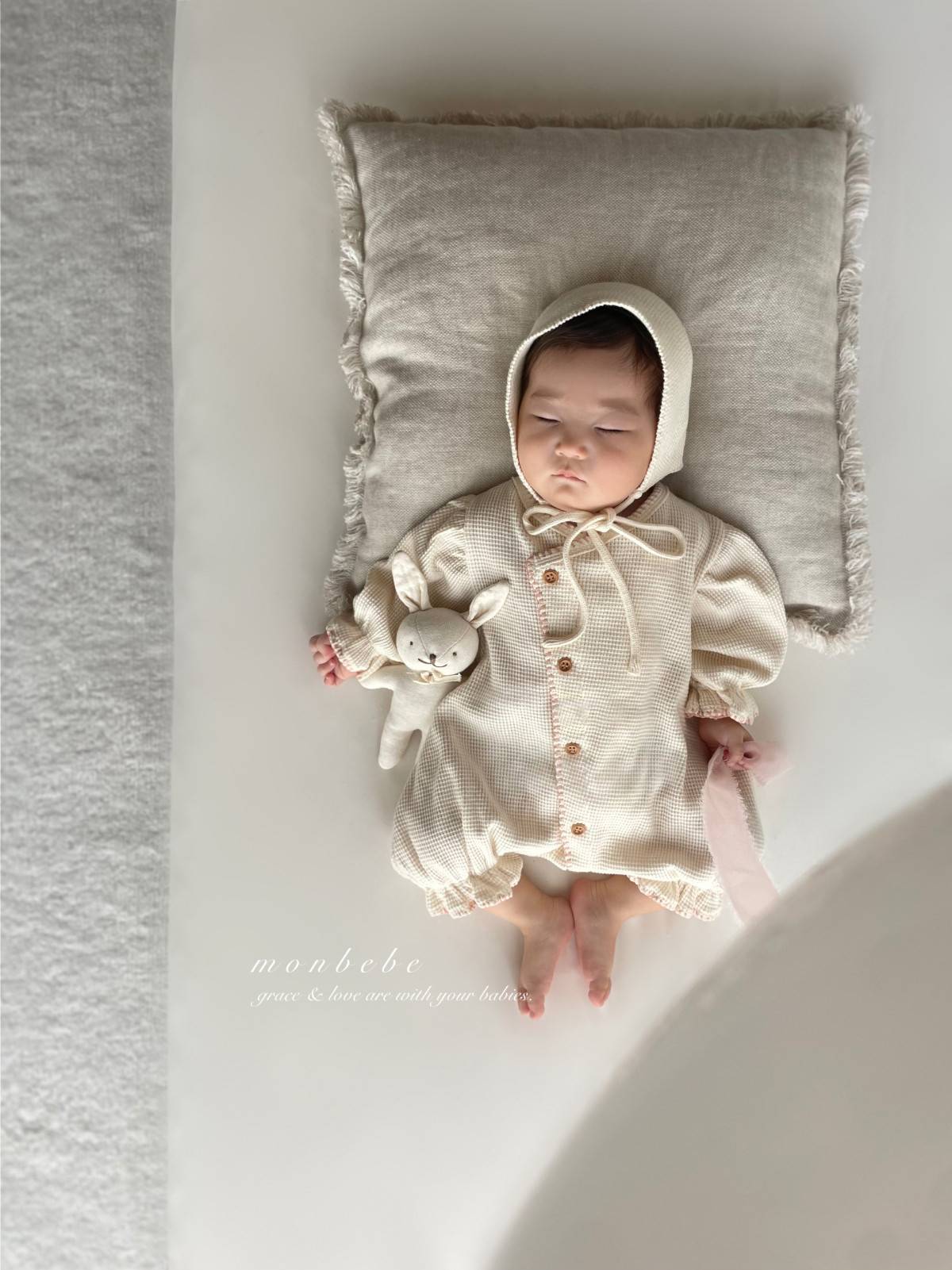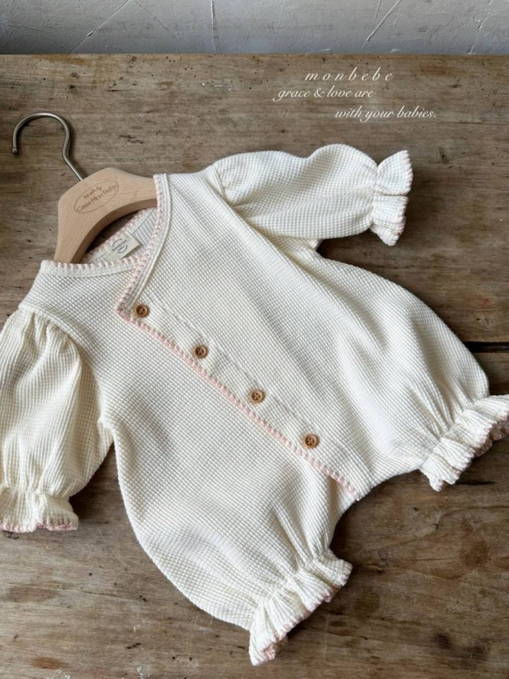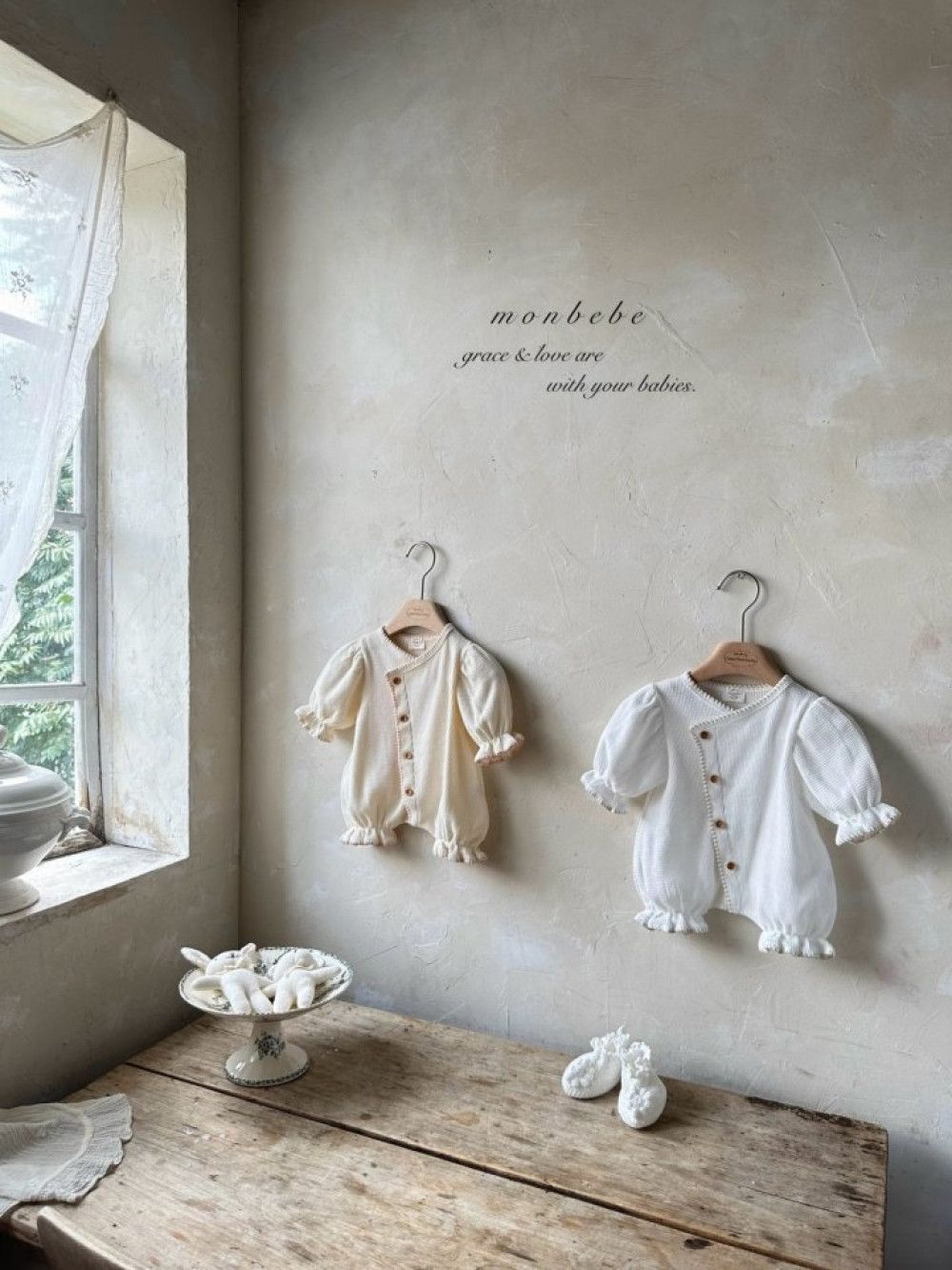 泡泡袖花邊鈕釦連身衣,蘿菈衣櫥|韓國童裝