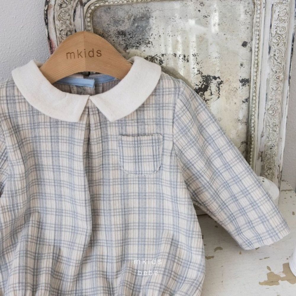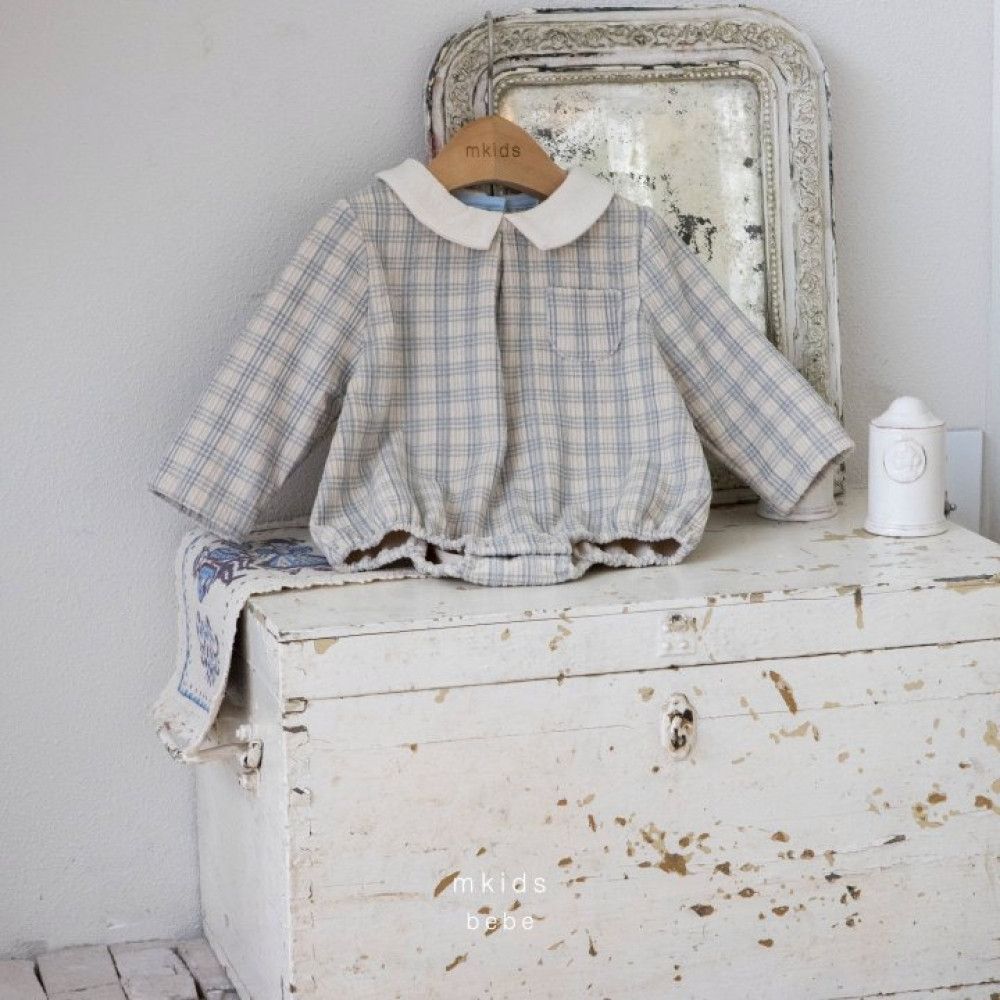 經典小格紋娃娃領包屁衣,蘿菈衣櫥|韓國童裝