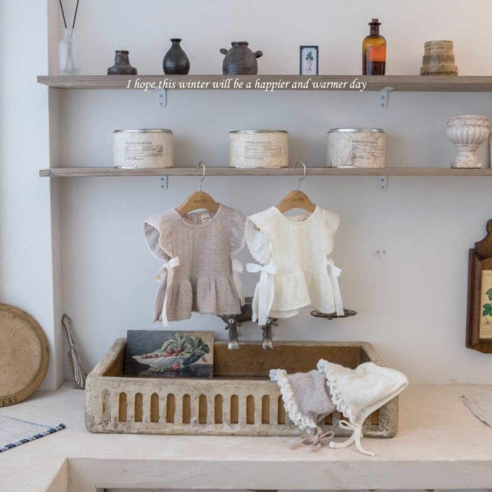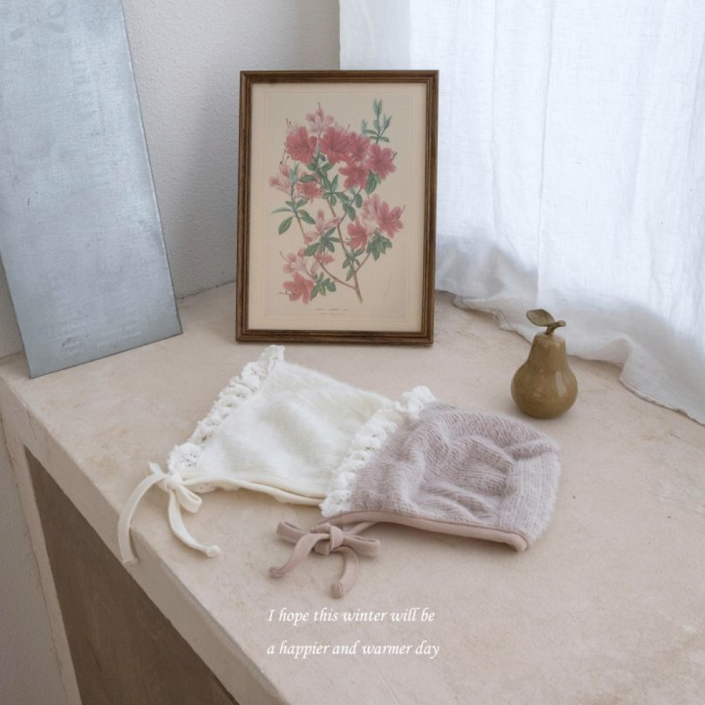 針織小花邊綁帶軟帽,蘿菈衣櫥|韓國童裝