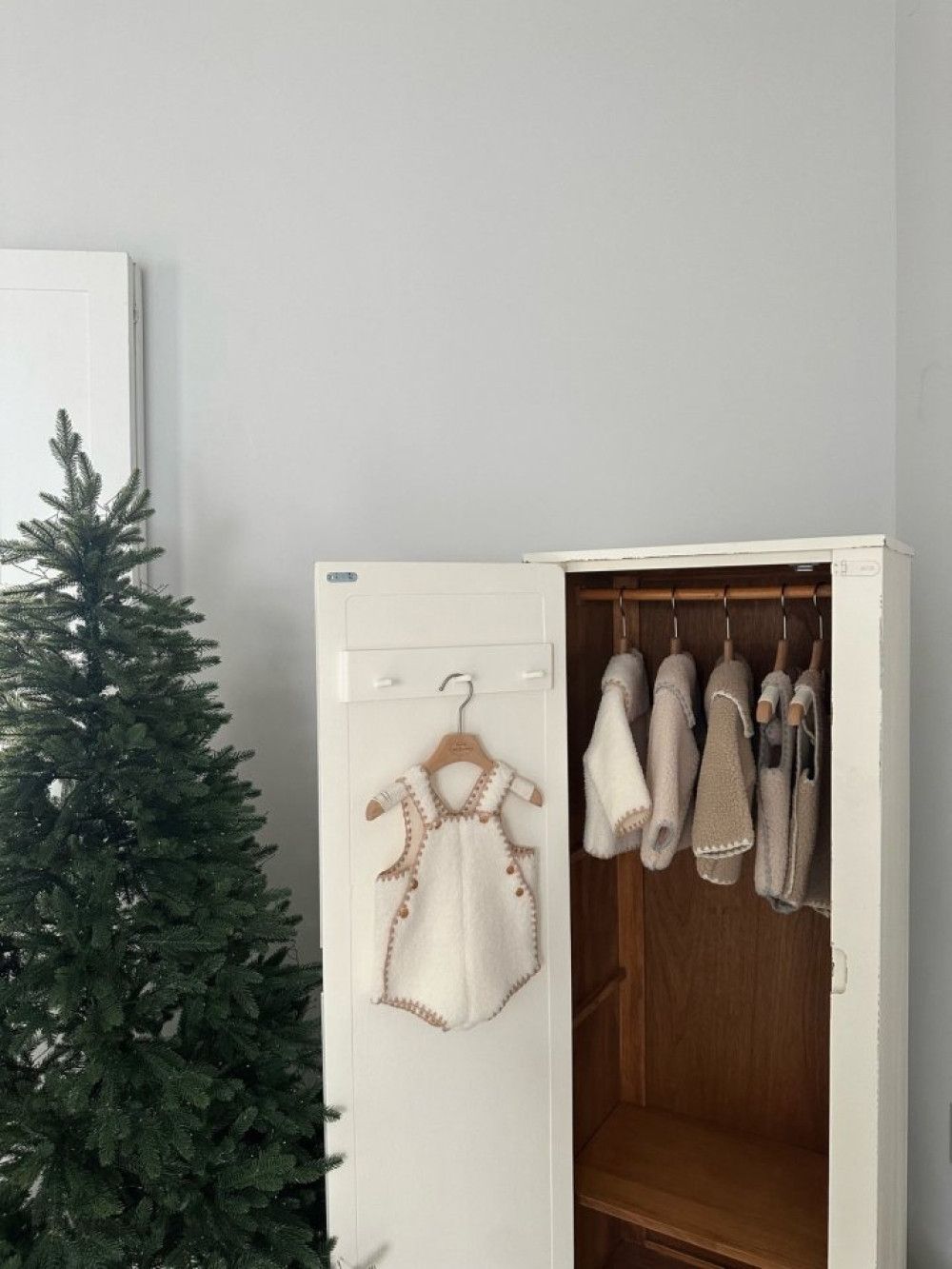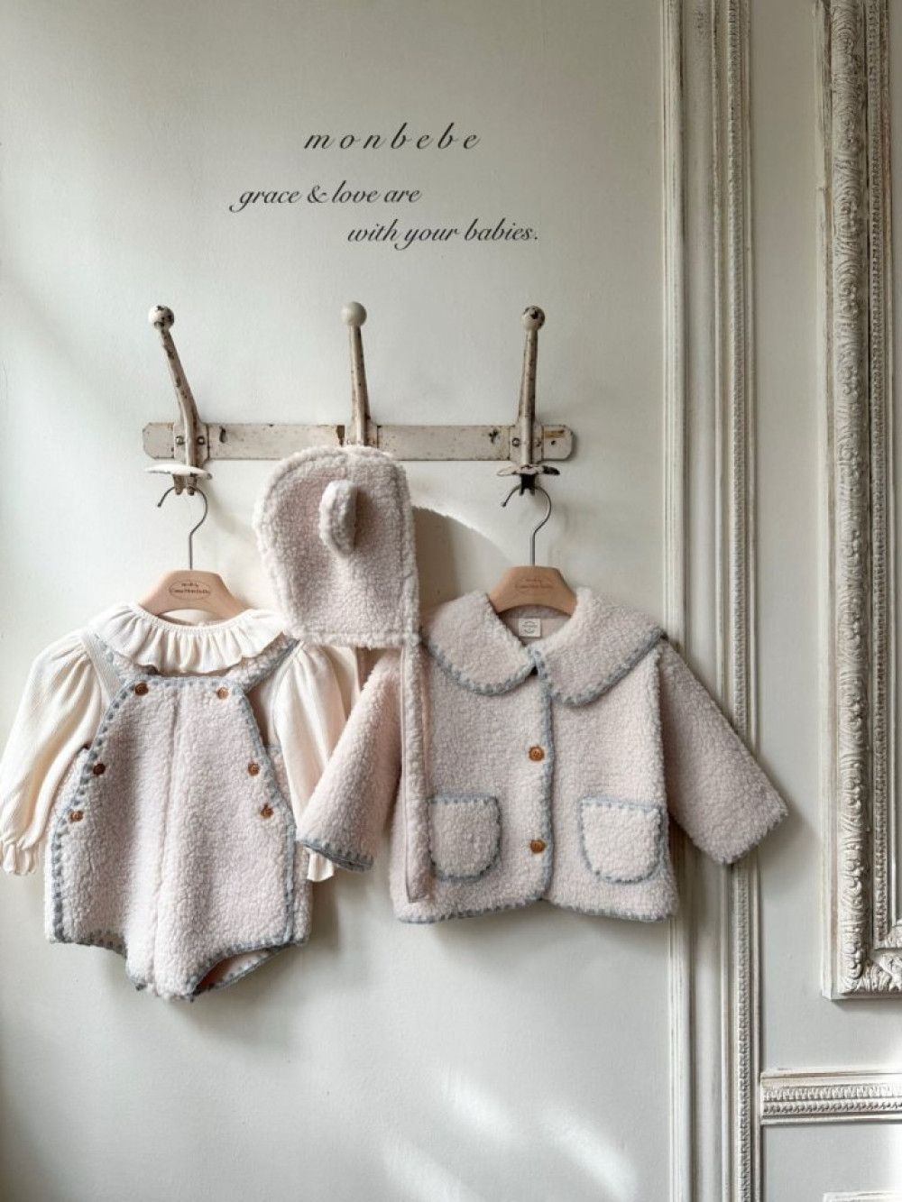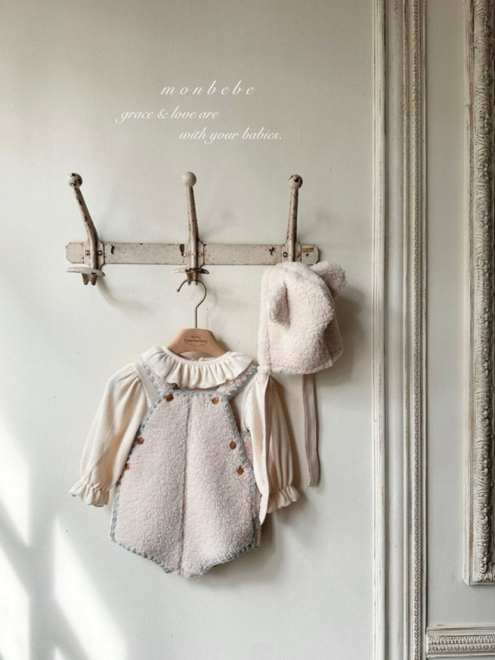 小熊系縫線邊絨毛吊帶連身衣,蘿菈衣櫥|韓國童裝