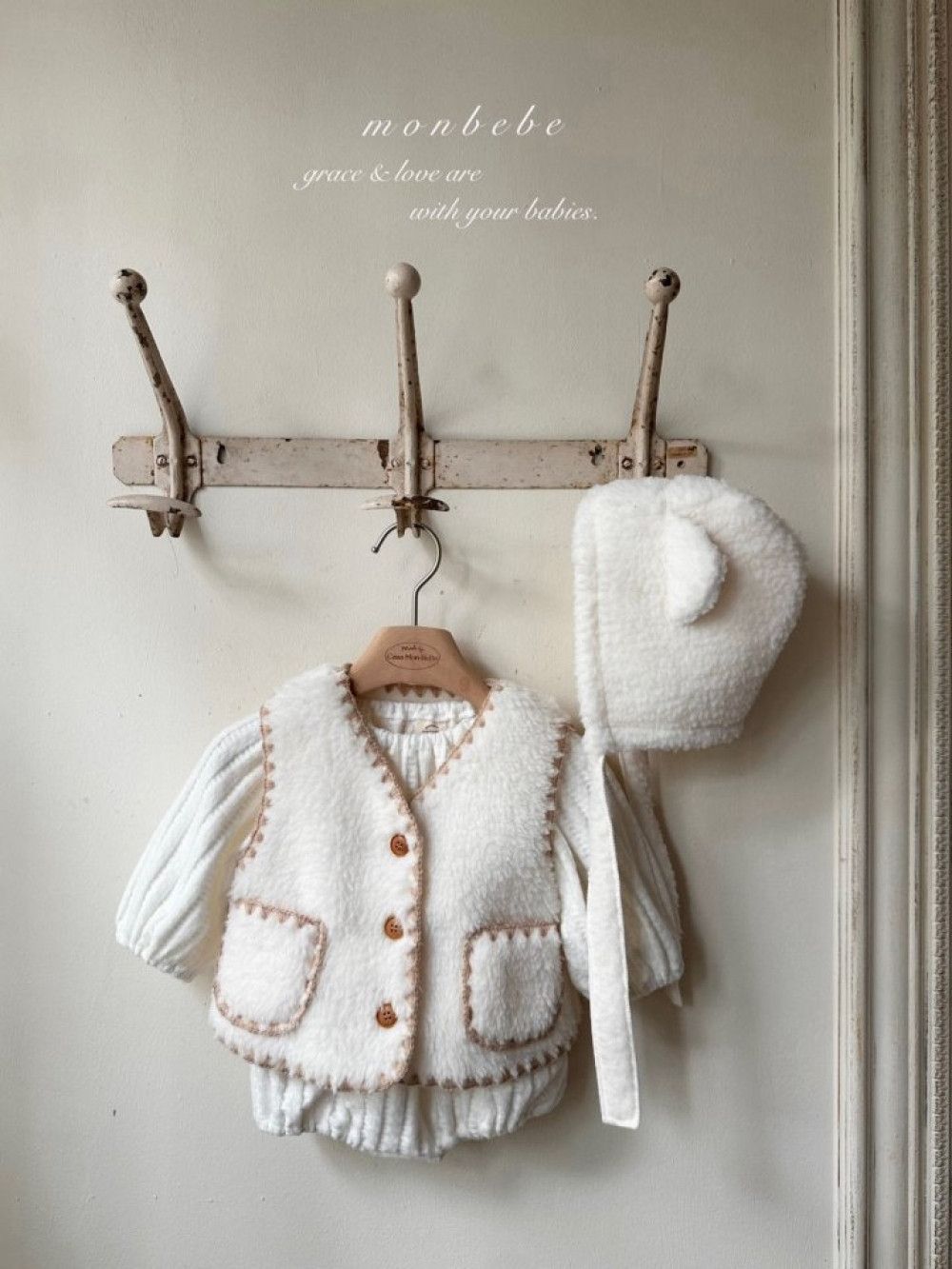 小熊系絨毛綁繩帽,蘿菈衣櫥|韓國童裝