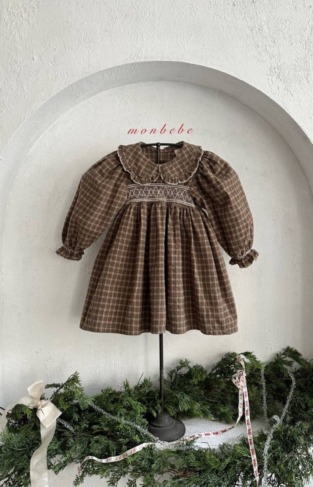小童款 打褶繡花格紋洋裝 姊妹裝,蘿菈衣櫥|韓國童裝
