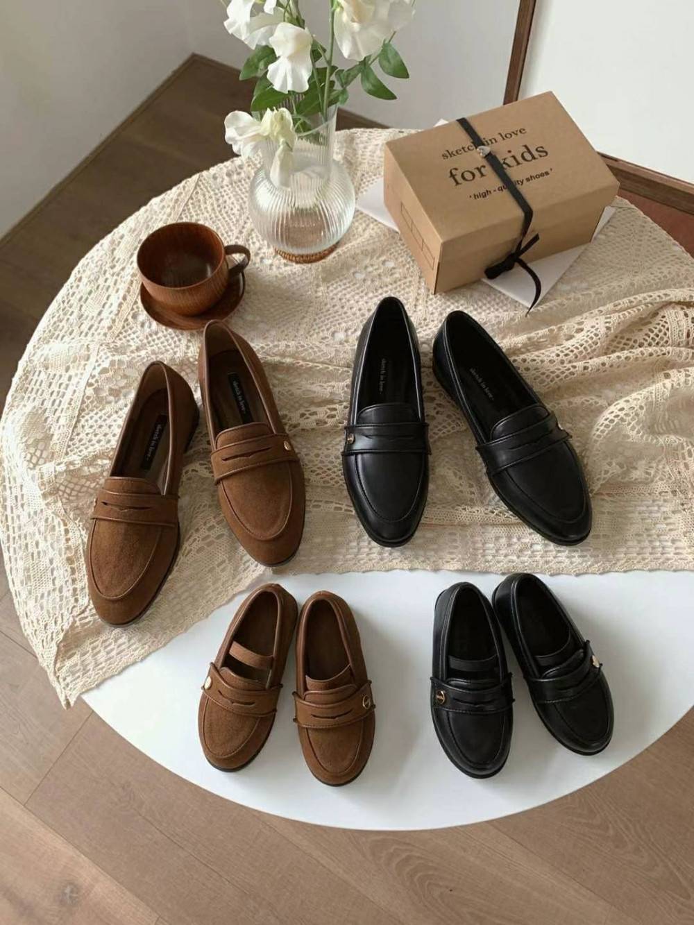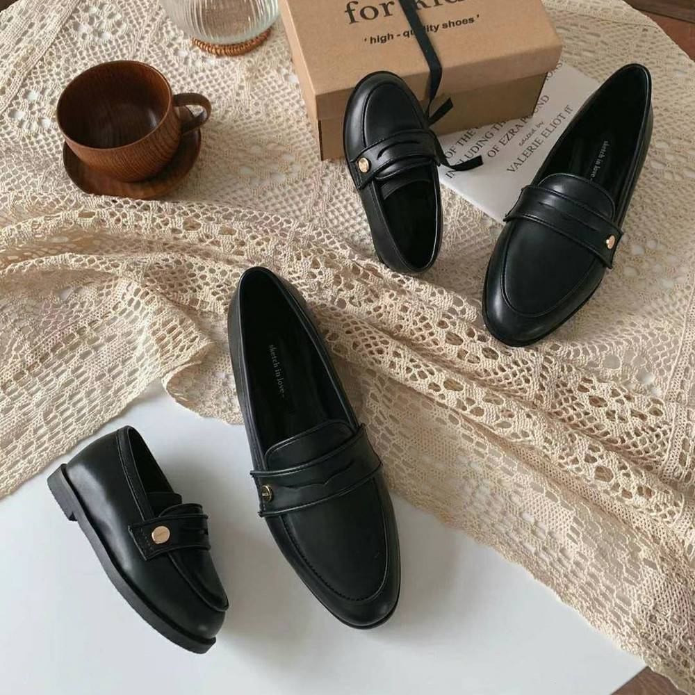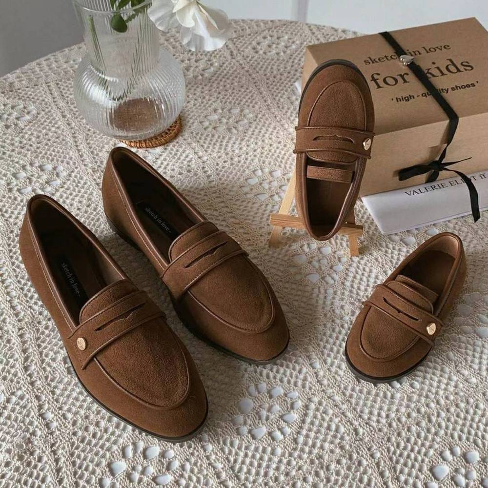 韓國親子鞋 熱門款牛皮金扣樂福鞋