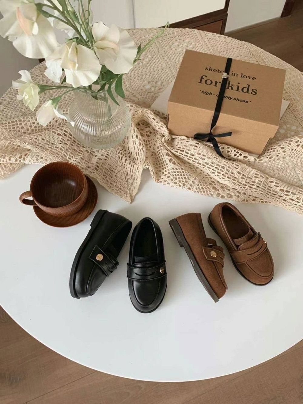 韓國親子鞋 熱門款牛皮金扣樂福鞋,蘿菈衣櫥|韓國童裝