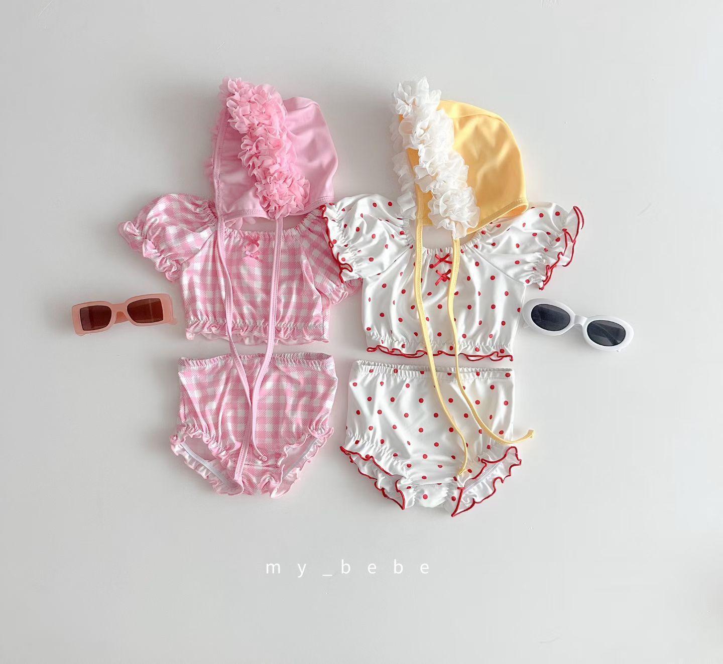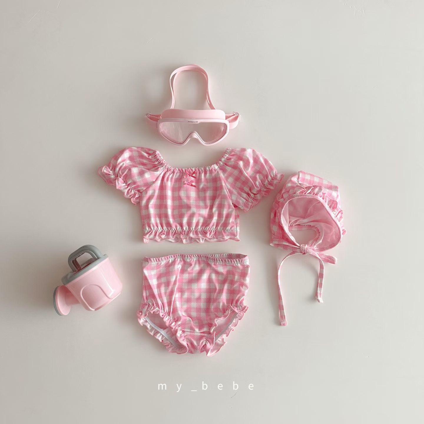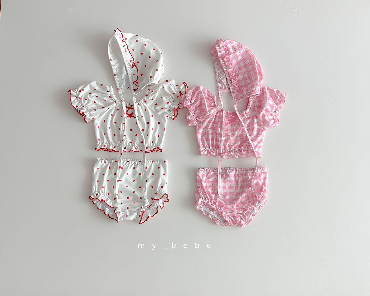 甜美兩截式蓬蓬袖可愛游泳服(附帽),蘿菈衣櫥|韓國童裝