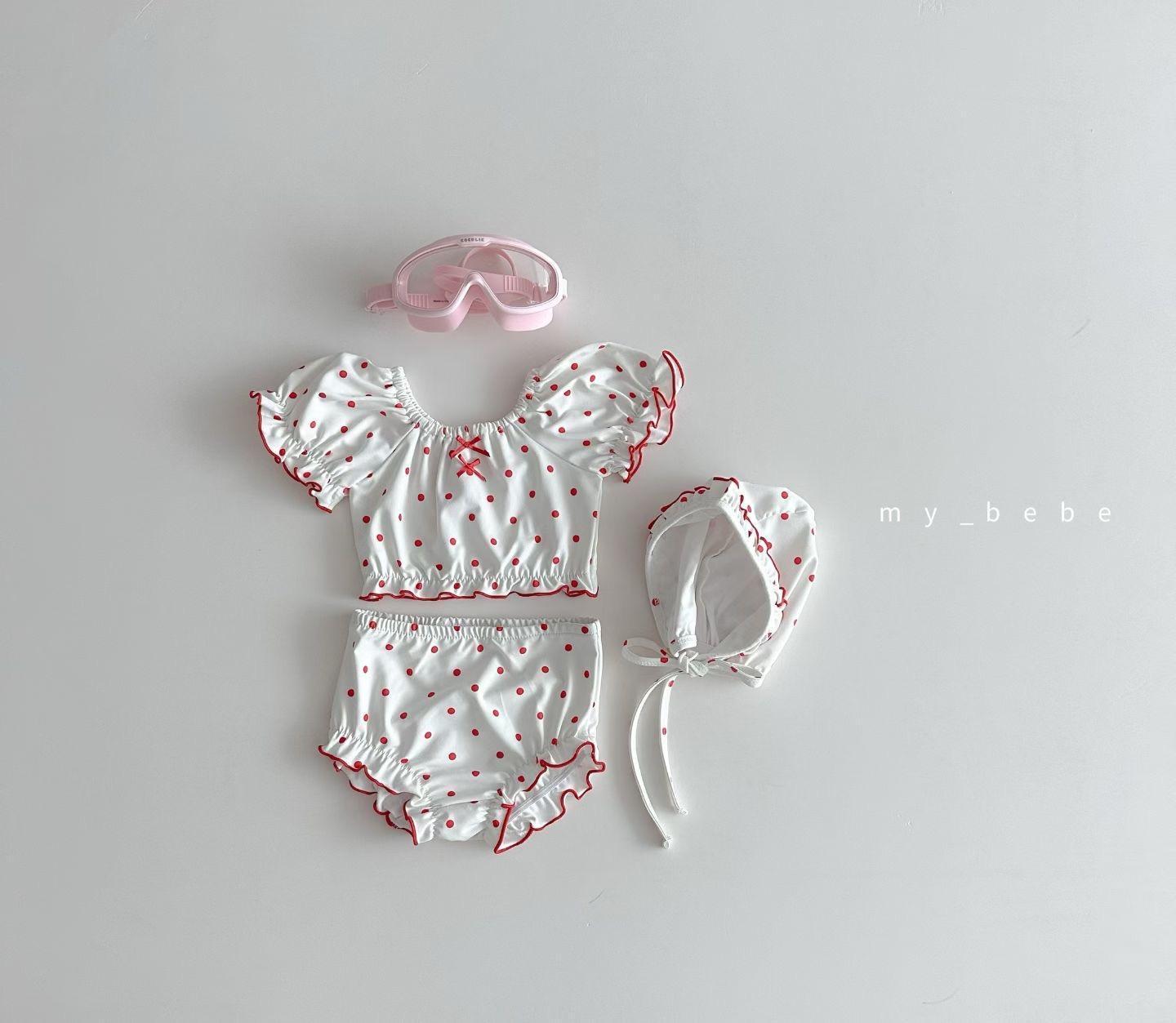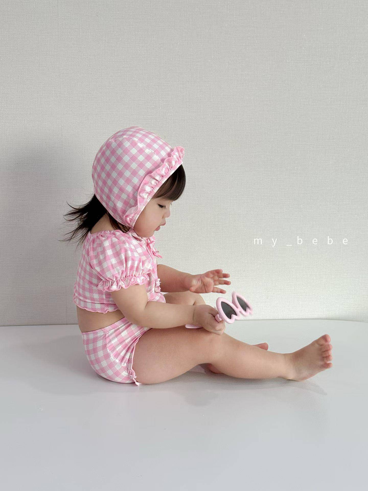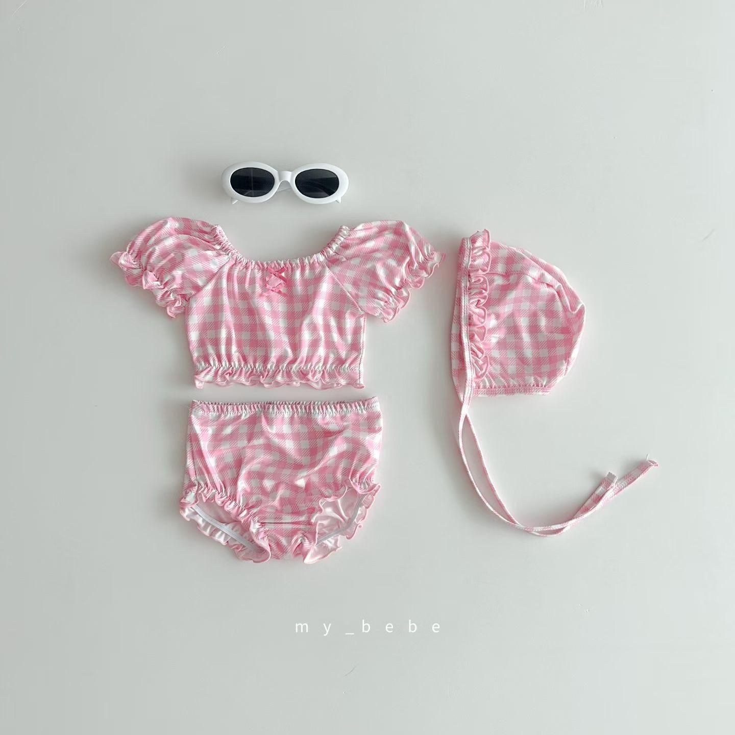 甜美兩截式蓬蓬袖可愛游泳服(附帽),蘿菈衣櫥|韓國童裝