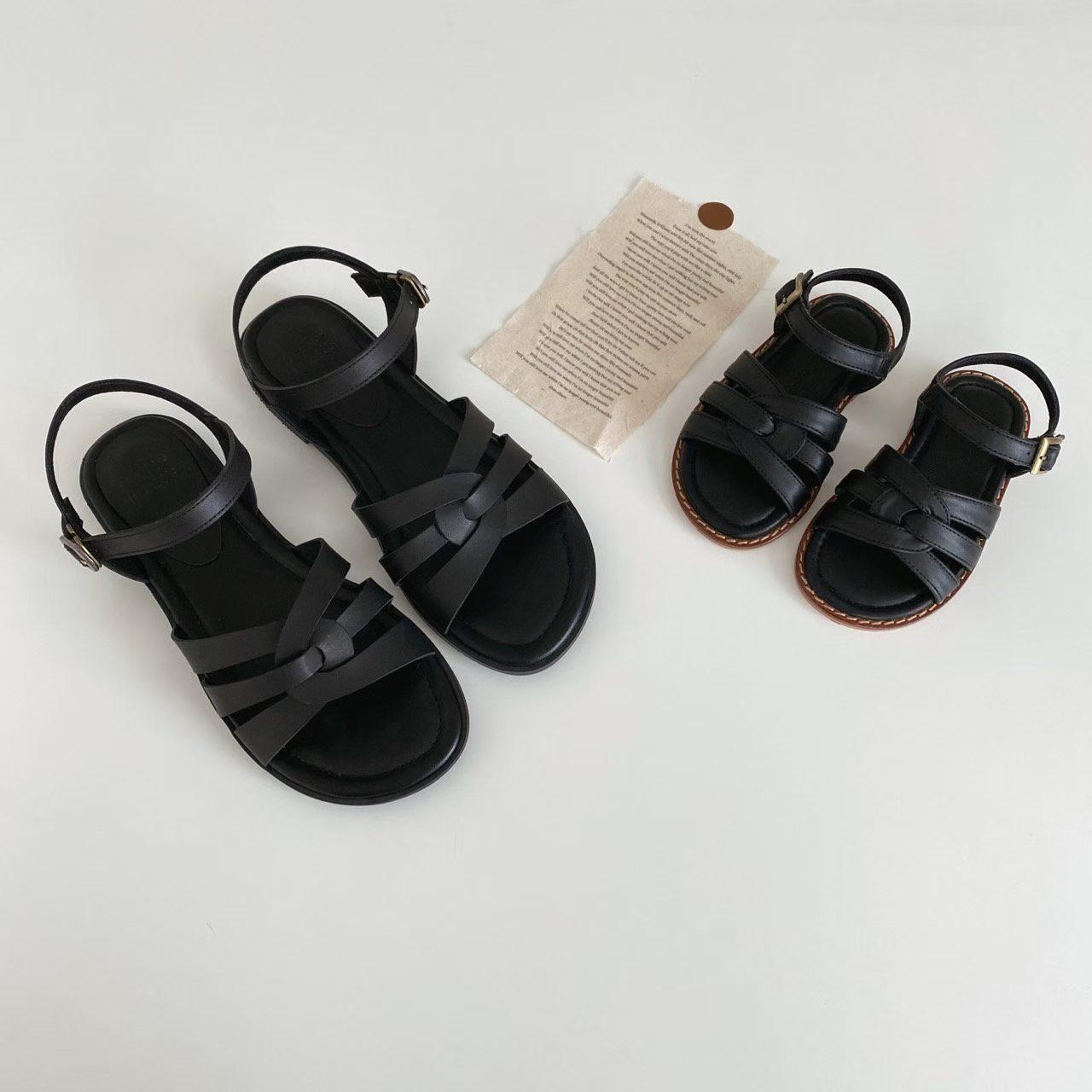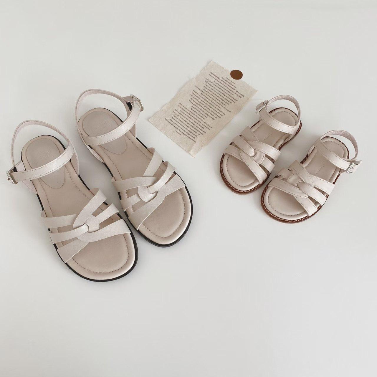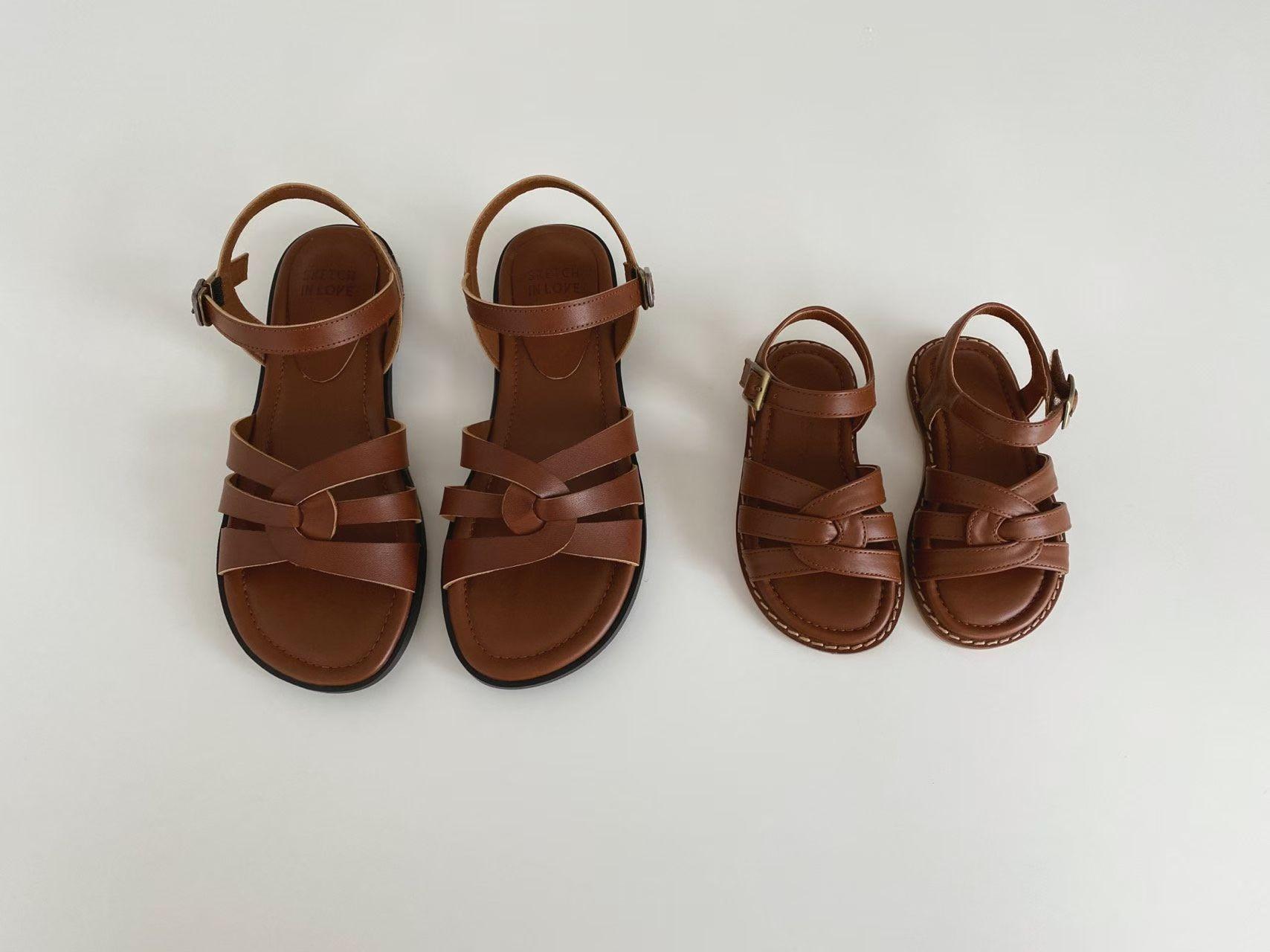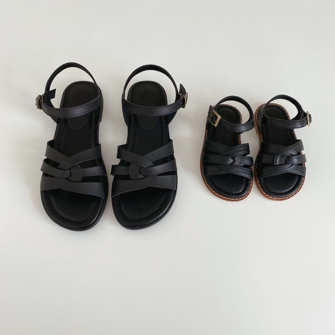 親子系列 交叉編織真皮質感涼鞋