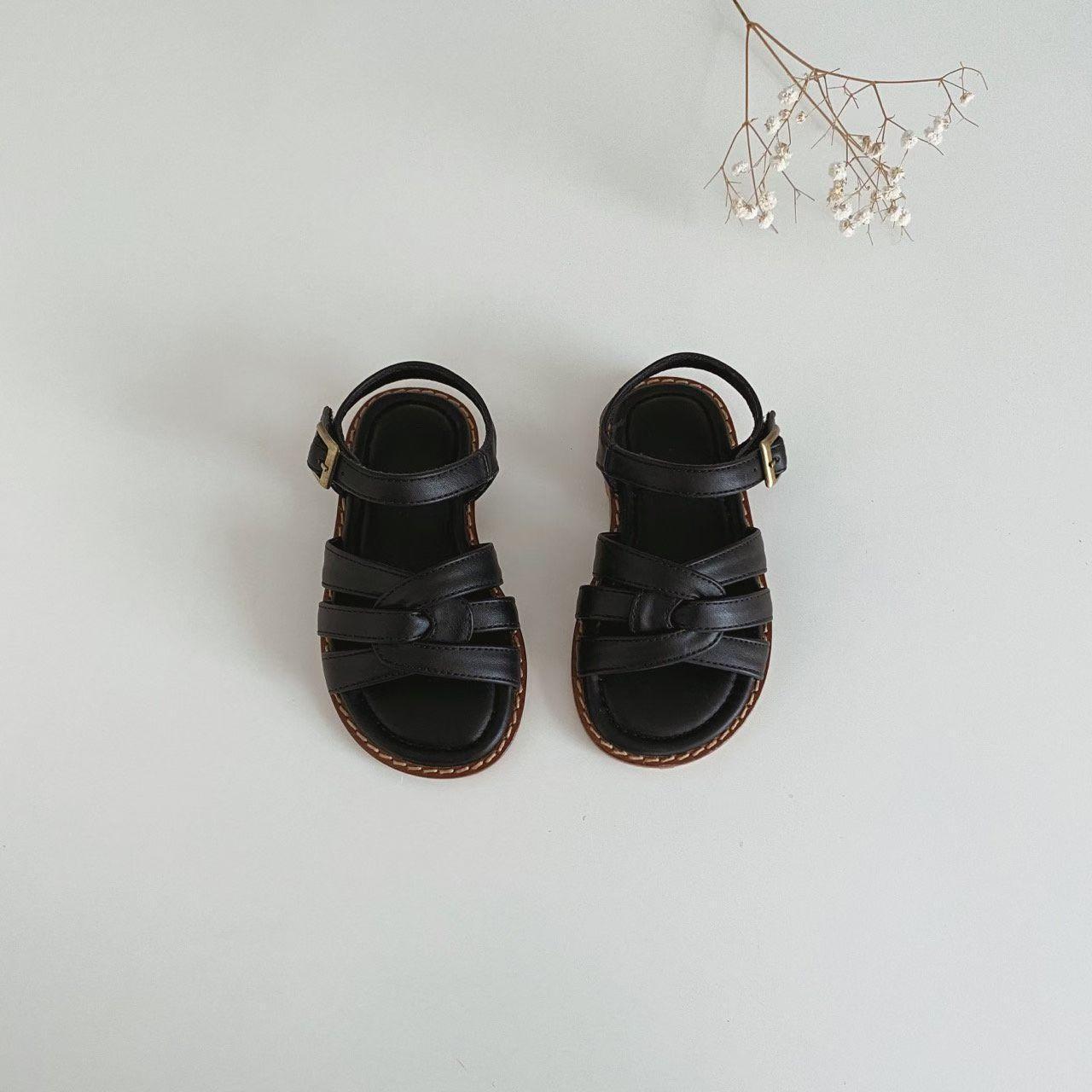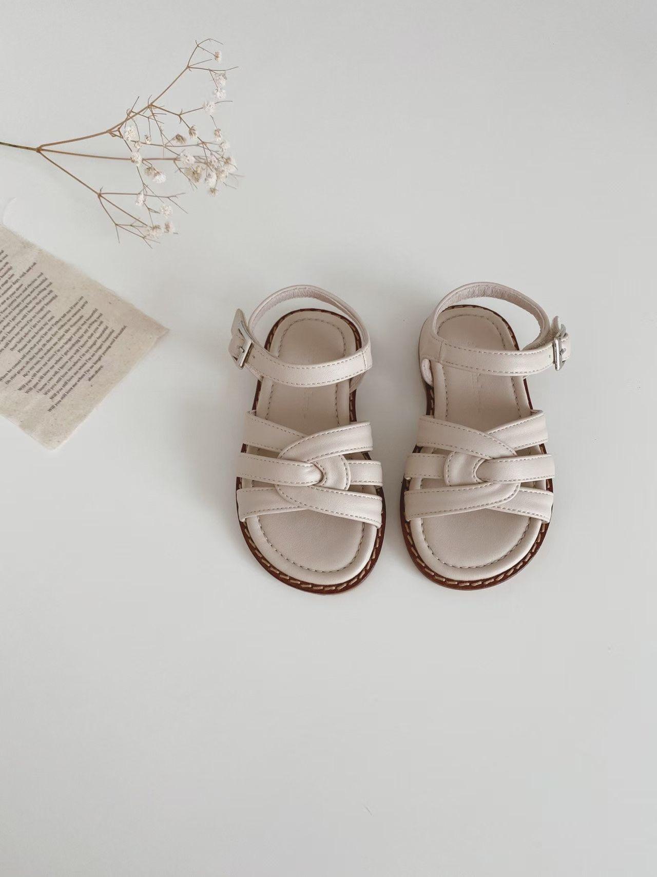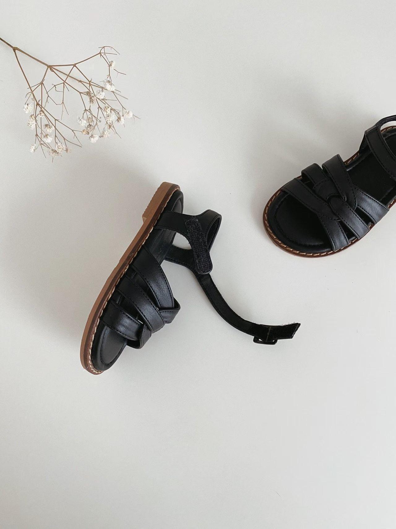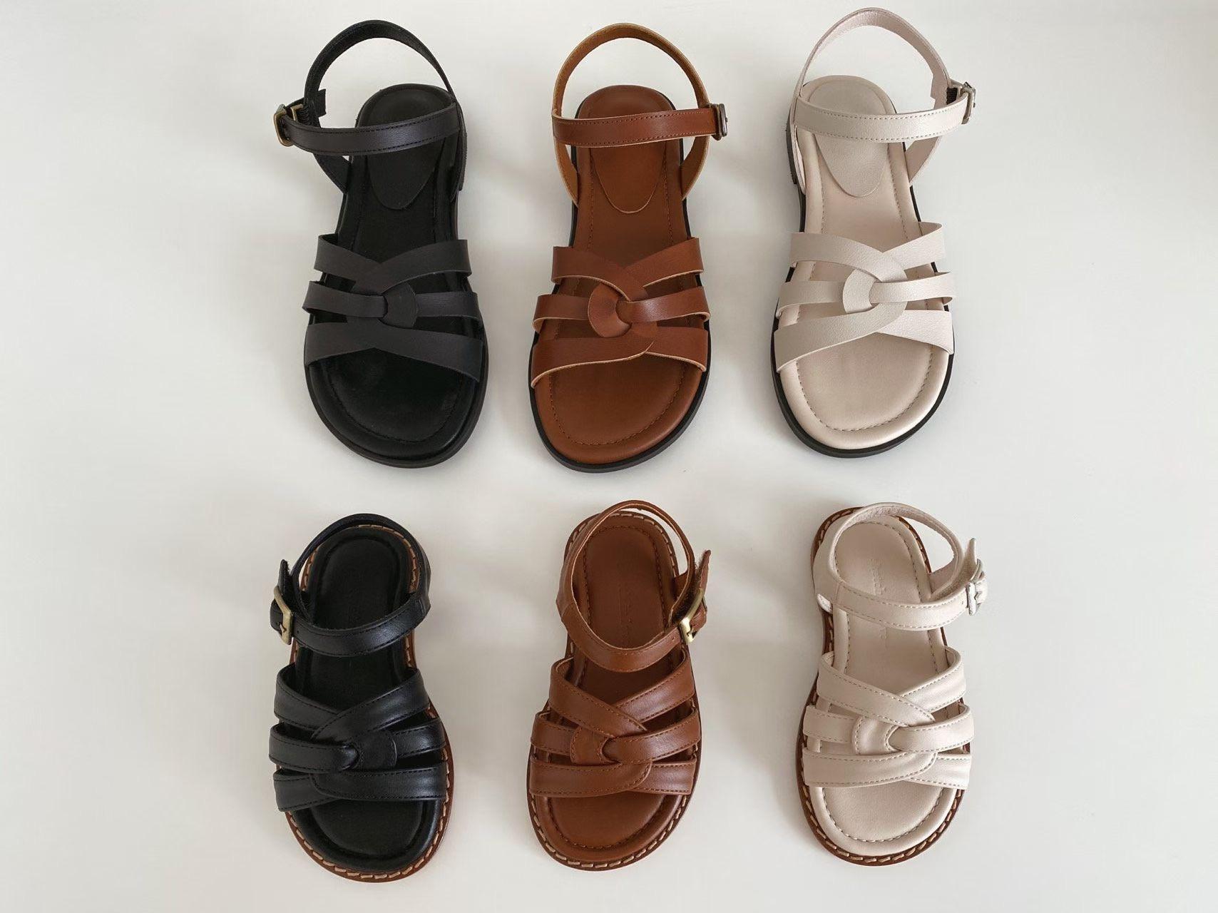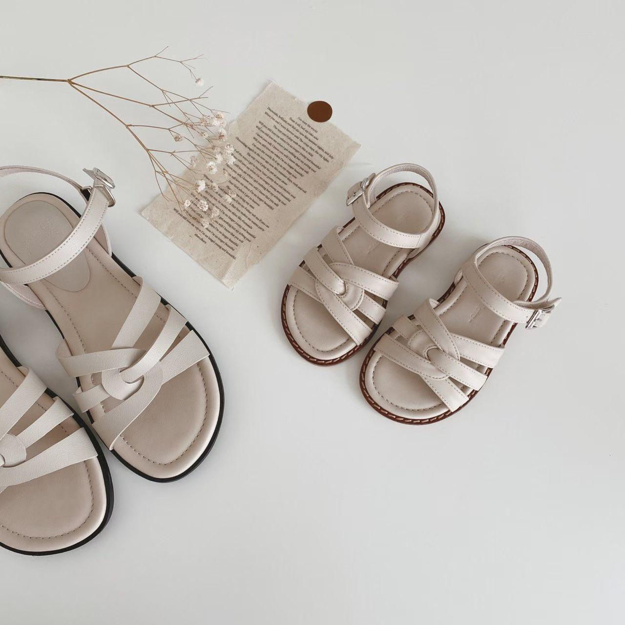 親子系列 交叉編織真皮質感涼鞋