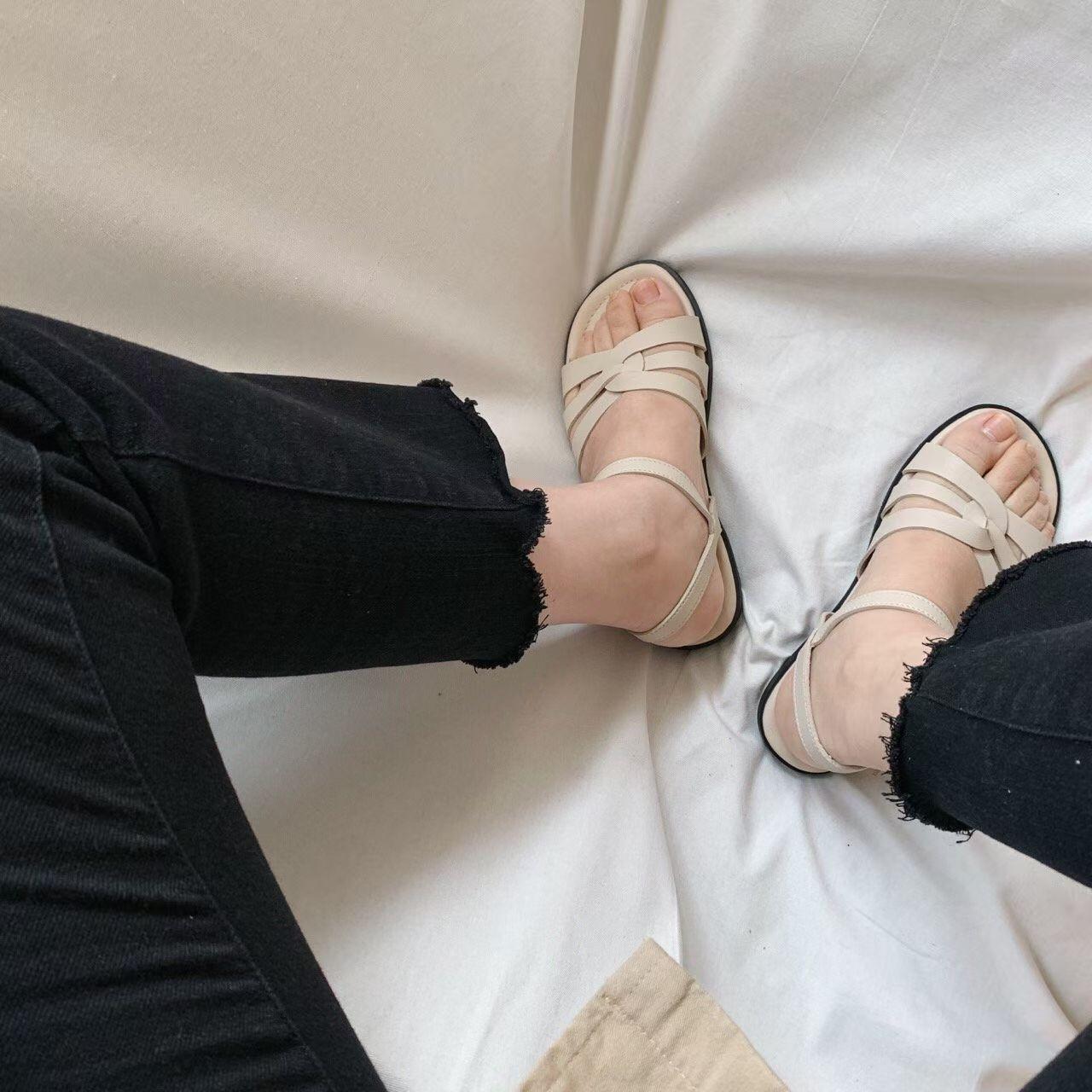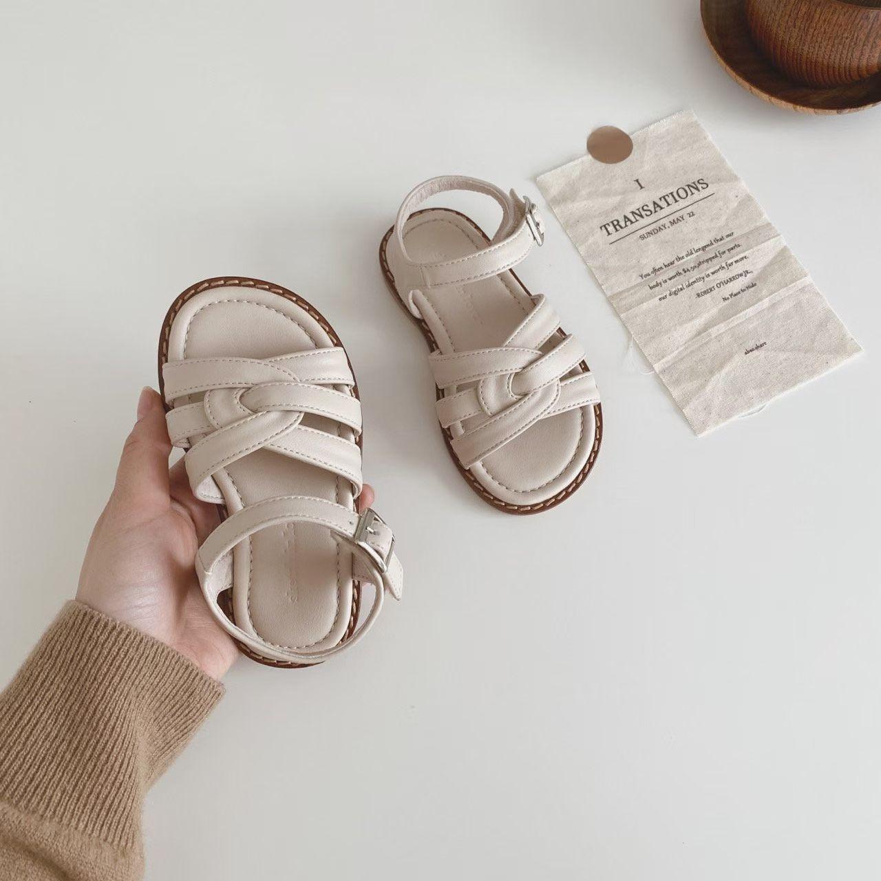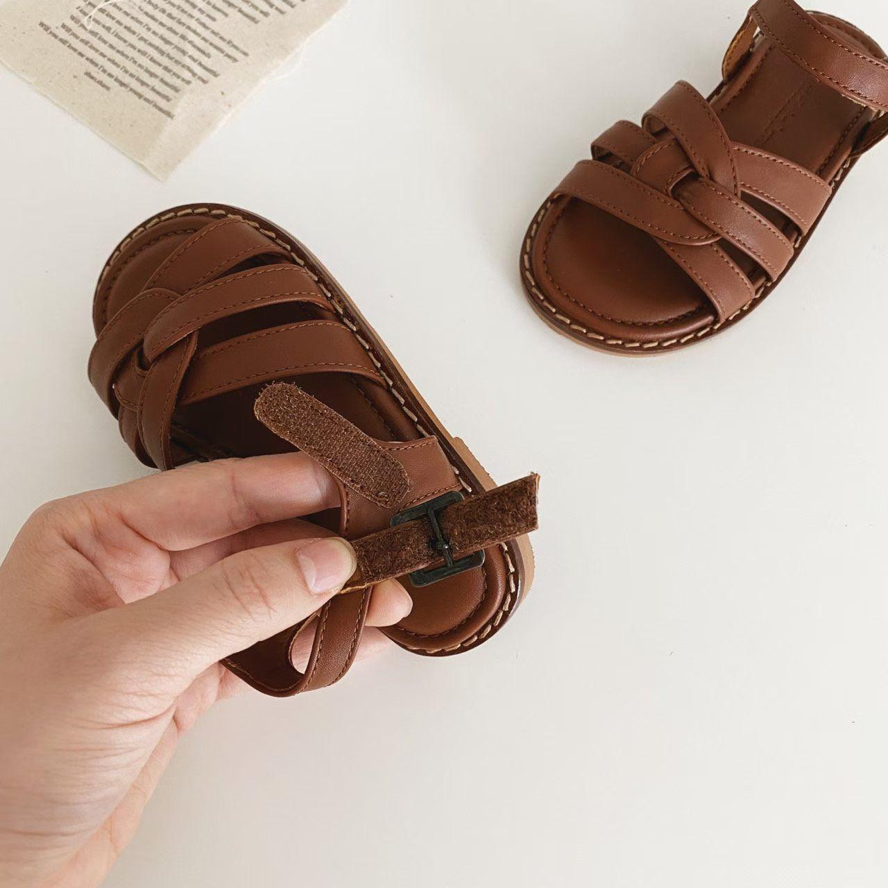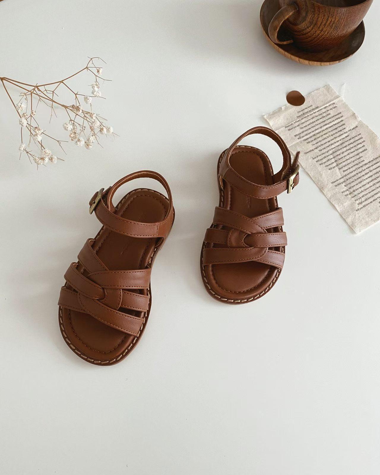 親子系列 交叉編織真皮質感涼鞋