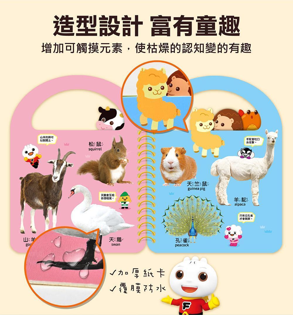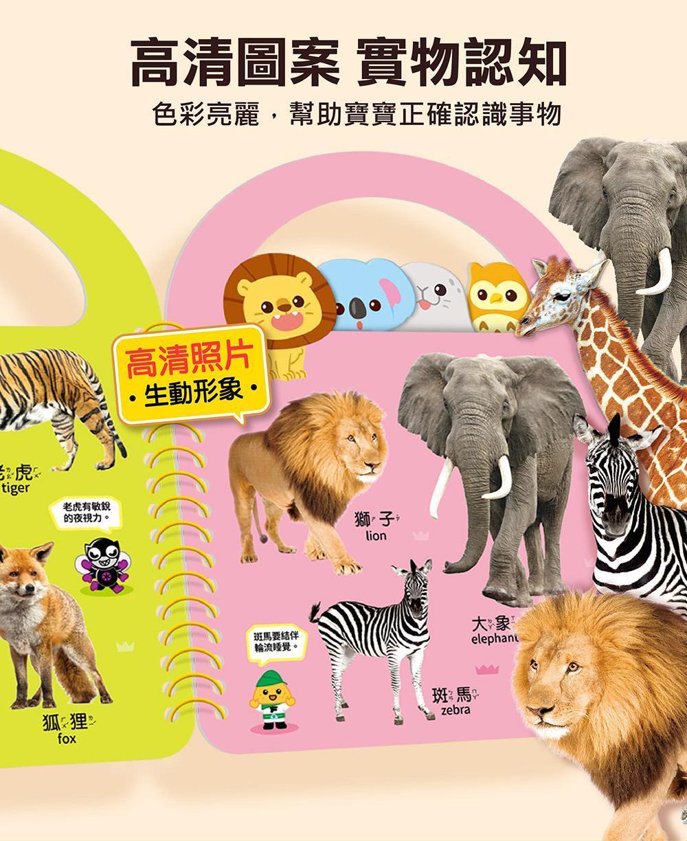 讓孩子輕鬆認識生活中會接觸到的物品、動物、食物、基礎語詞。