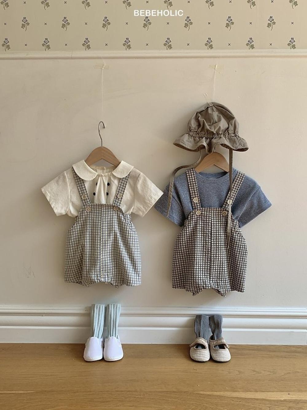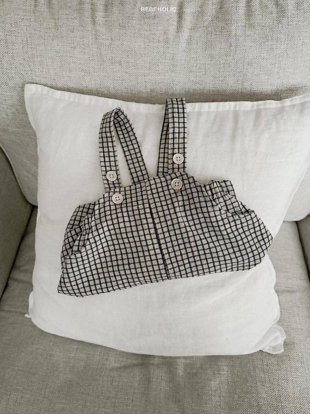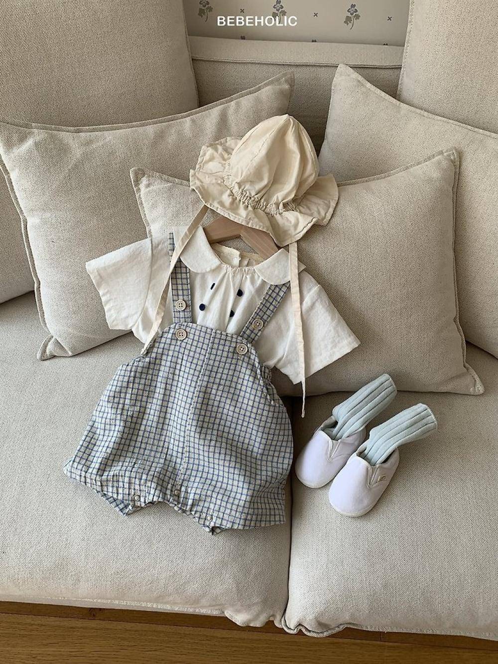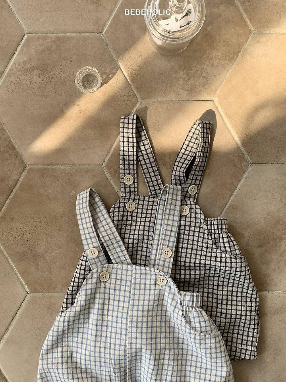 格紋寶寶鈕扣吊帶褲