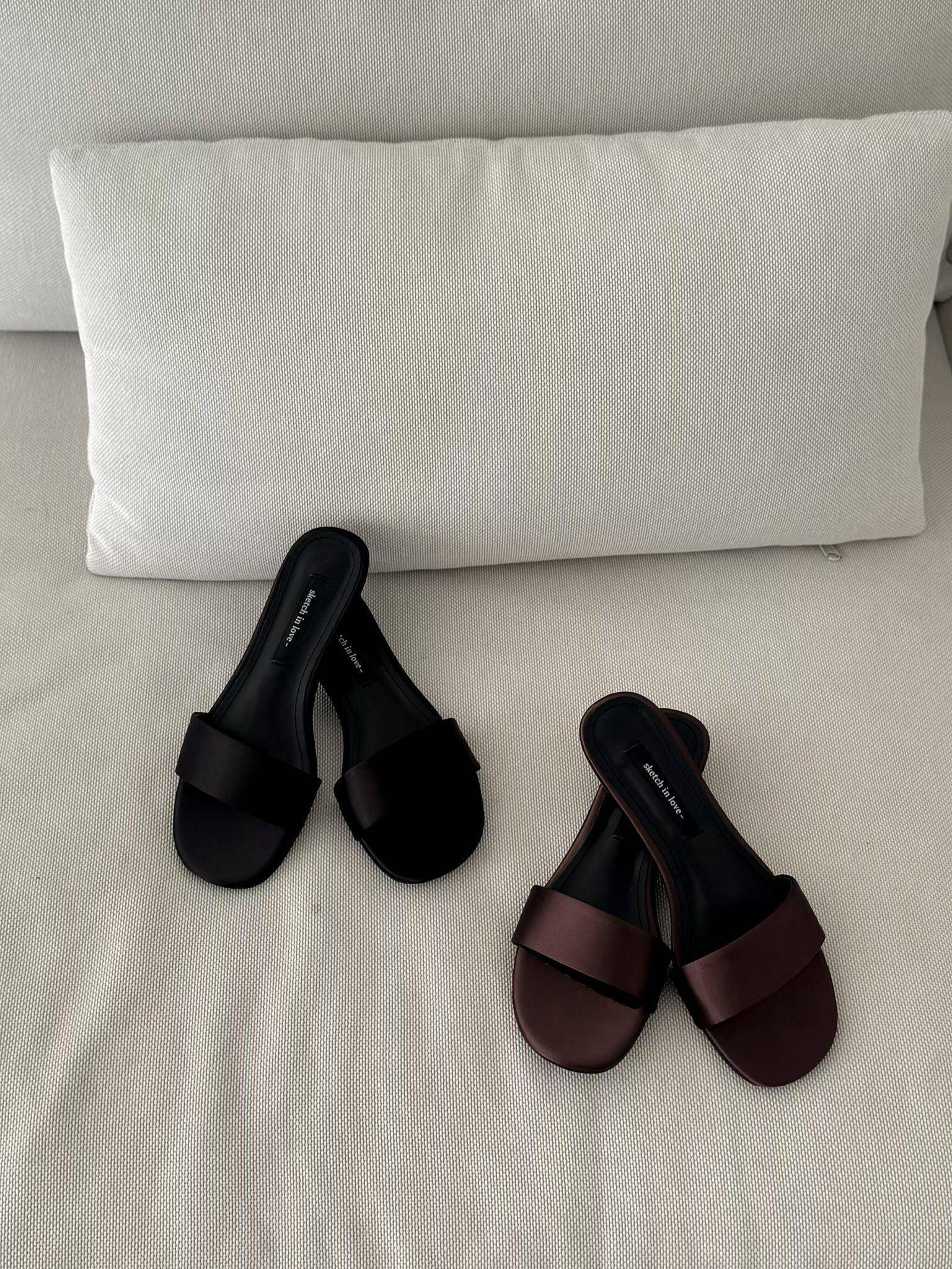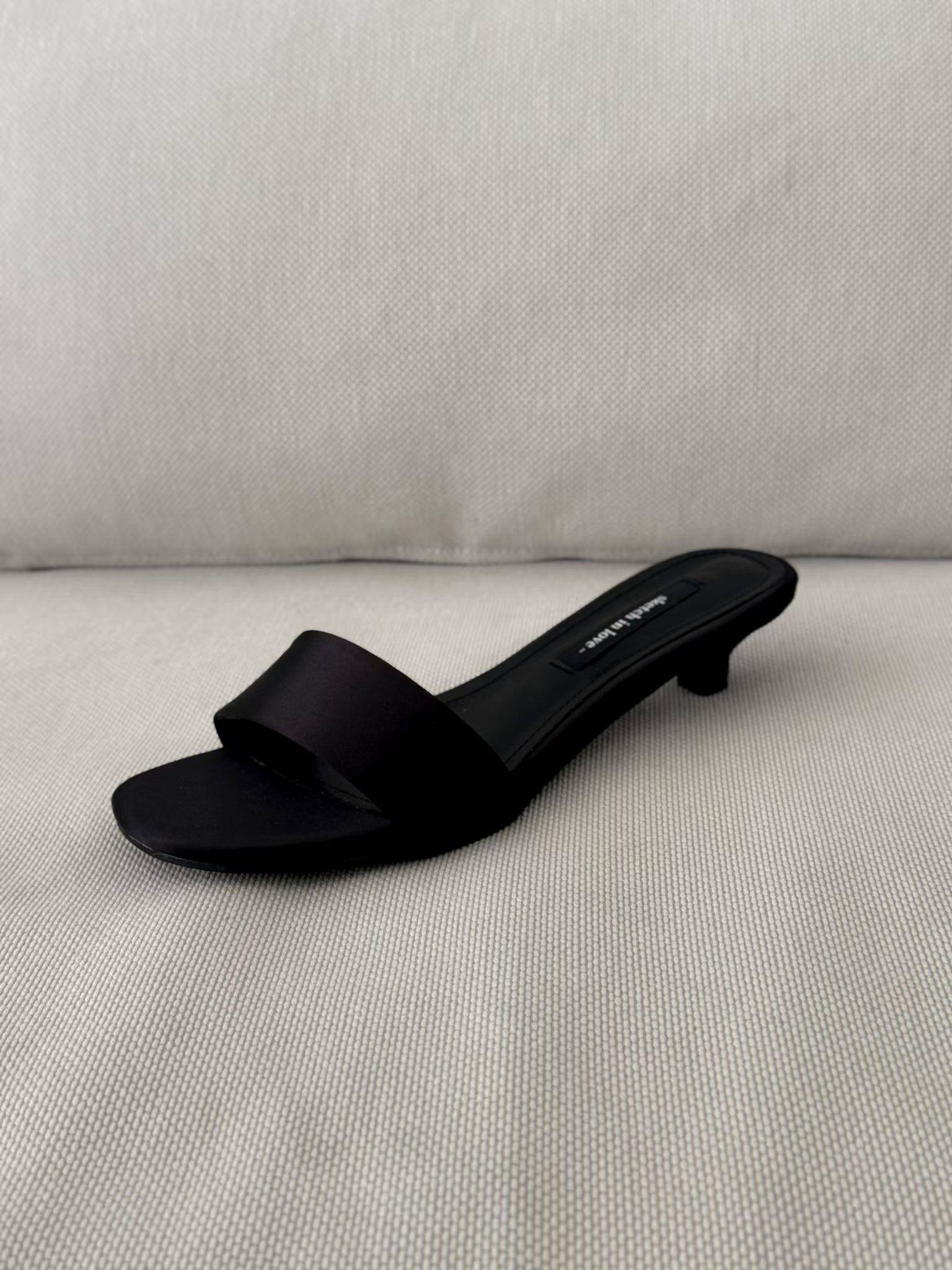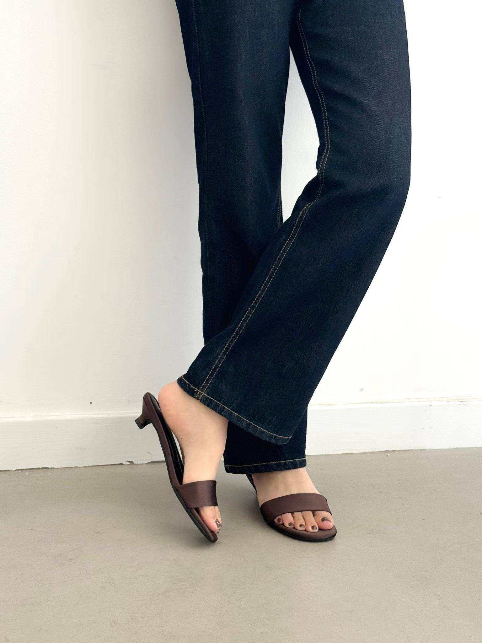 極簡緞面貓跟一字帶涼拖鞋