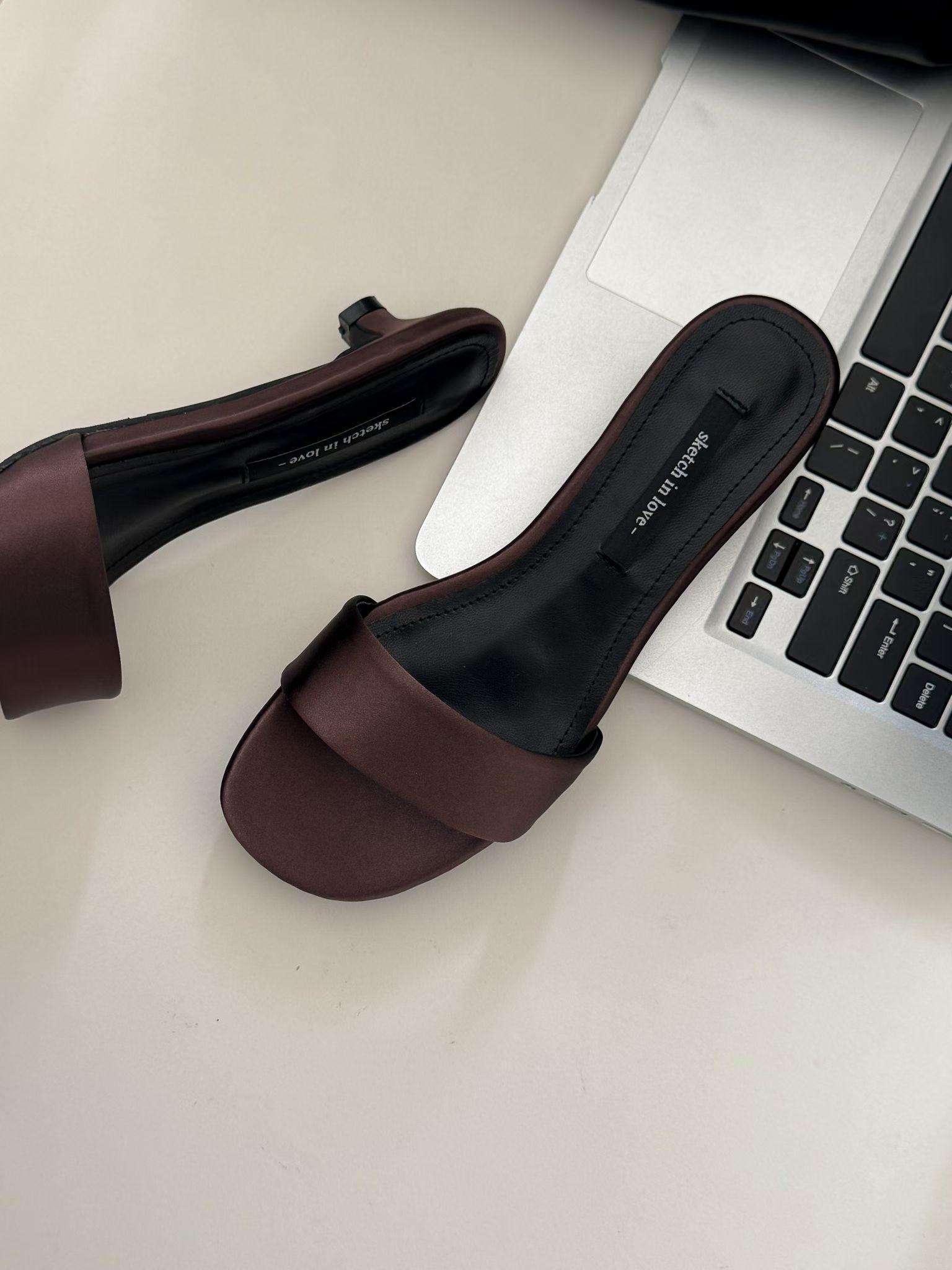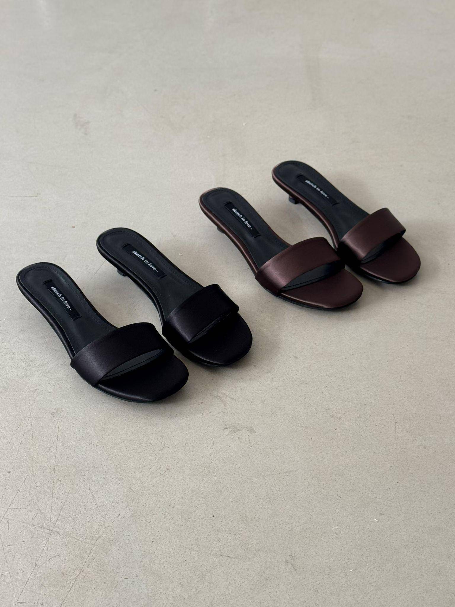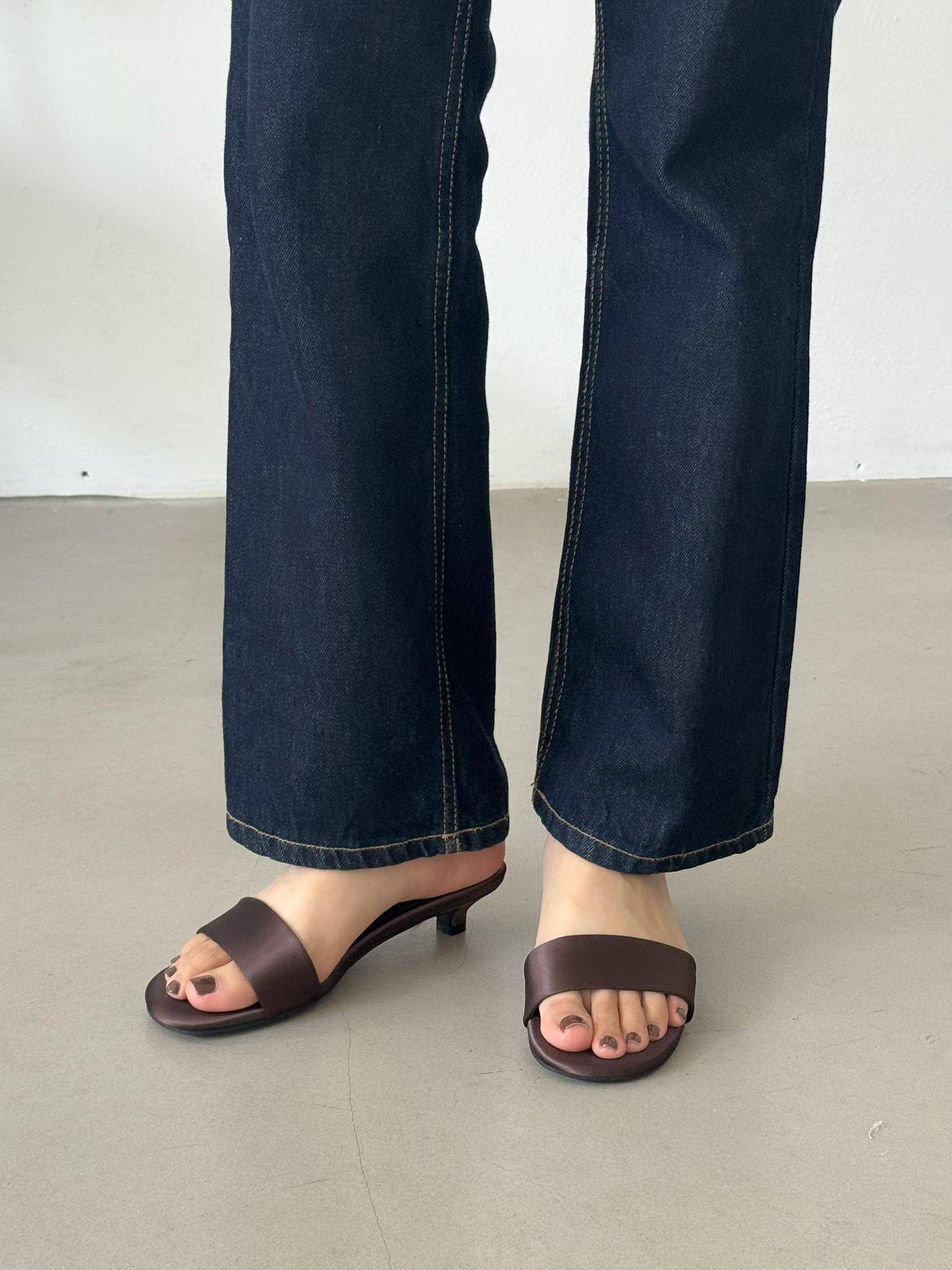 極簡緞面貓跟一字帶涼拖鞋