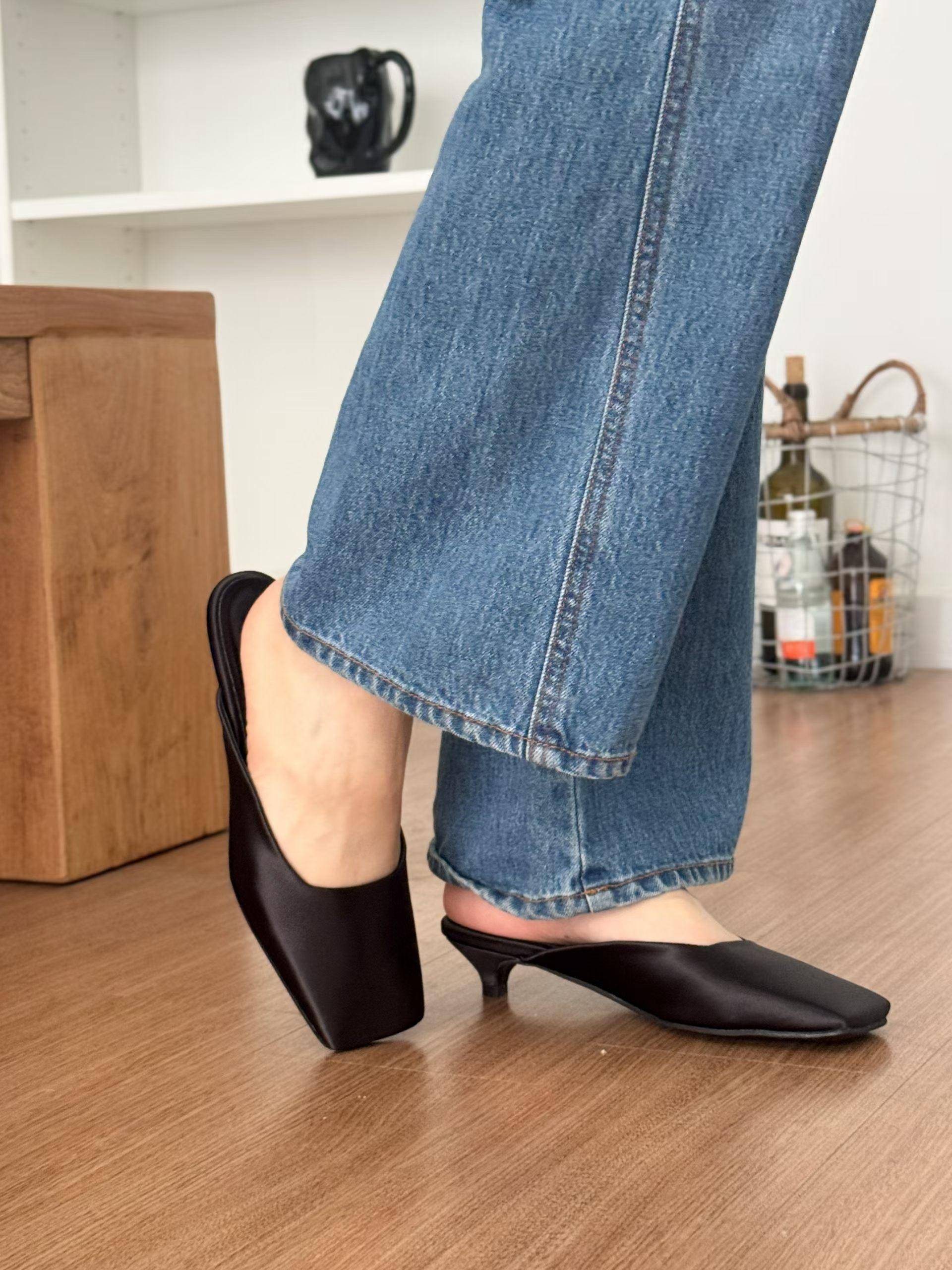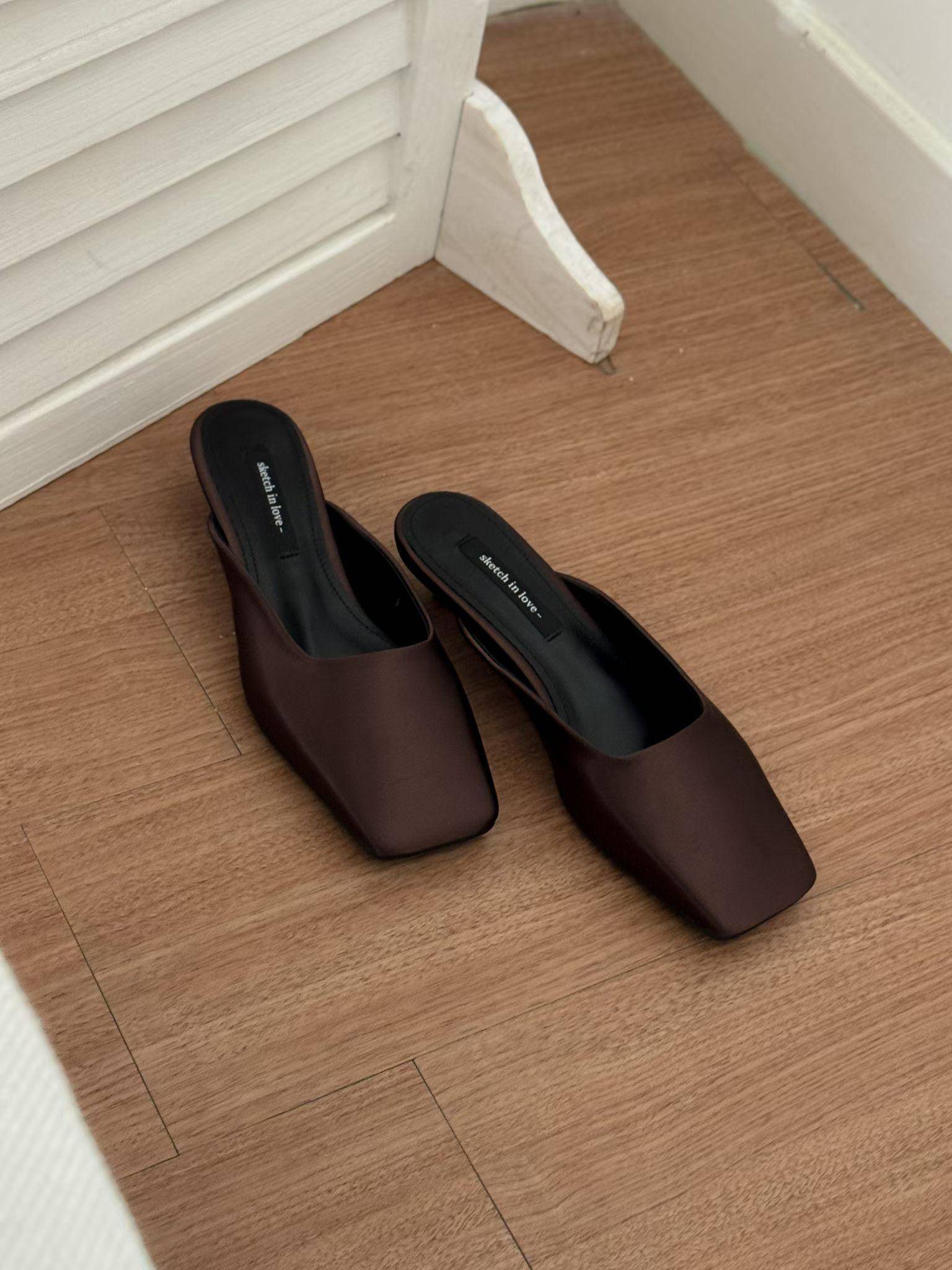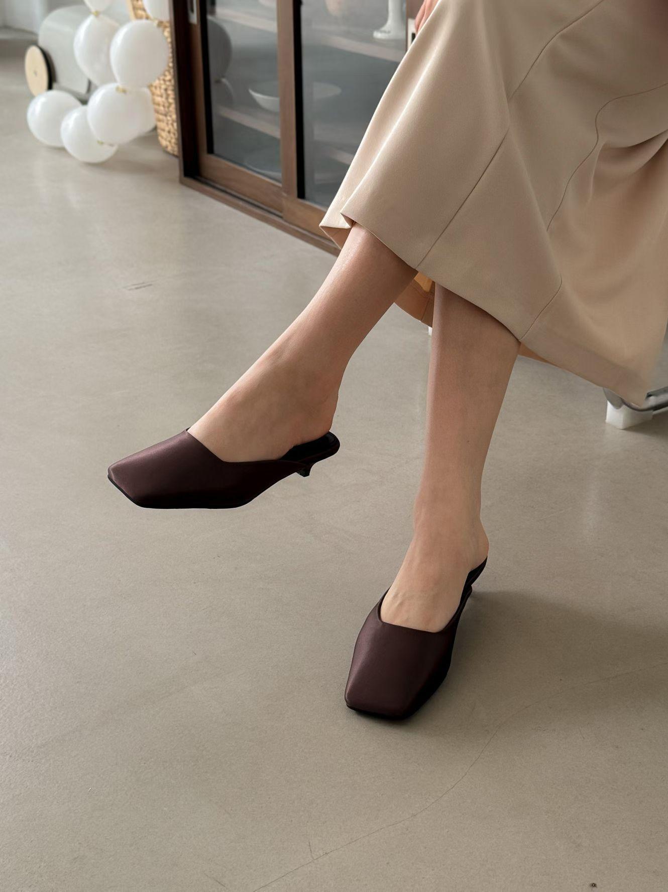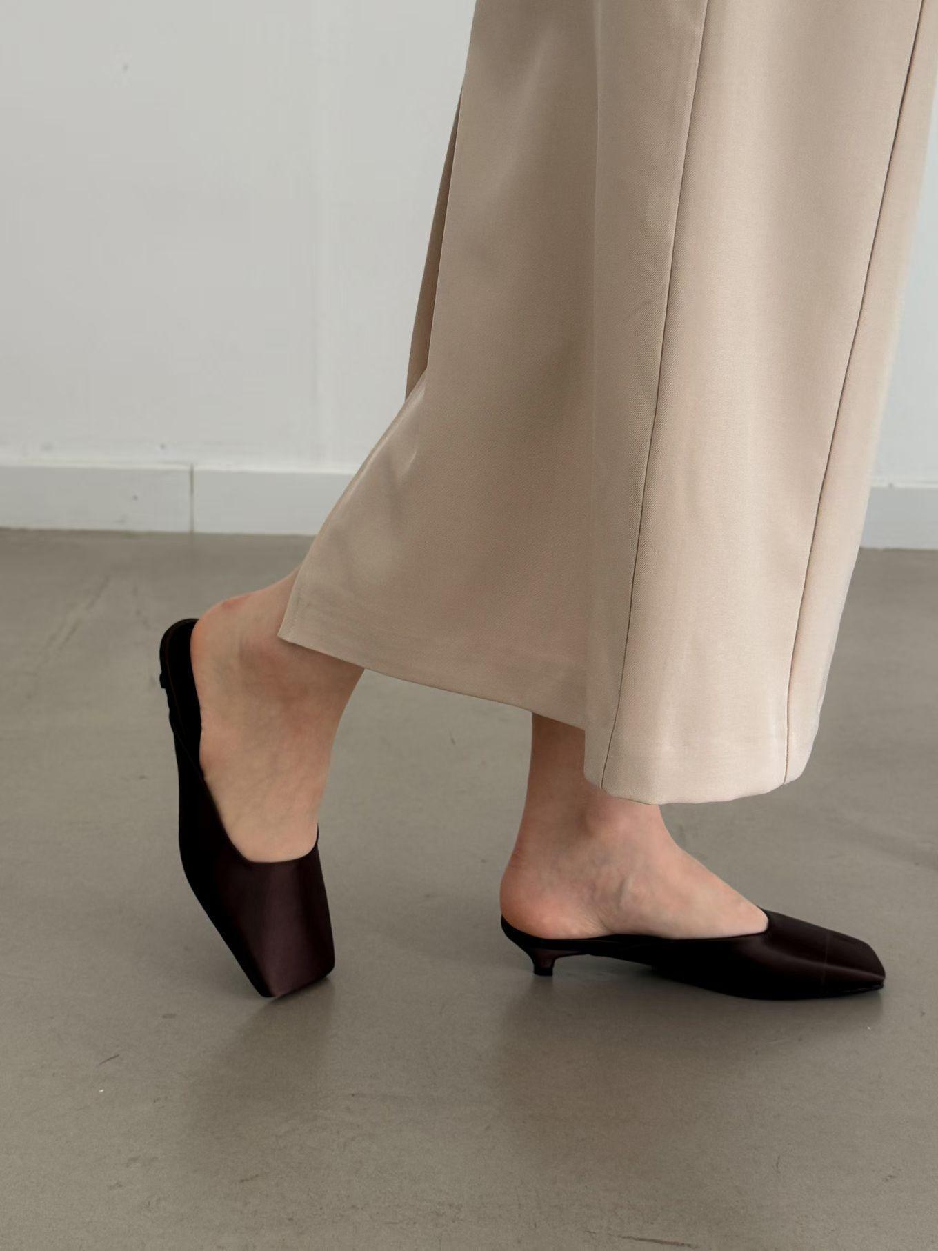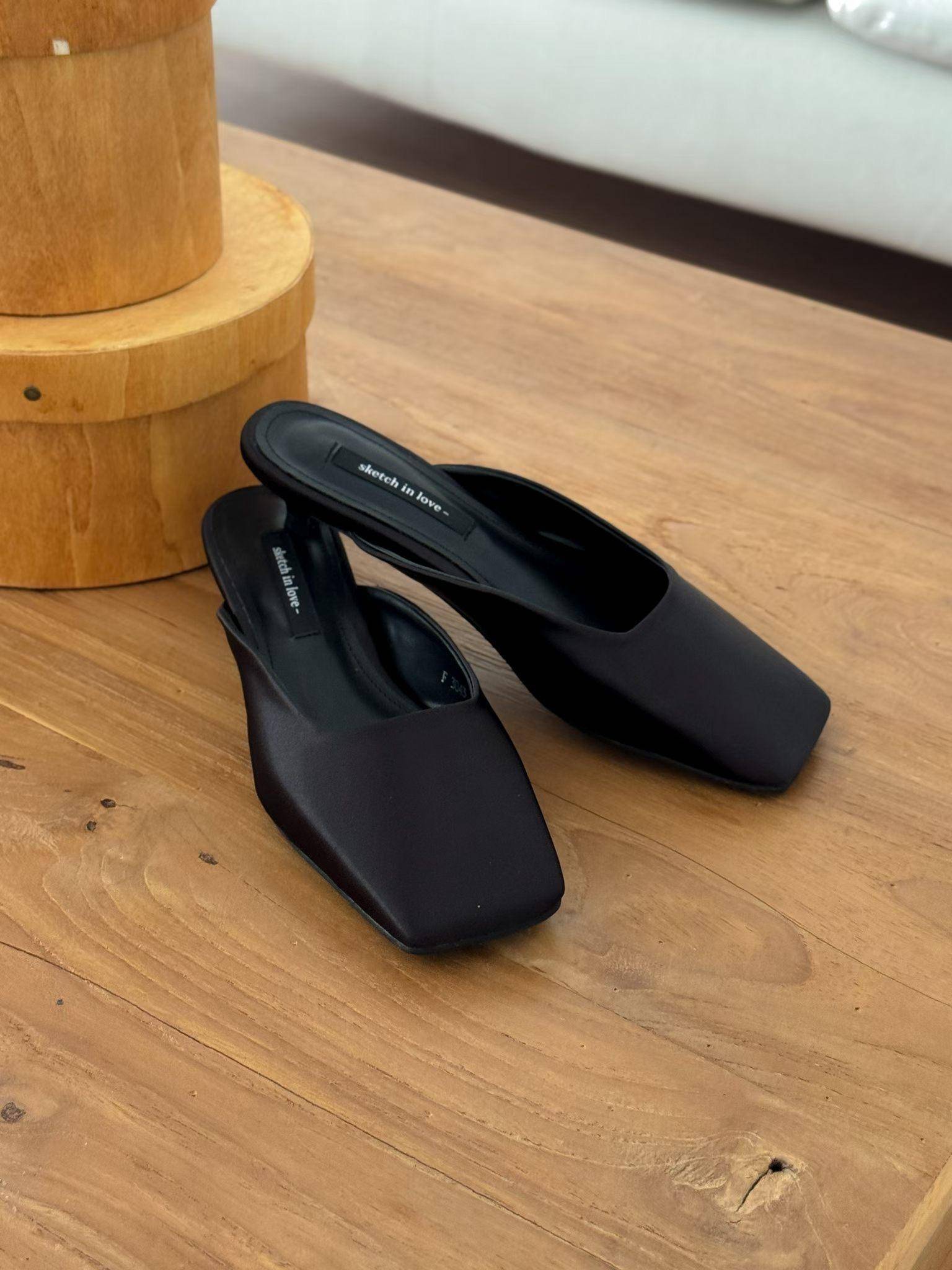 緞面方頭高級感穆勒涼鞋 涼跟拖3cm