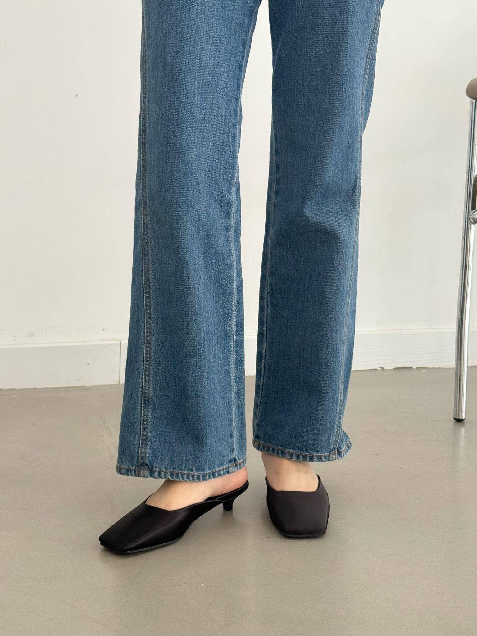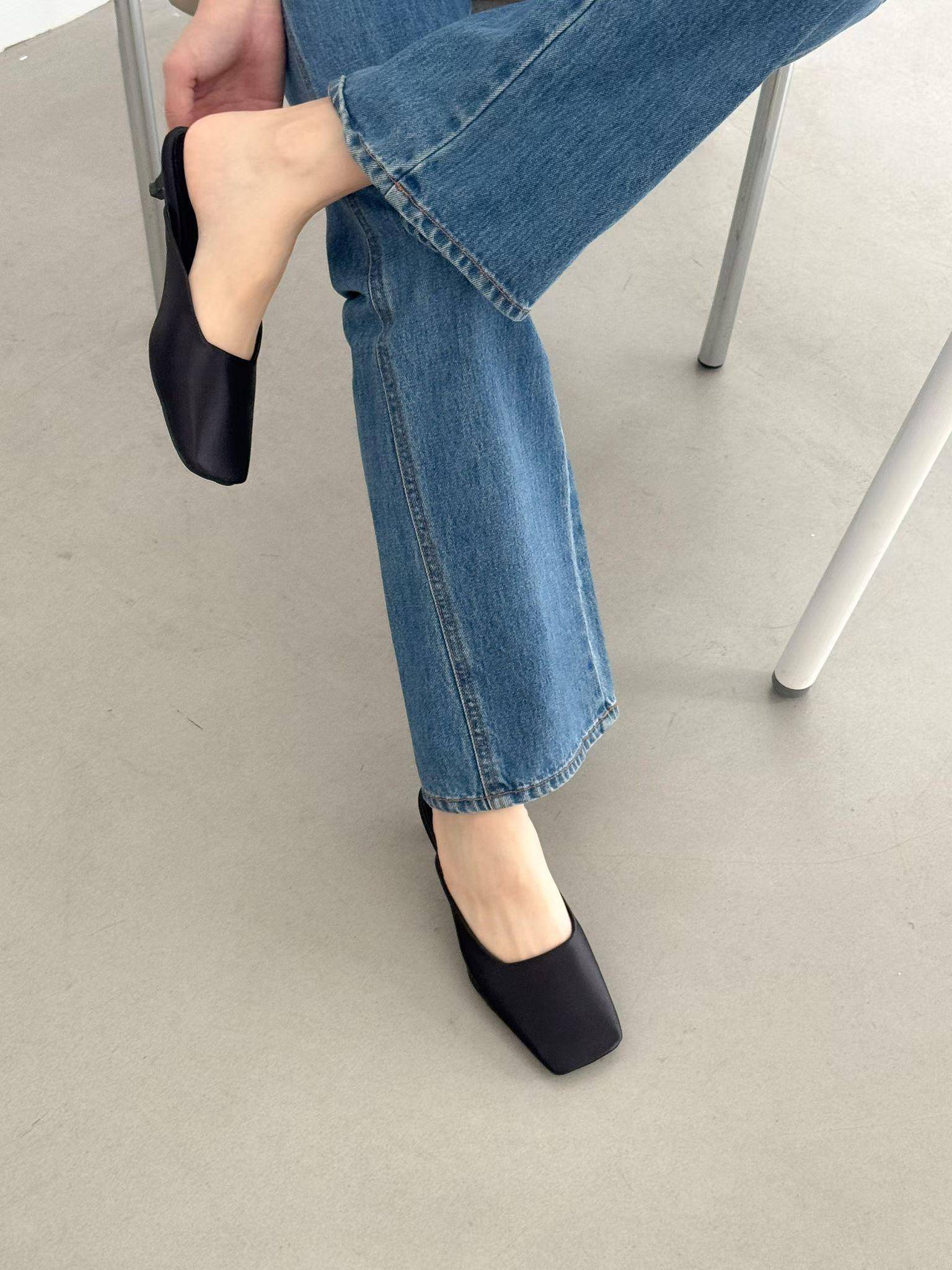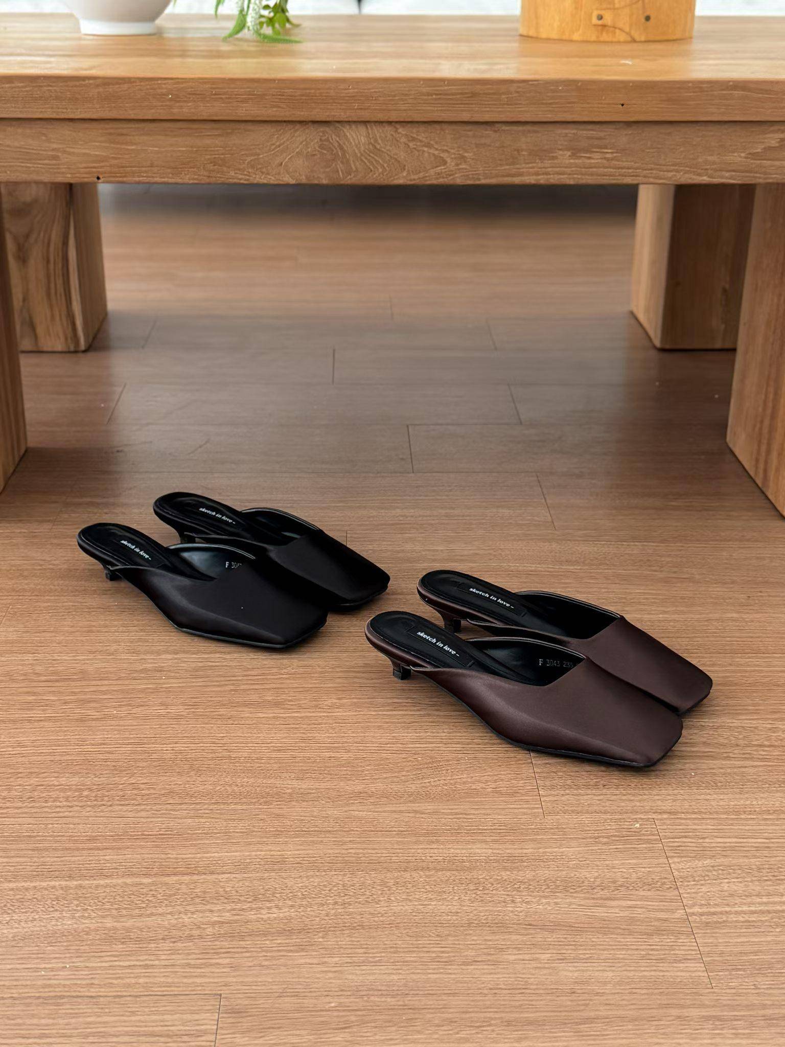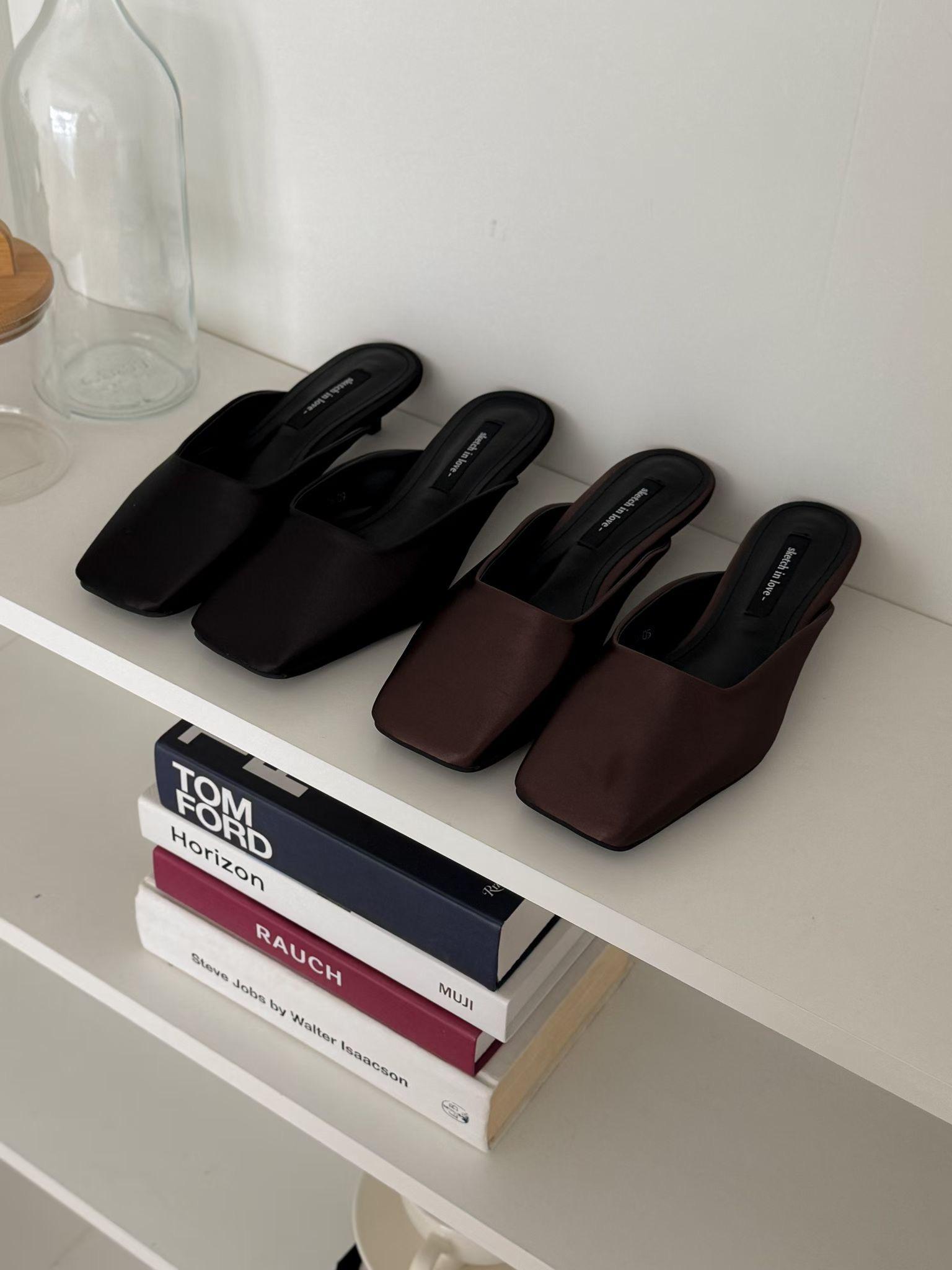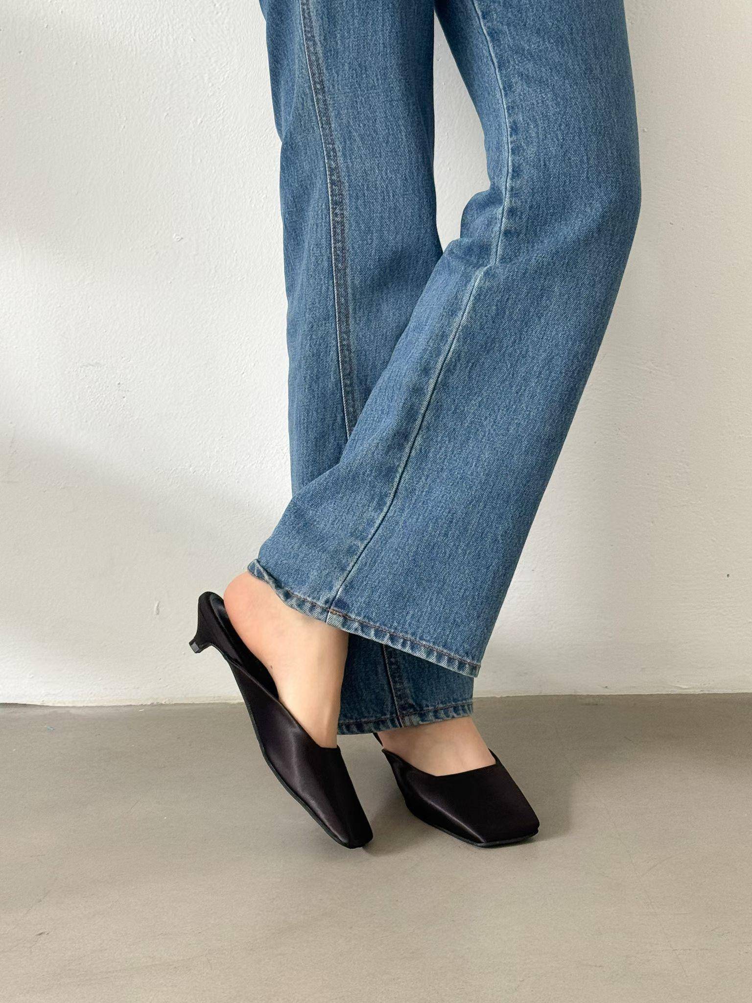 緞面方頭高級感穆勒涼鞋 涼跟拖3cm